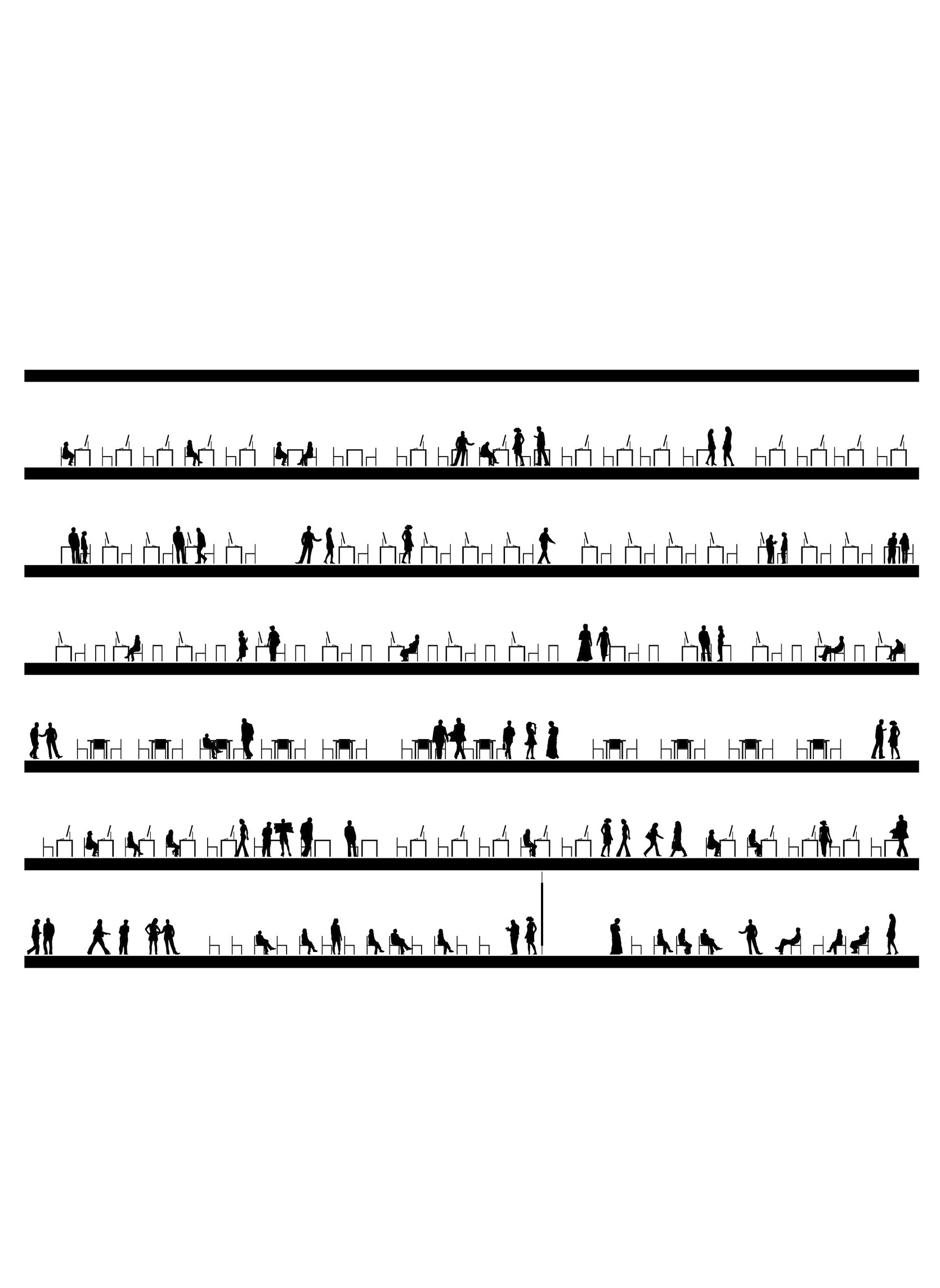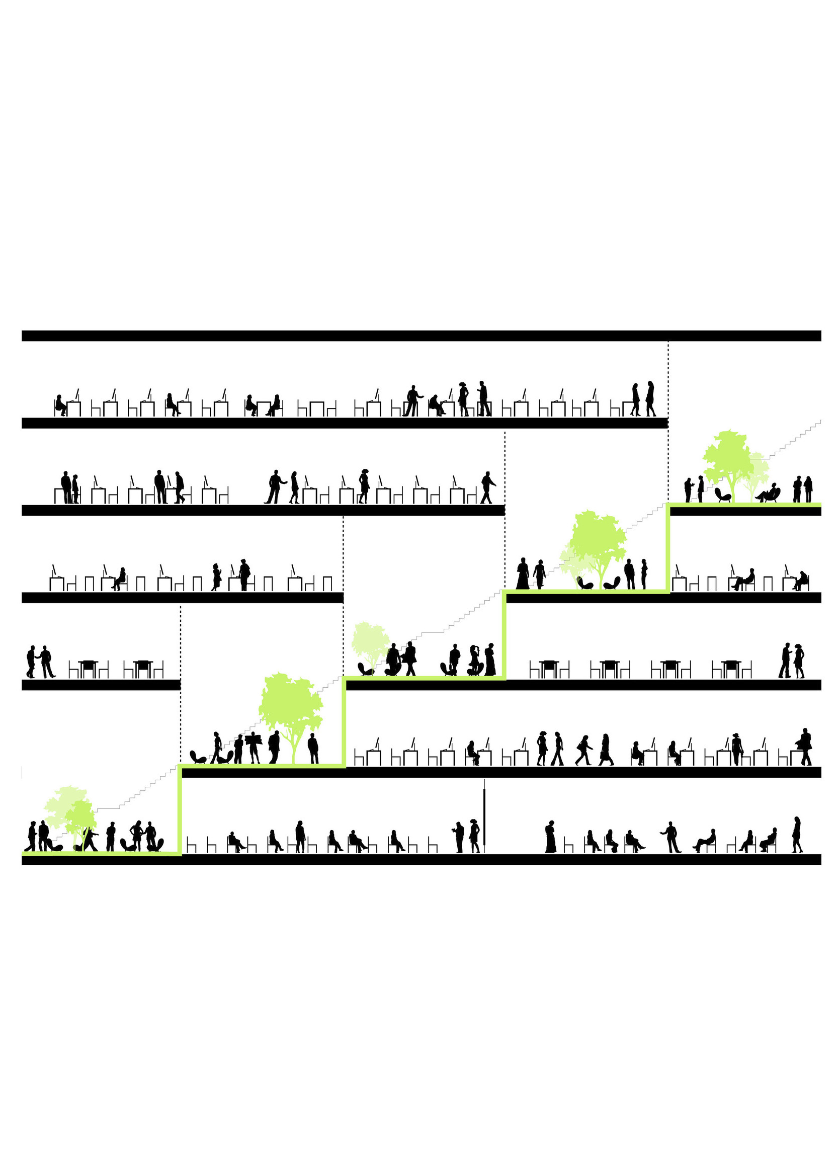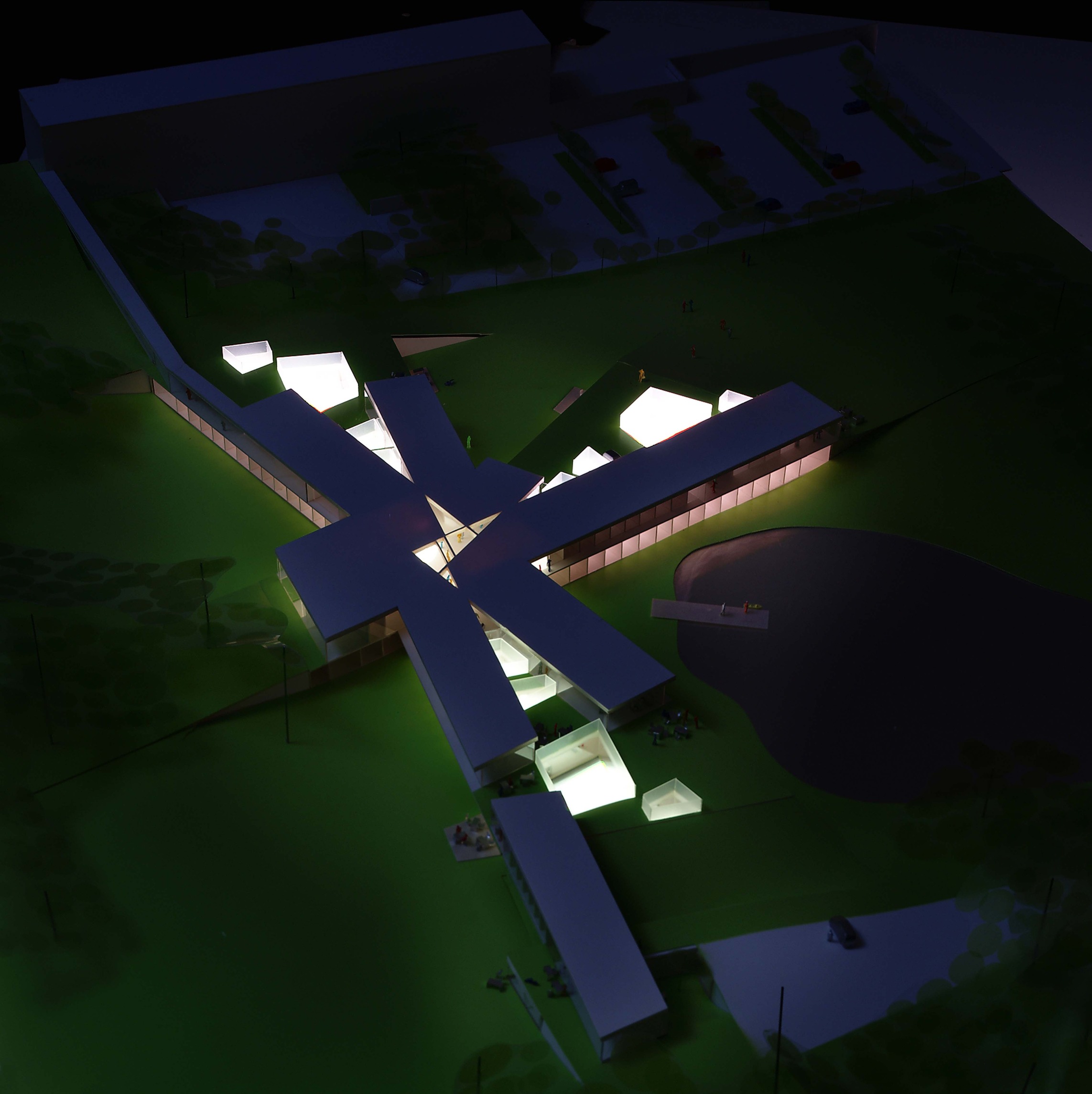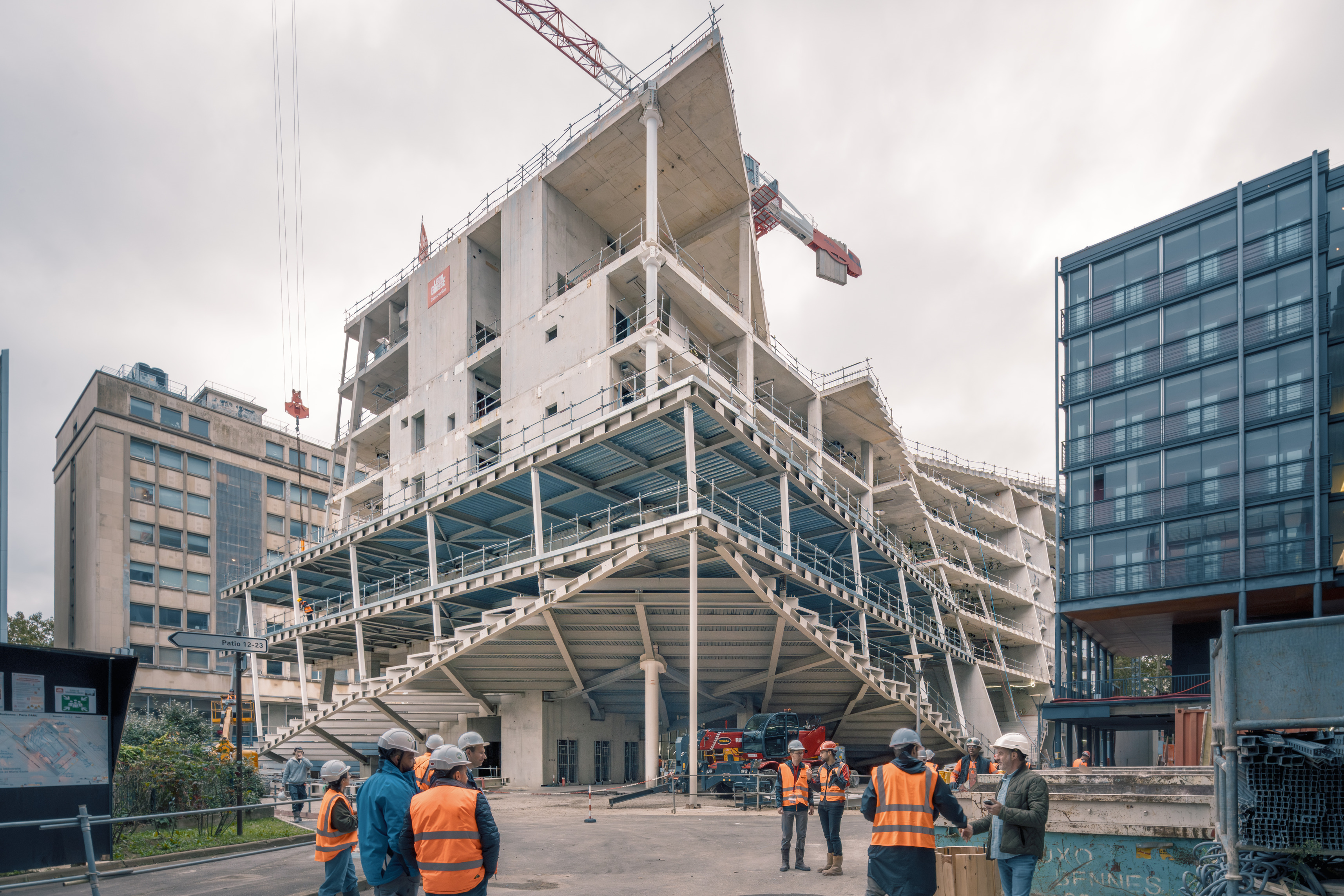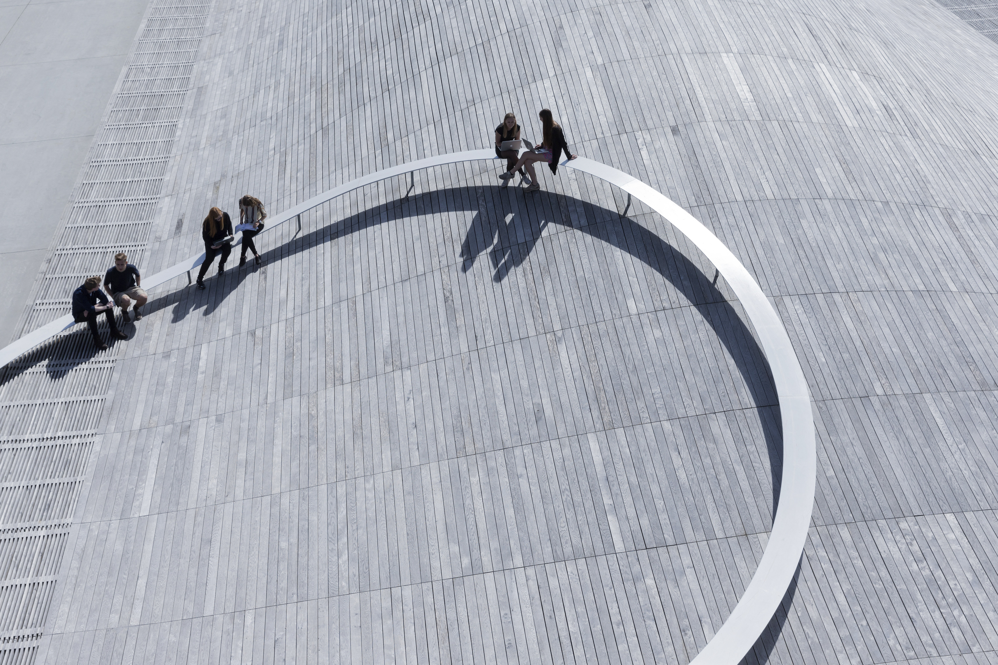 A forest of columns supports 29 “floating” cantilevered roof planes wrapped in glass shapes an interior that blurs the boundary between indoors and out. Shaped through in-depth research into the students’ needs, the building is transparent by design, welcoming daylight from all sides and offering views into the ever-changing mosaic of student life within.