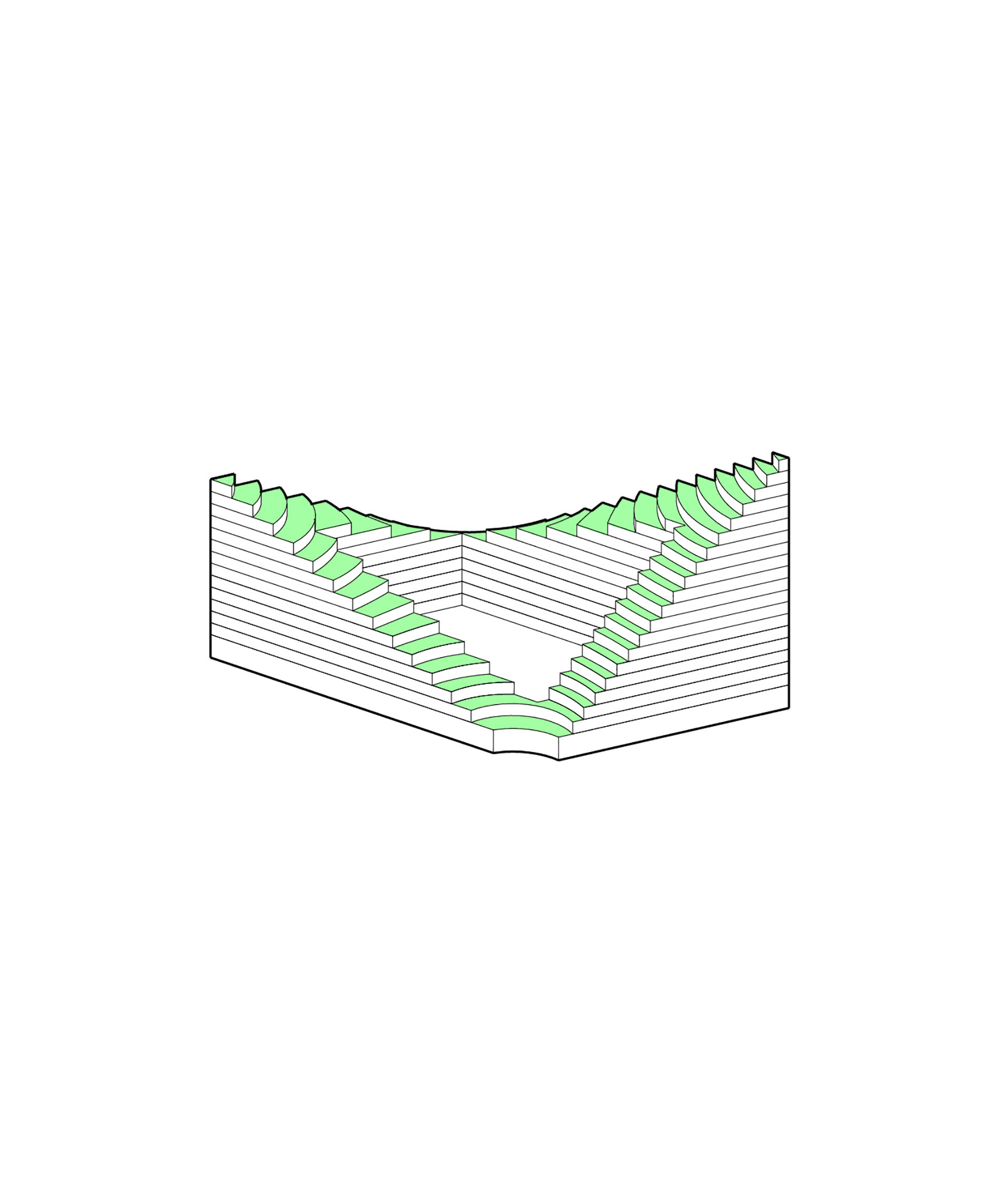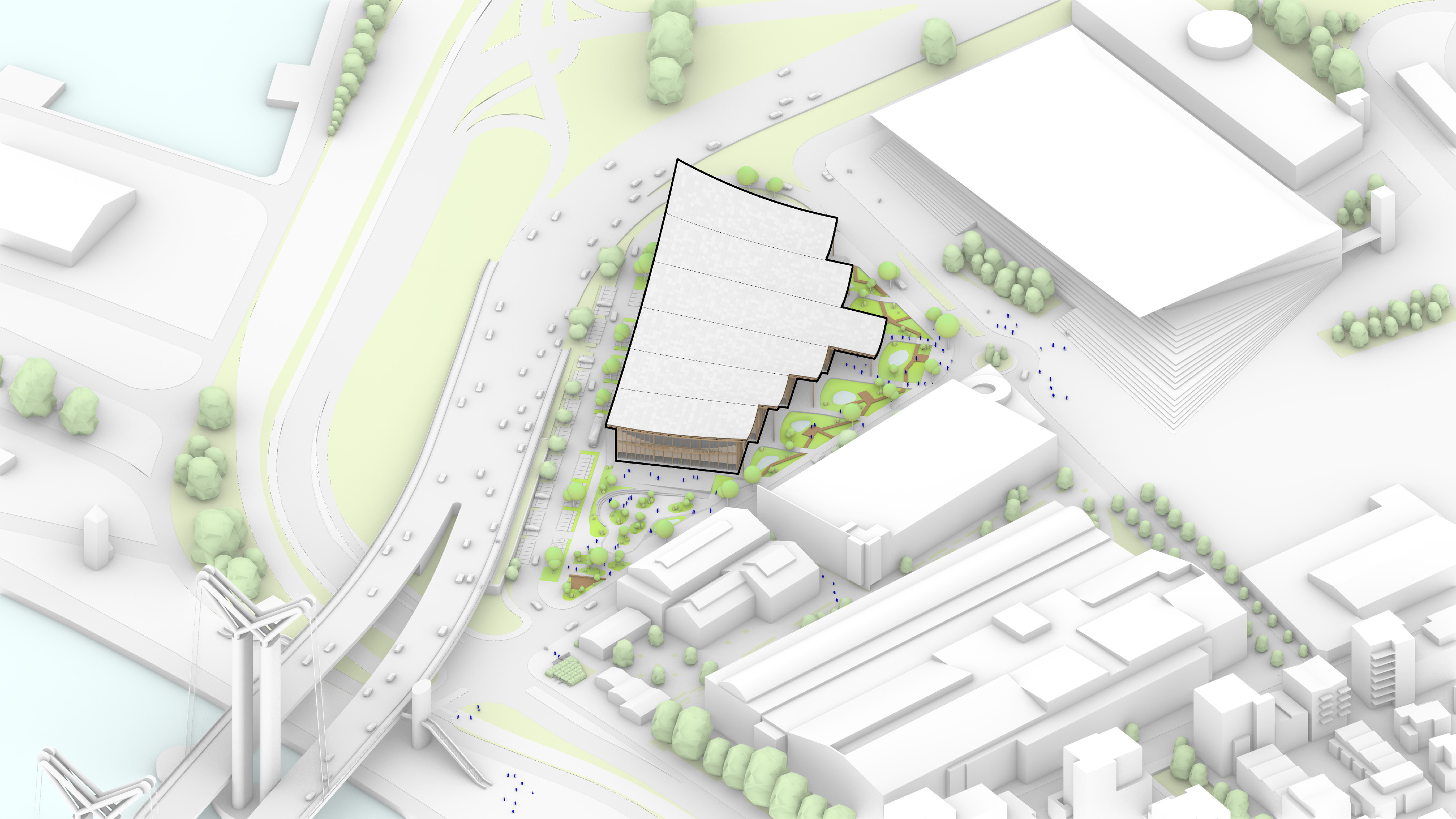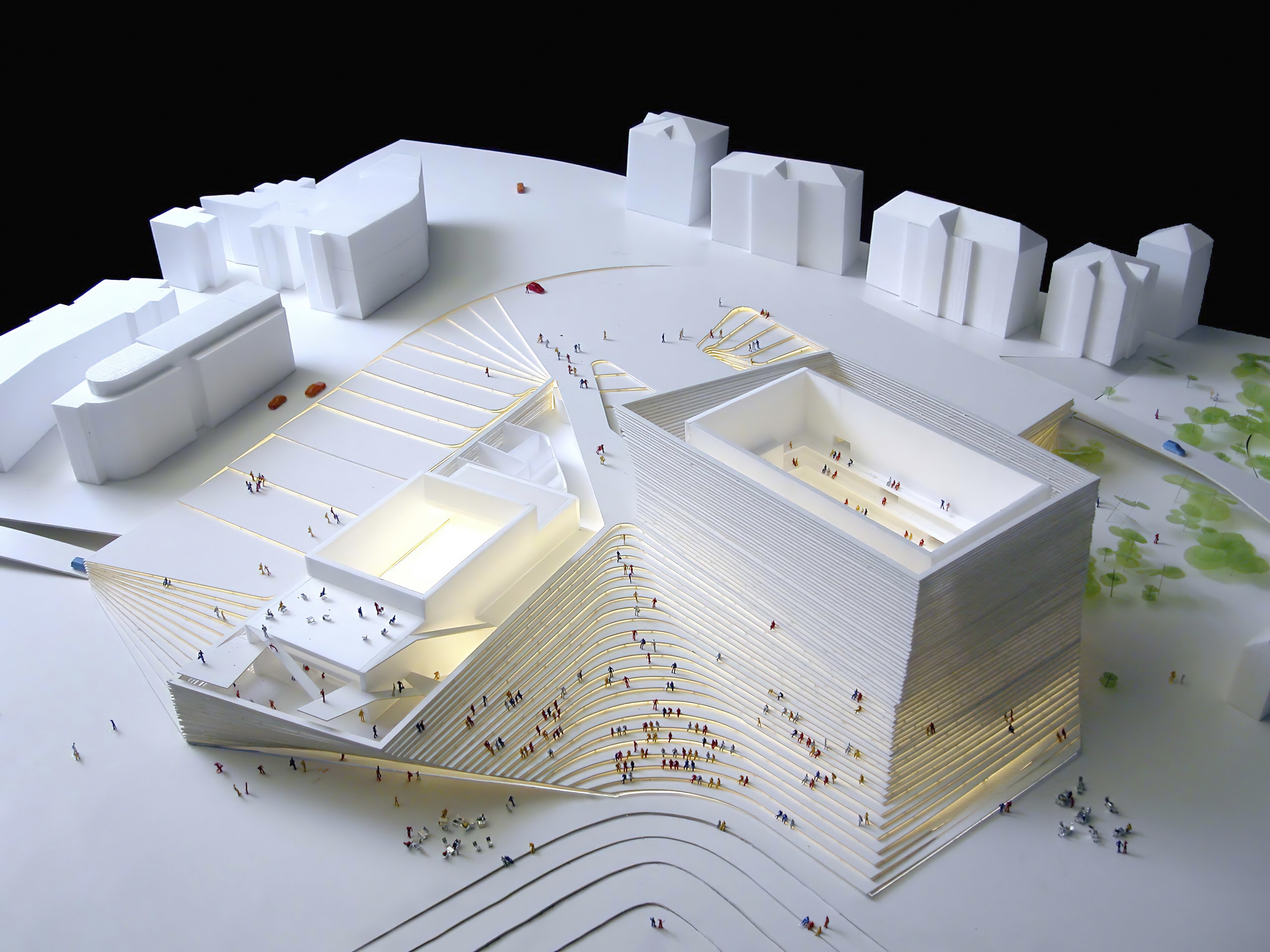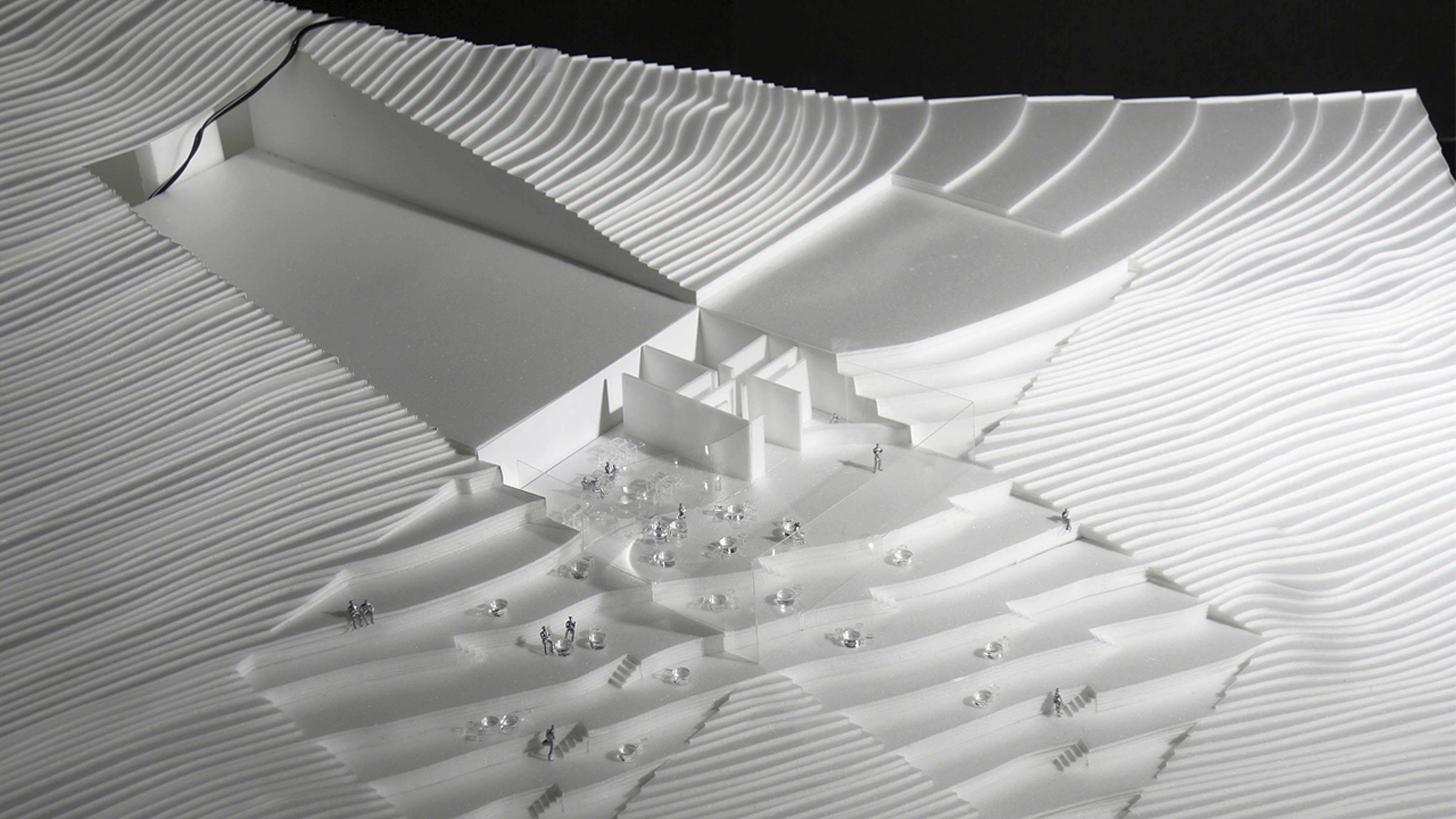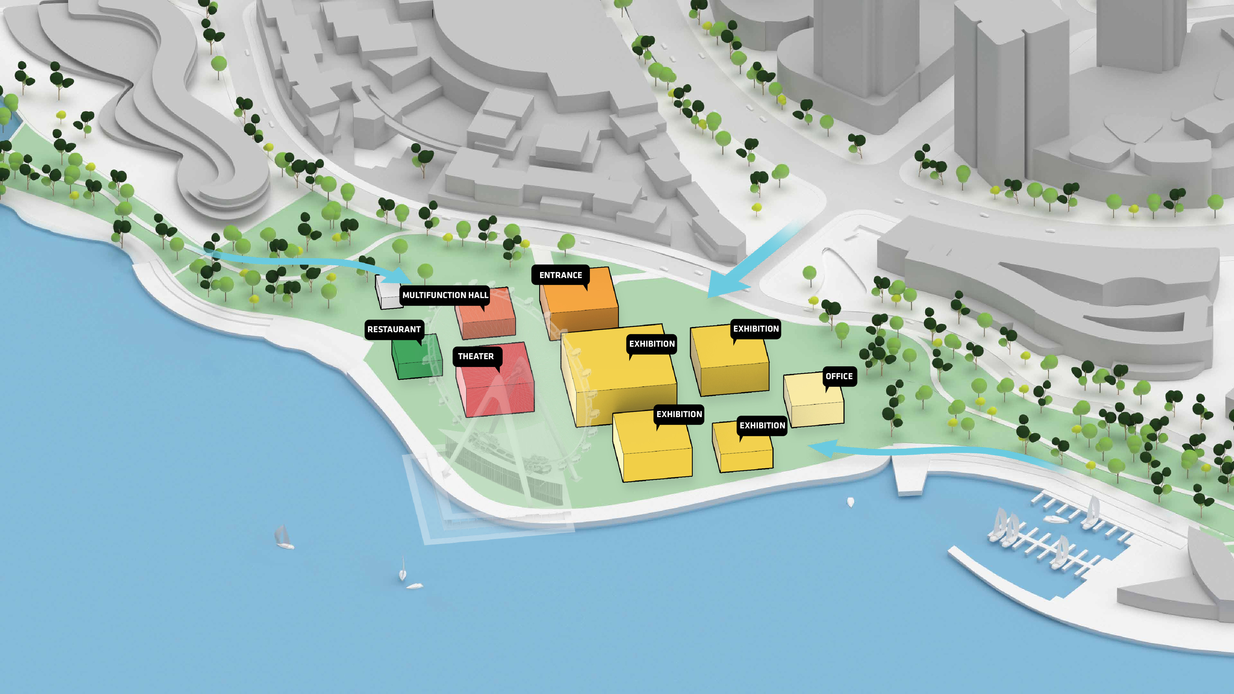 Conceived as a public building within a park, the opera house unfolds as a series of terraced landscapes rising from the water’s edge. Seen from above, the roof traces a continuous circular form that opens toward the harbor. This sculpted topography offers pathways across the building, moving from the quay to elevated gardens, creating outdoor gathering spaces and a new public link between the city and the river.