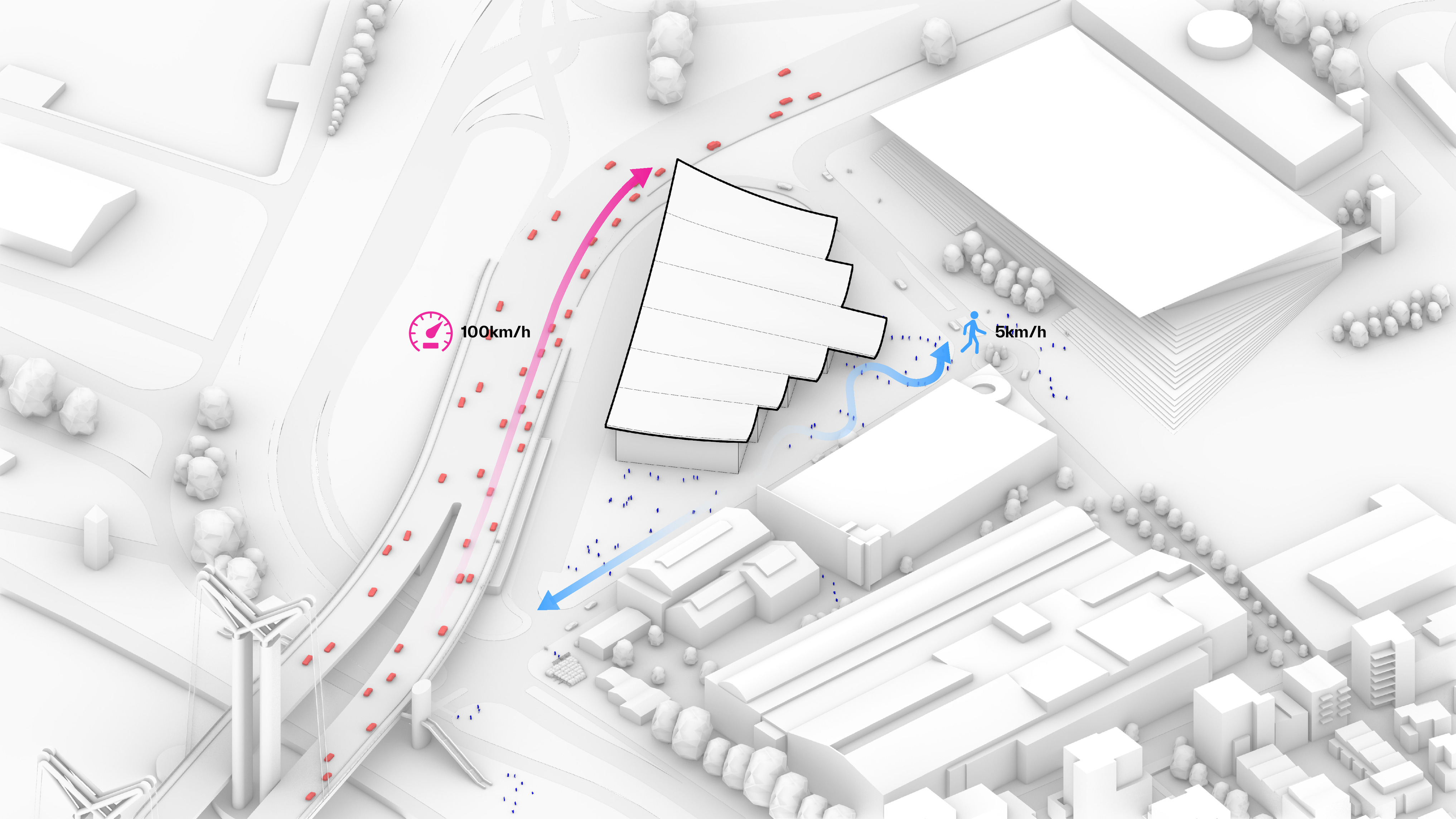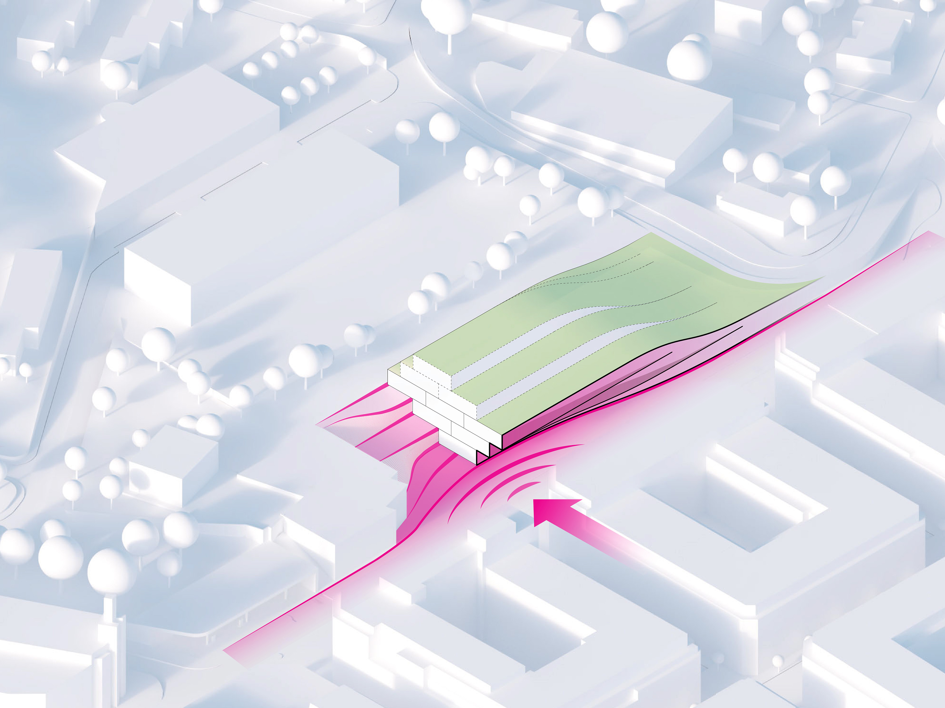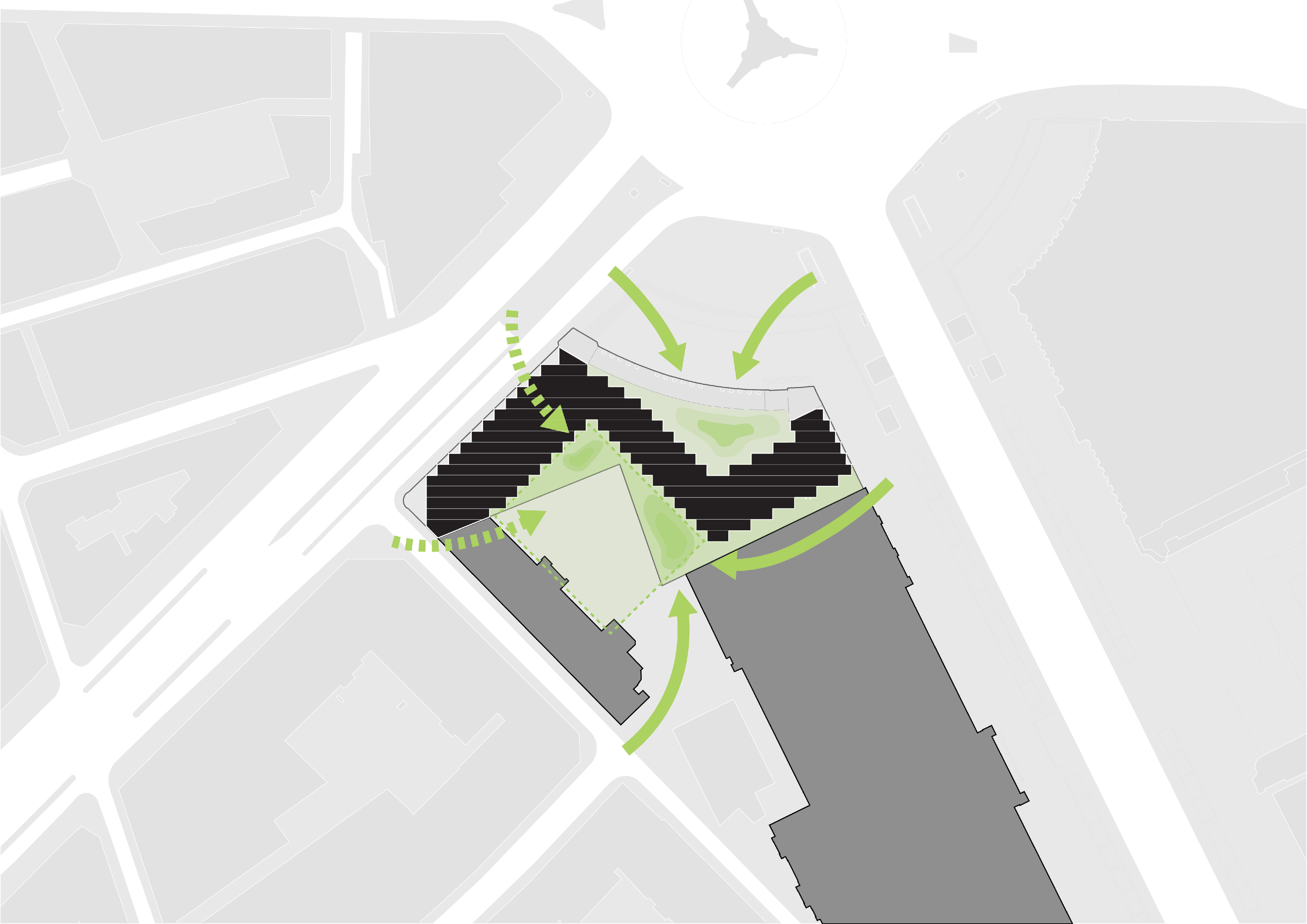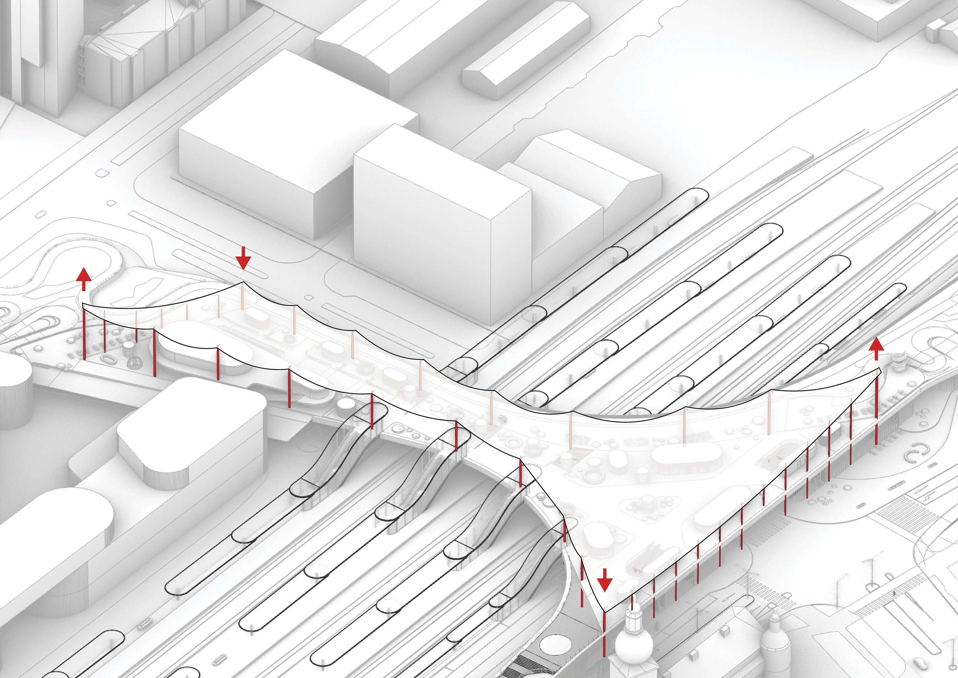 “Conceived as an architectural extension of the dramatic landscape and cityscape of San Sebastian, our proposed design liberates the ground and provides parks on the roof - inviting the public life of the city to engage with the art and science of gastronomy. Located on the heralded Camino de Santiago de Compostela, we believe that this architectural fusion of gastronomy and technology, city and landscape, building and park has the potential to become a destination in its own right for culinary pilgrims from around the world.”