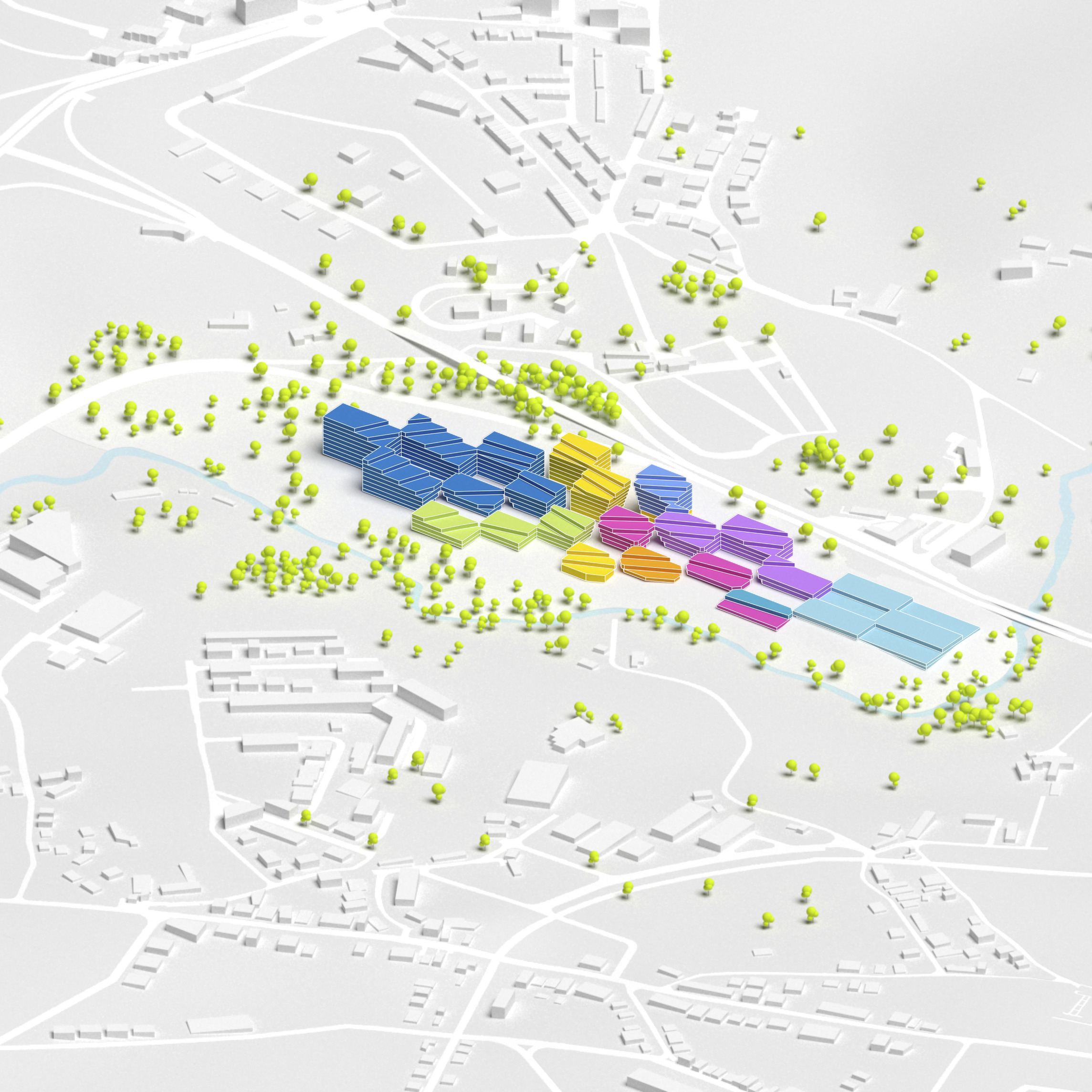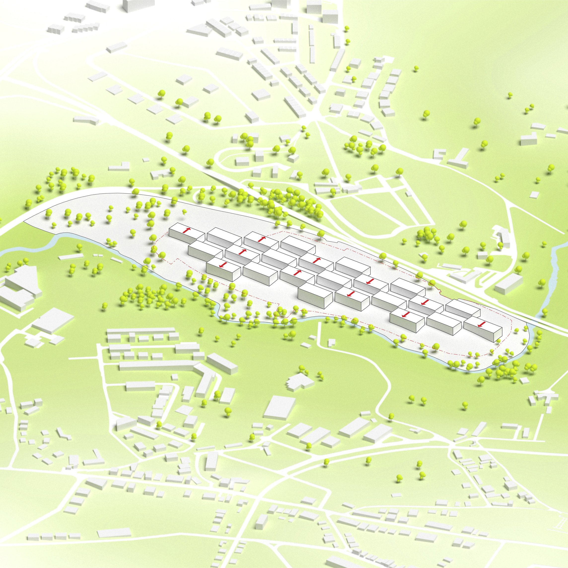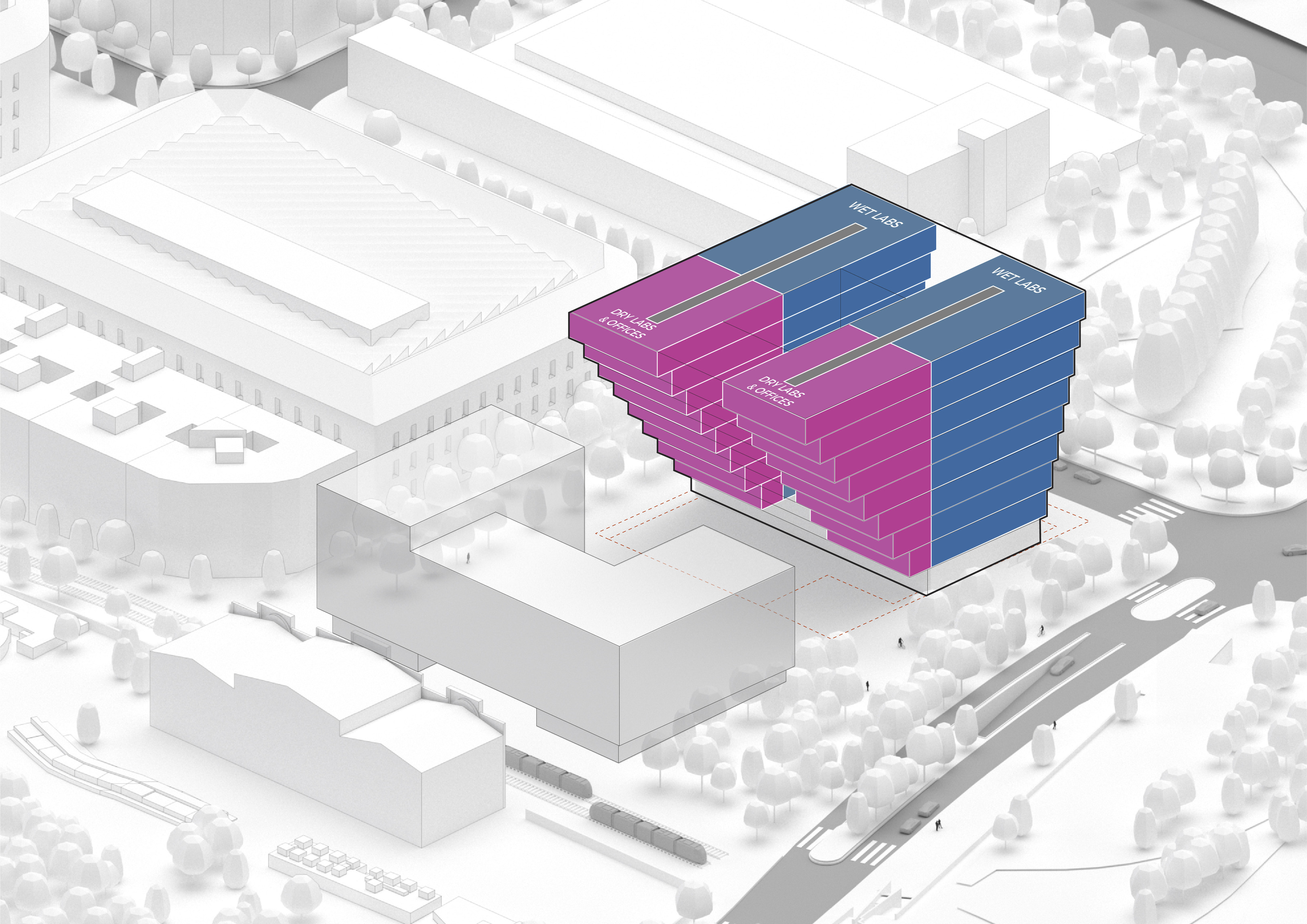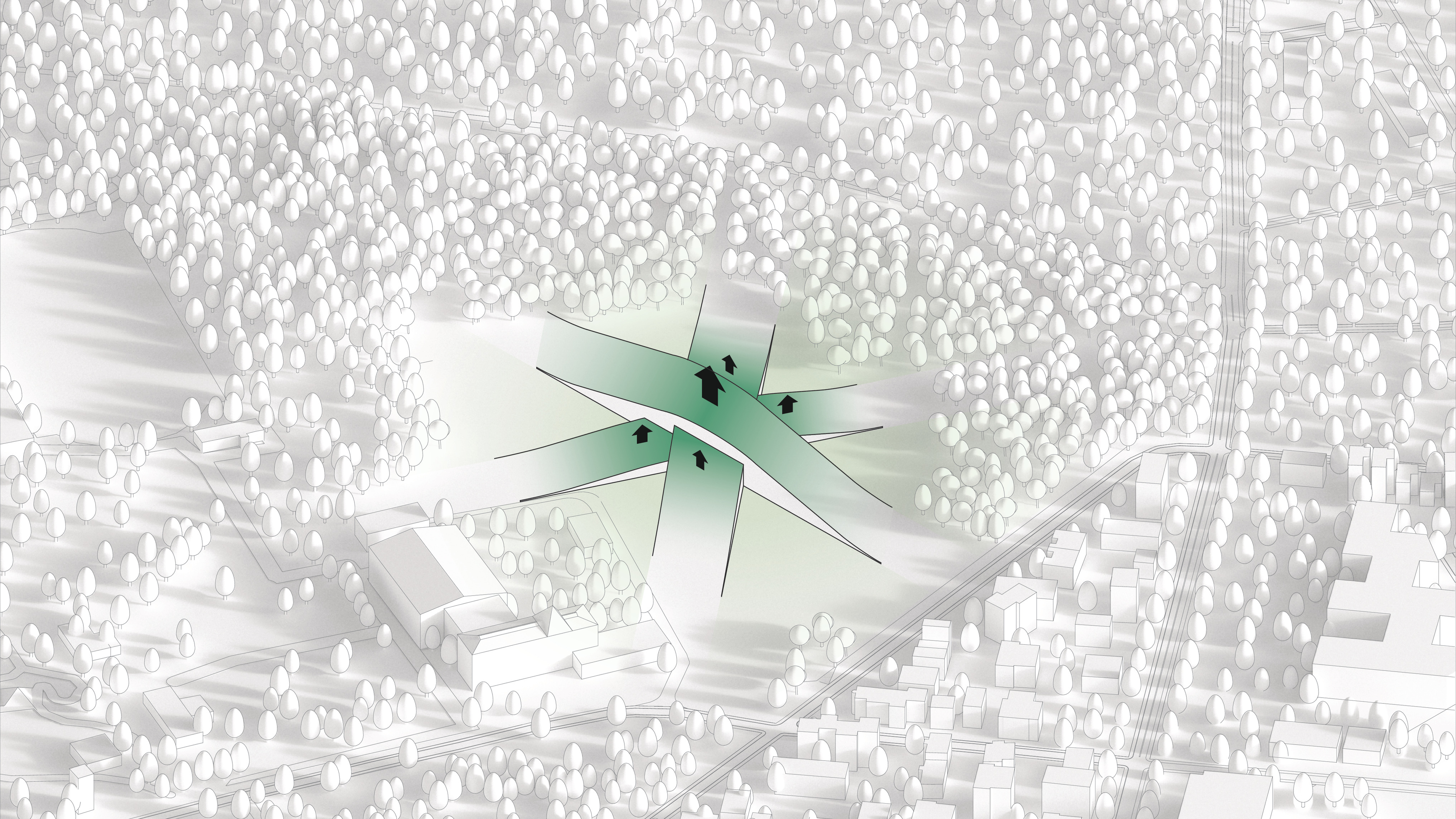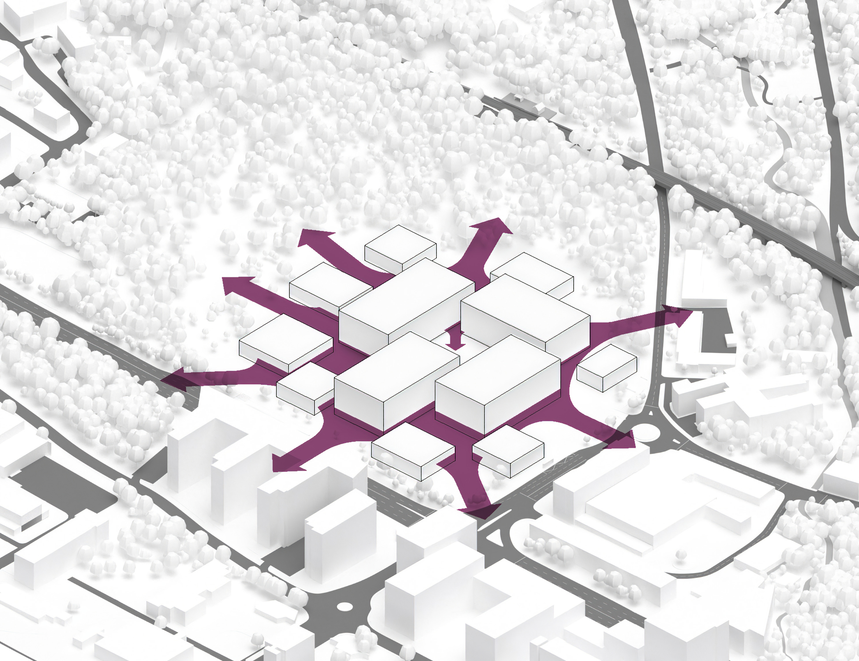 The masterplan complements the Wollongong district with facilities for research, education, and manufacturing. New buildings and infrastructure carefully adapt to the site’s conditions, preserving most of the existing structures, roads and trees while proposing new volumes in different sizes and orientations with open ground-floors and plazas.