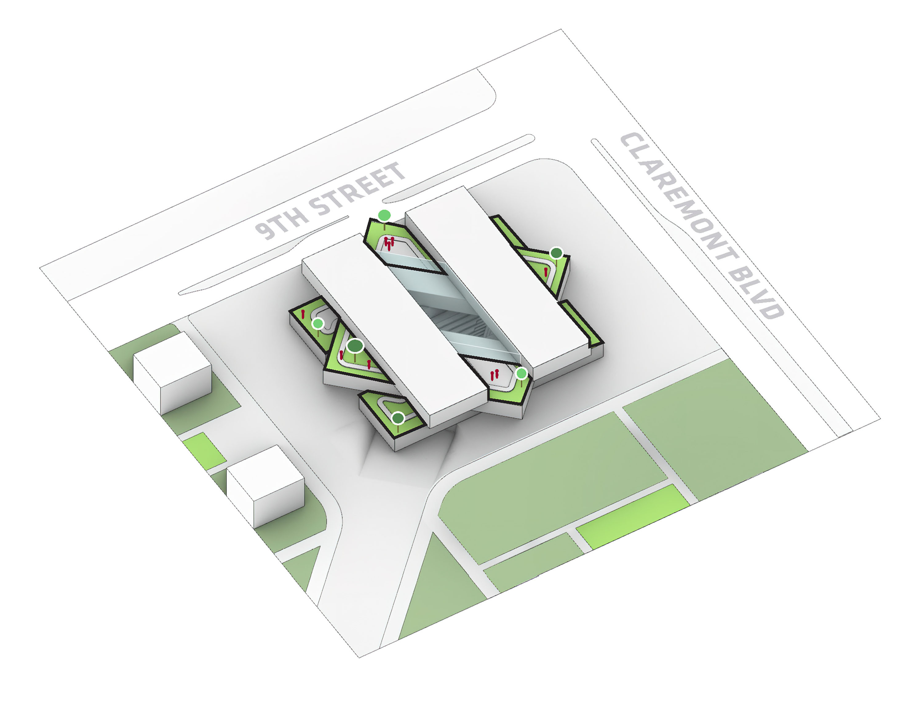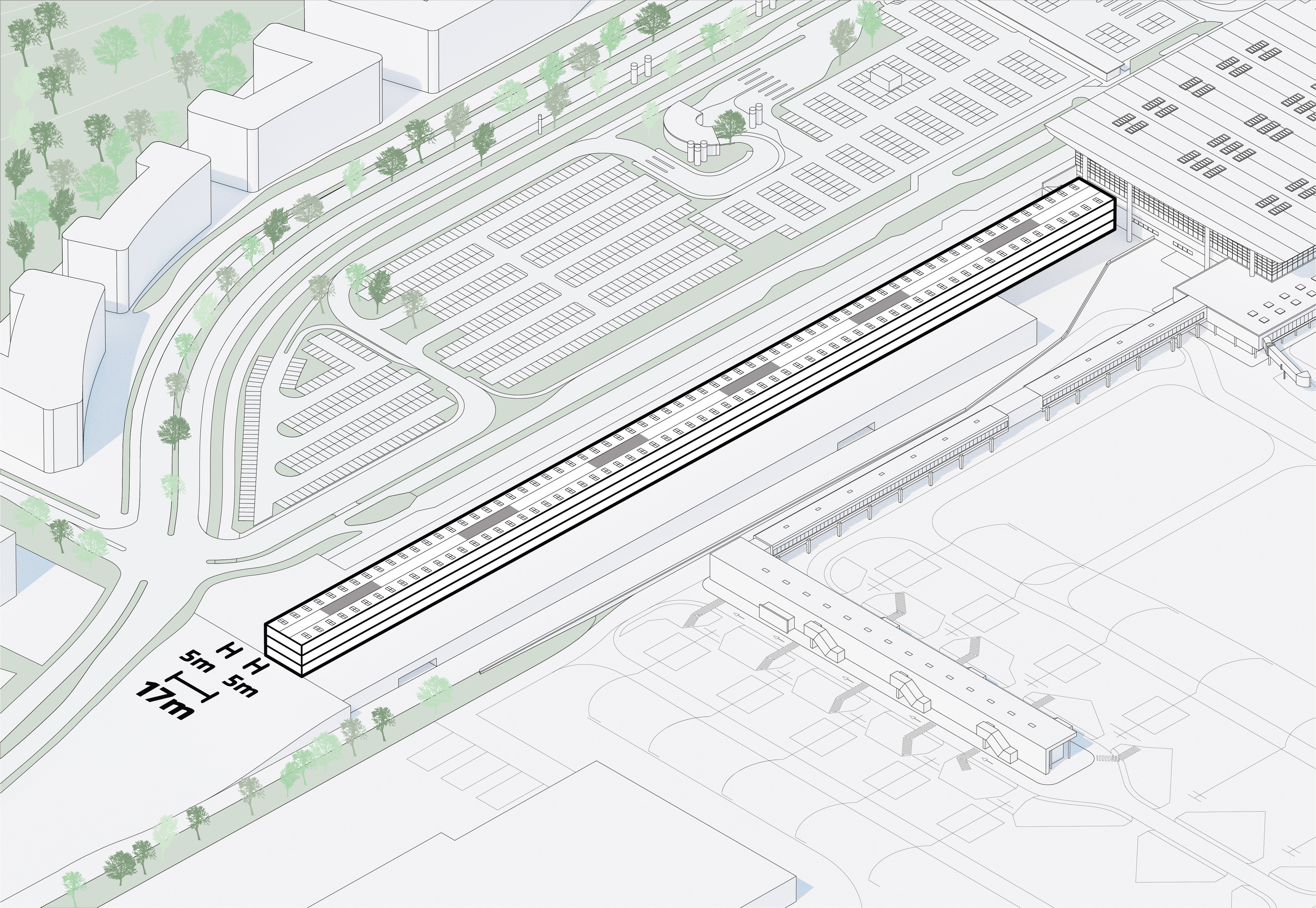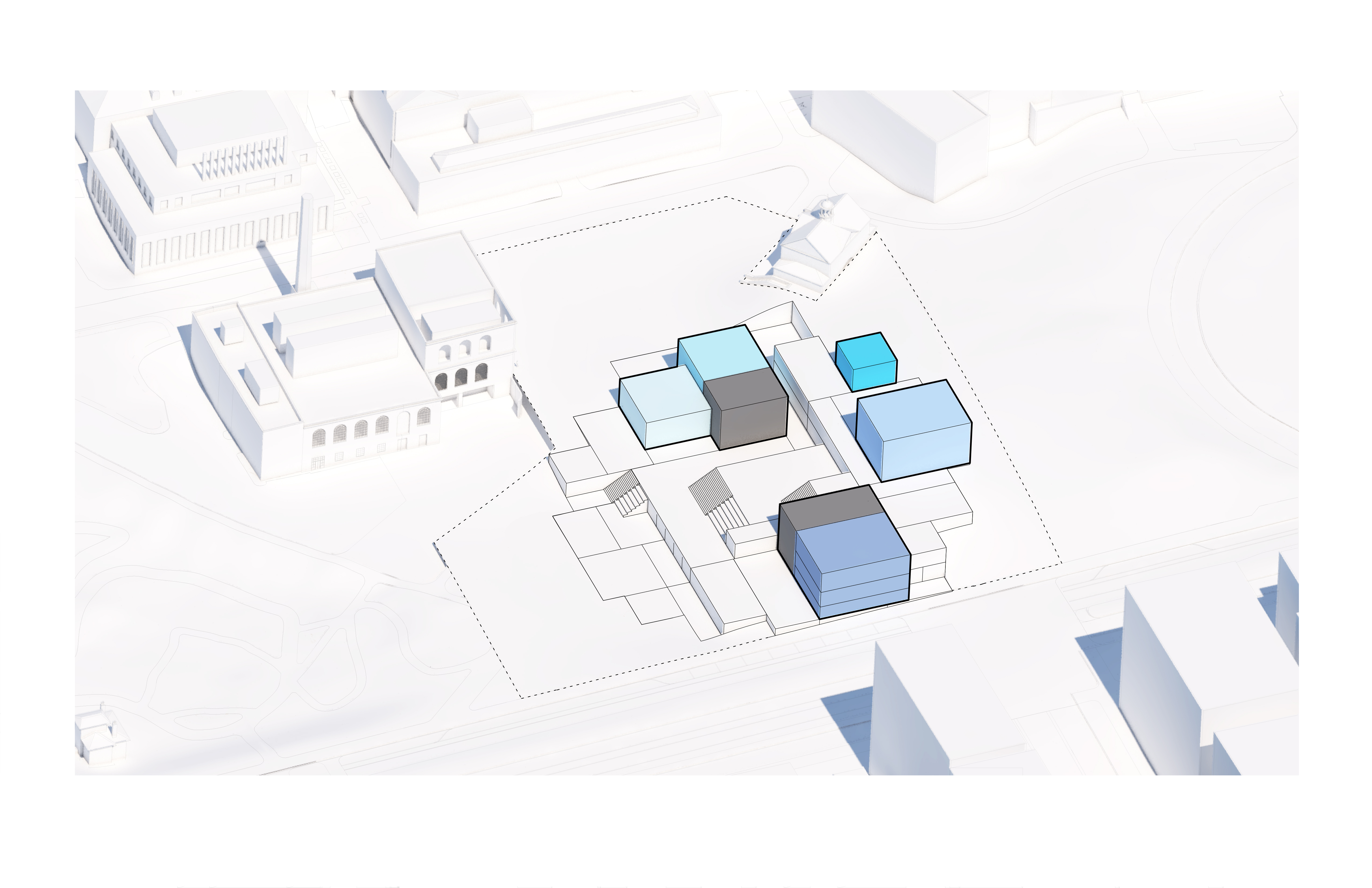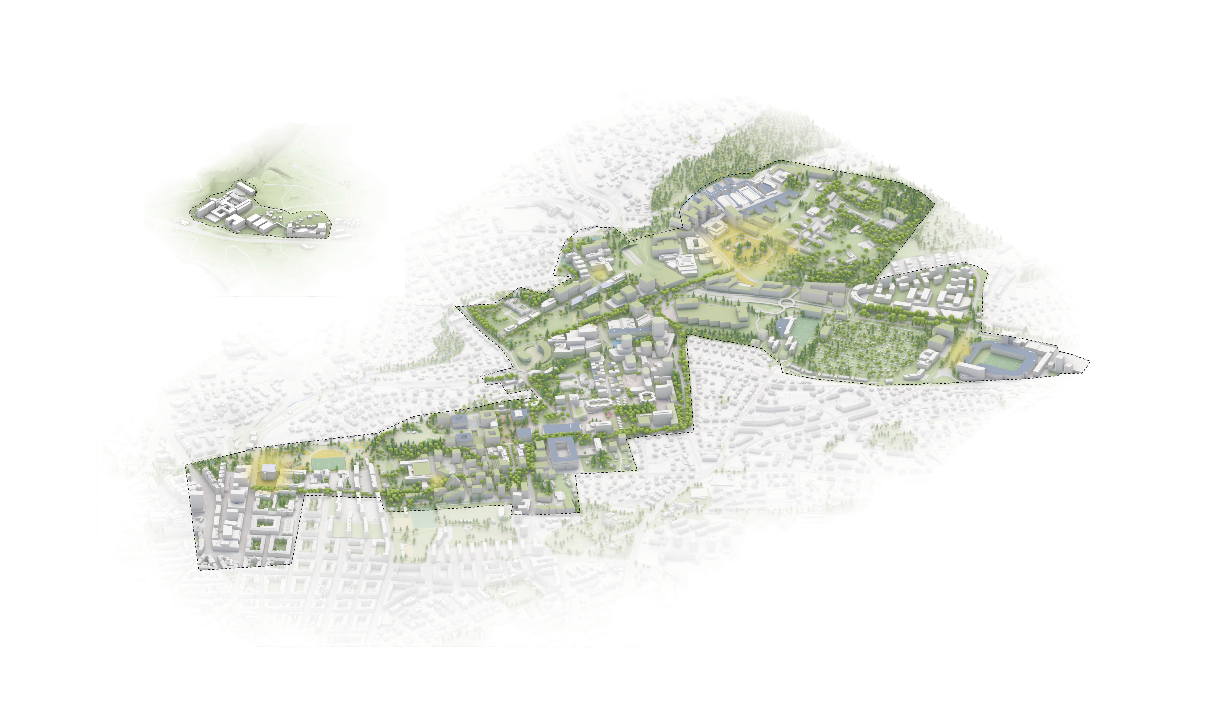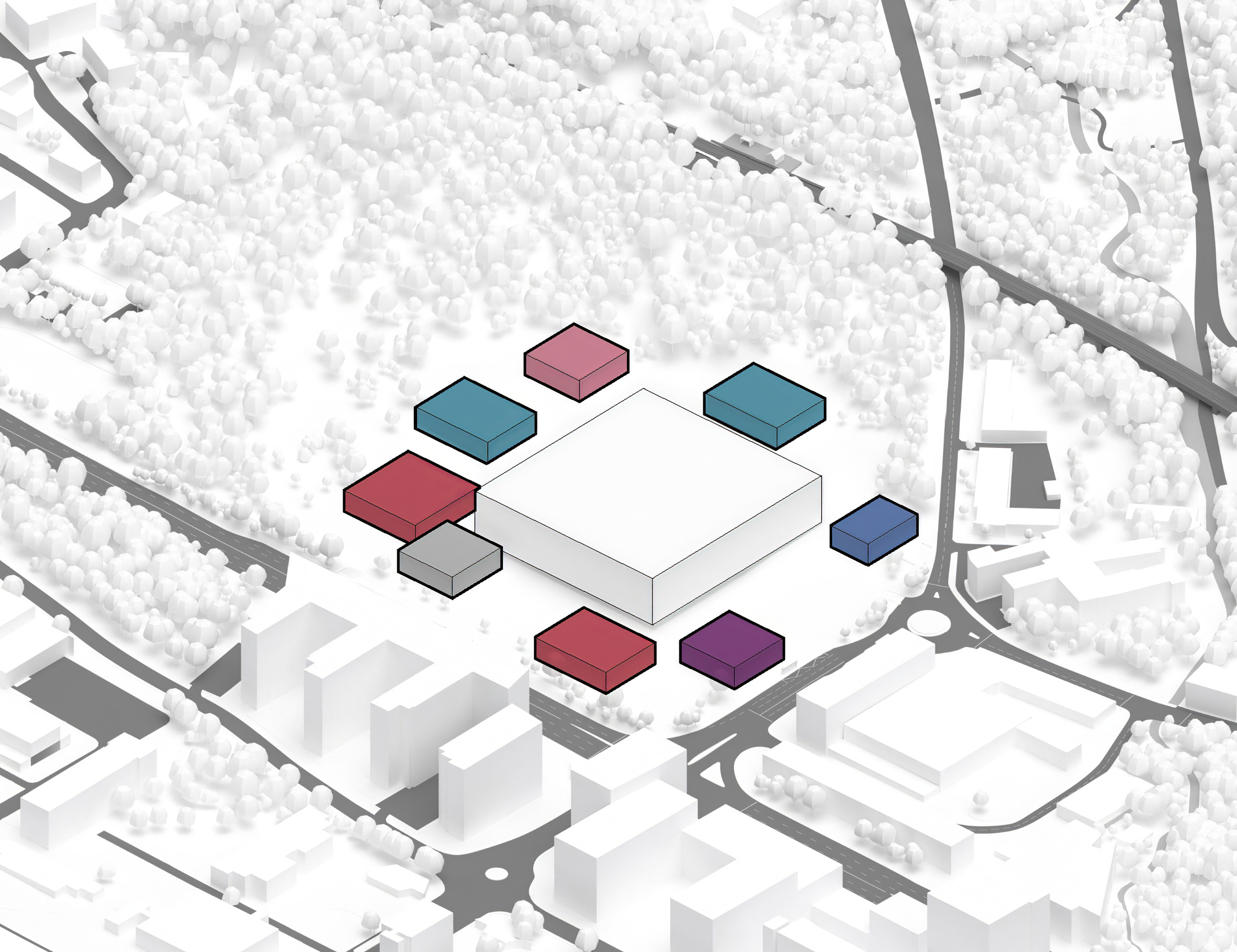 The masterplan complements the Wollongong district with facilities for research, education, and manufacturing. New buildings and infrastructure carefully adapt to the site’s conditions, preserving most of the existing structures, roads and trees while proposing new volumes in different sizes and orientations with open ground-floors and plazas.