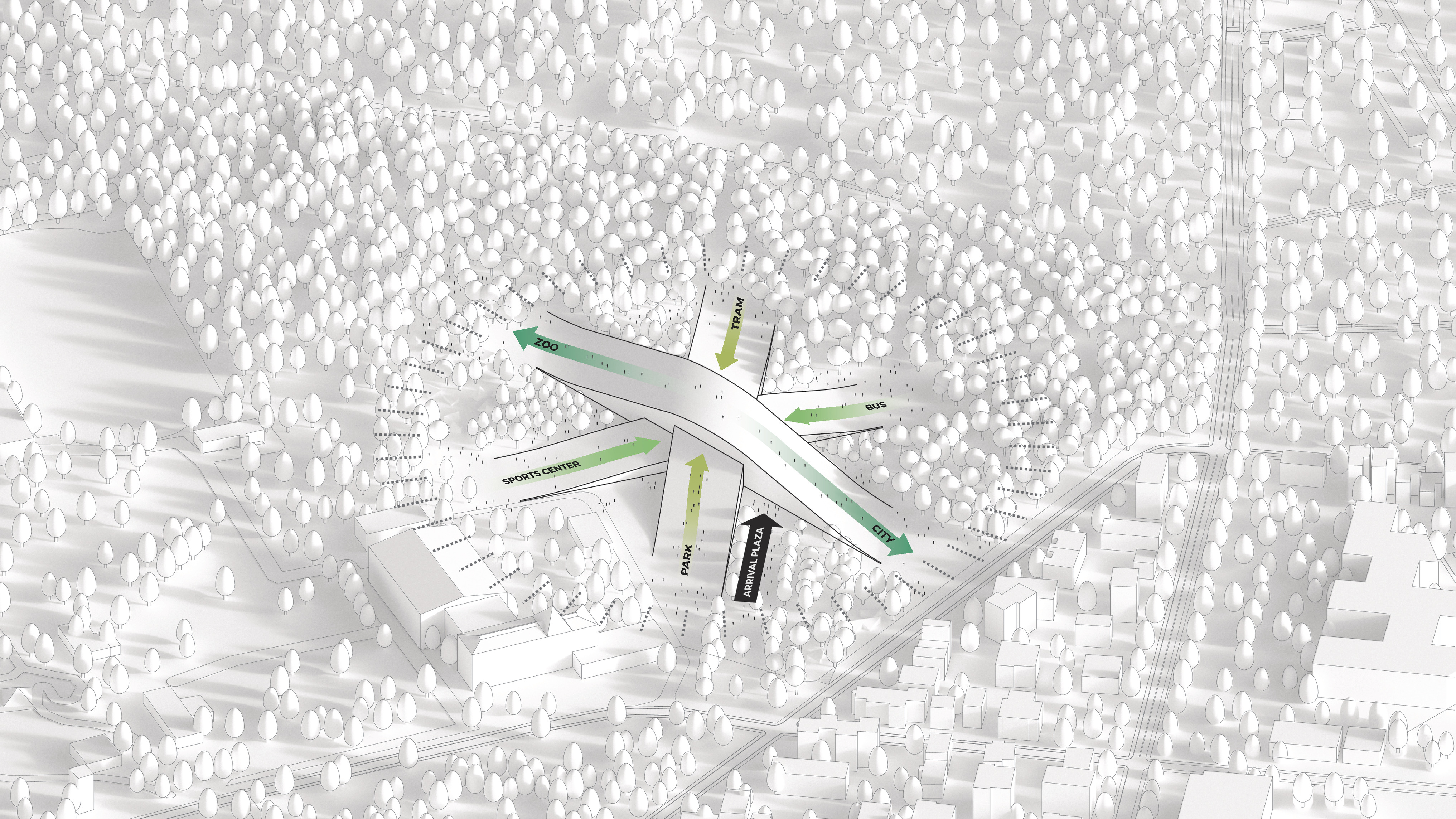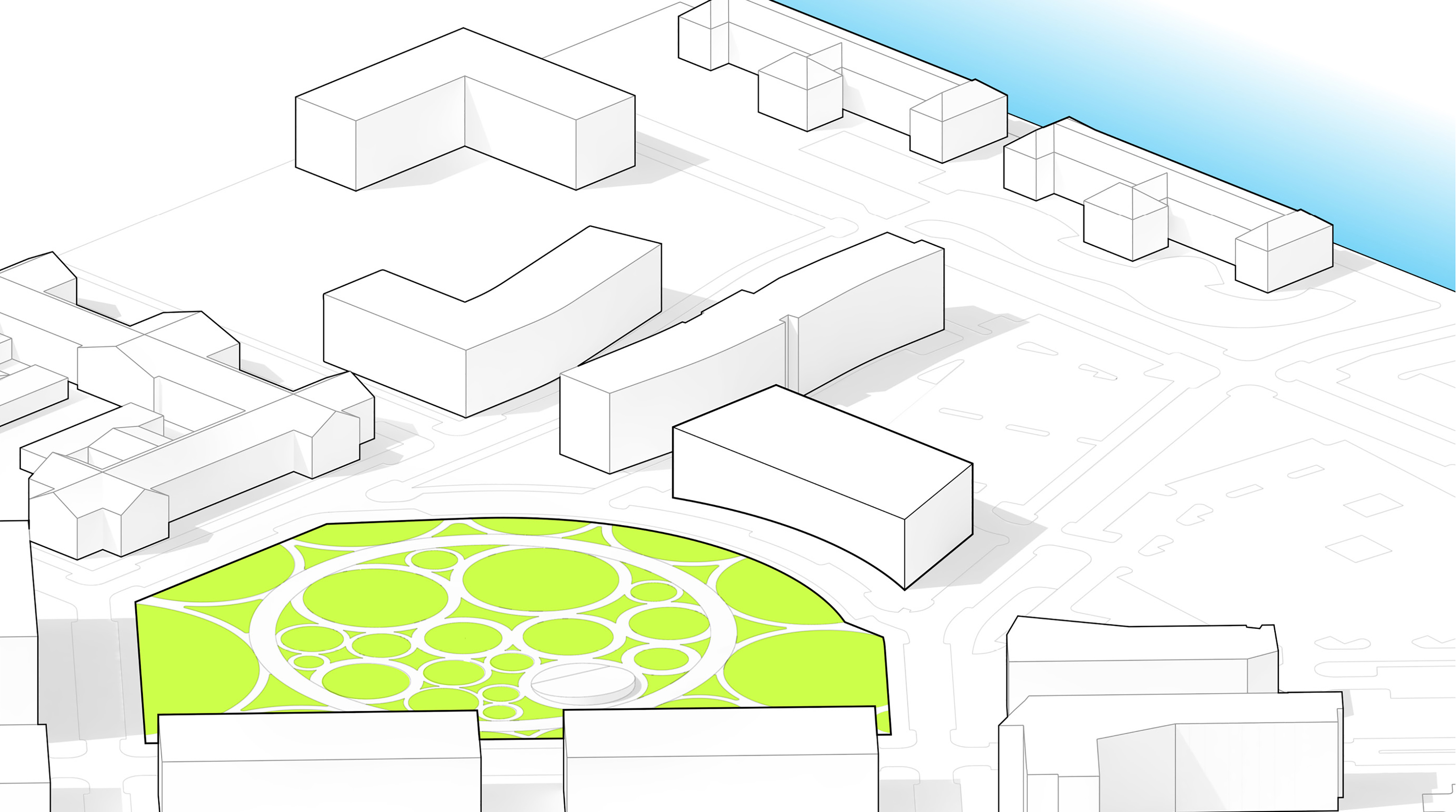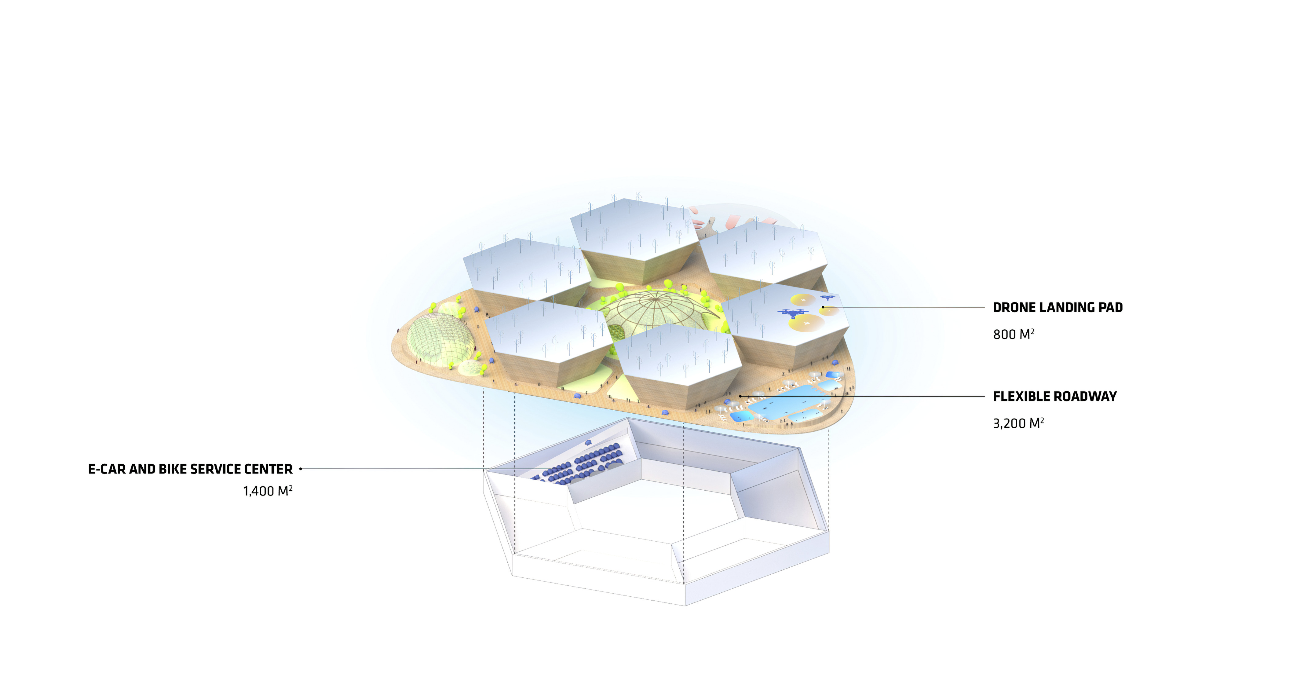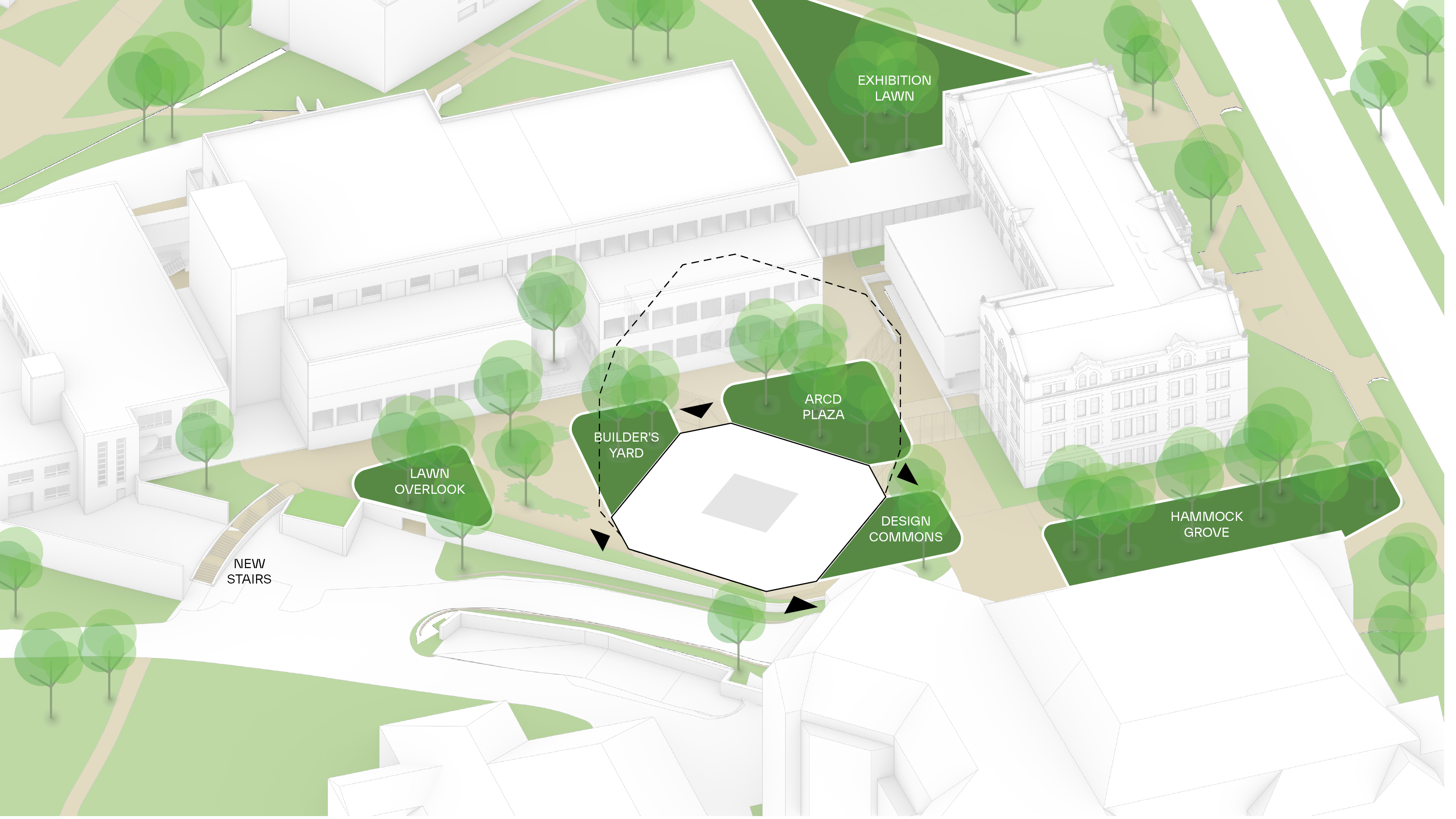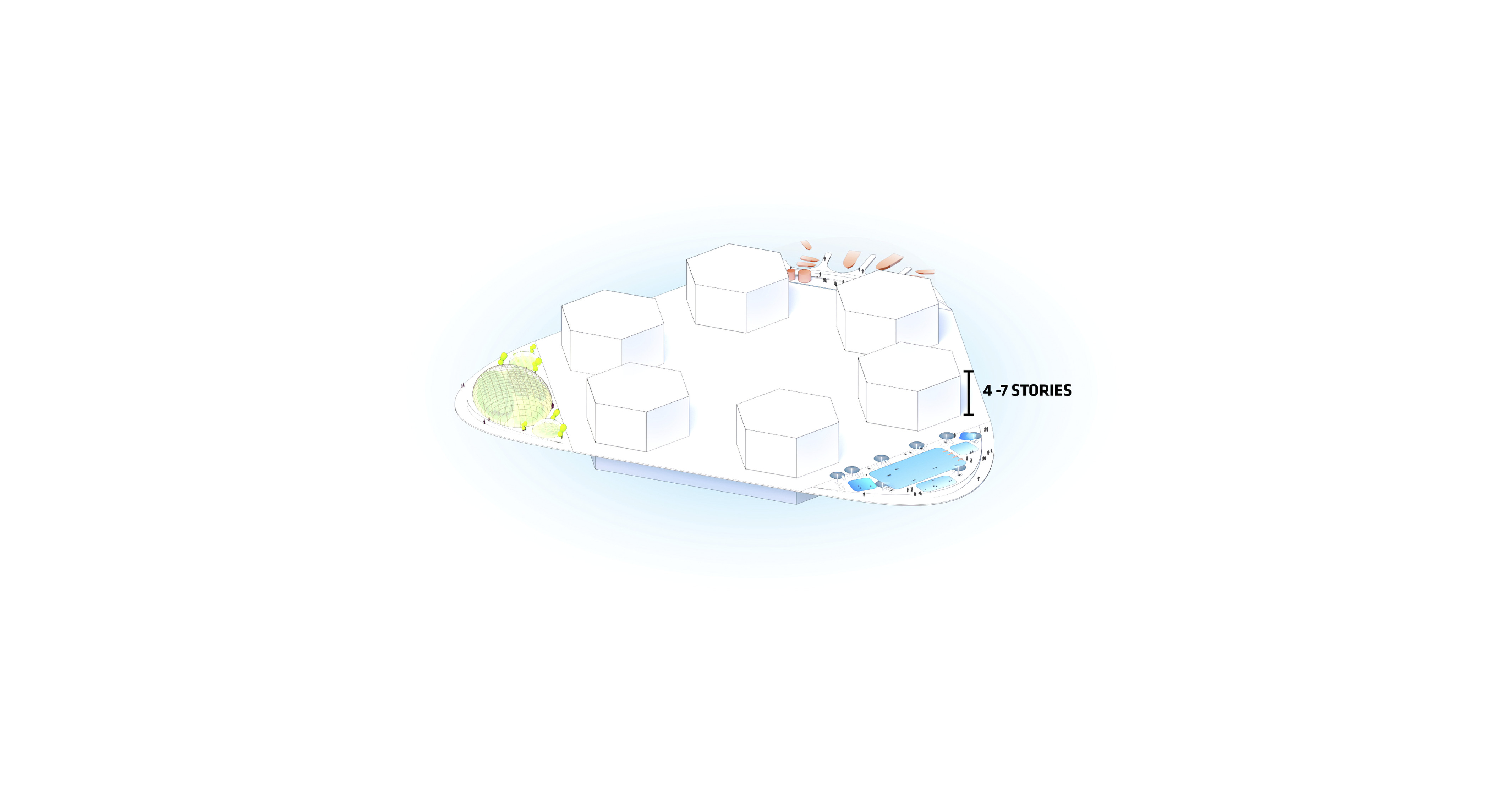 The urban realm is conceived as a flexible network of streets dedicated to various speeds of mobility for safer, pedestrian-friendly connections. The main entrance to the area will be on Five Island Road from where visitors will be able to freely meander and explore a variety of scales, programs and outdoor areas.