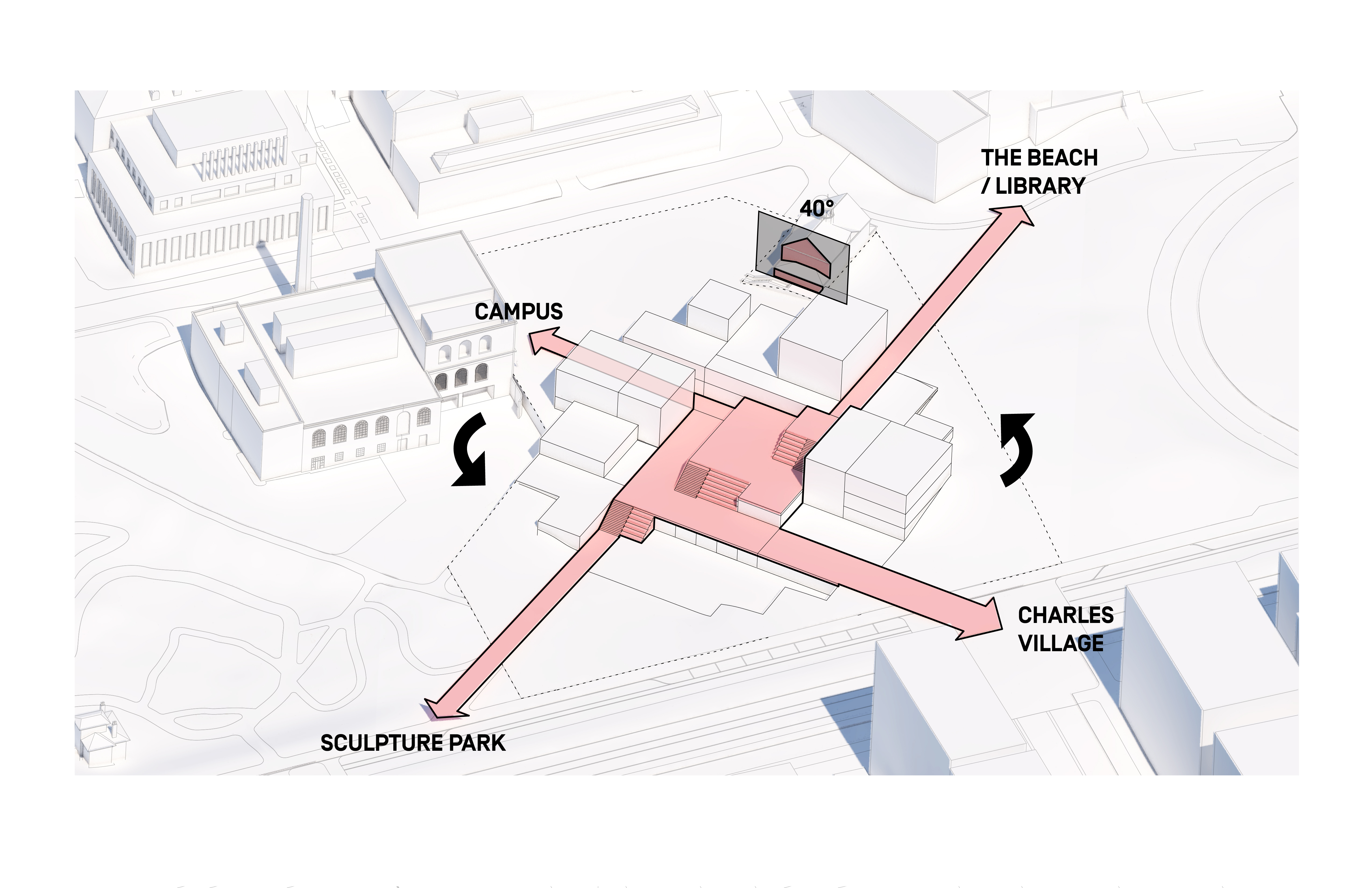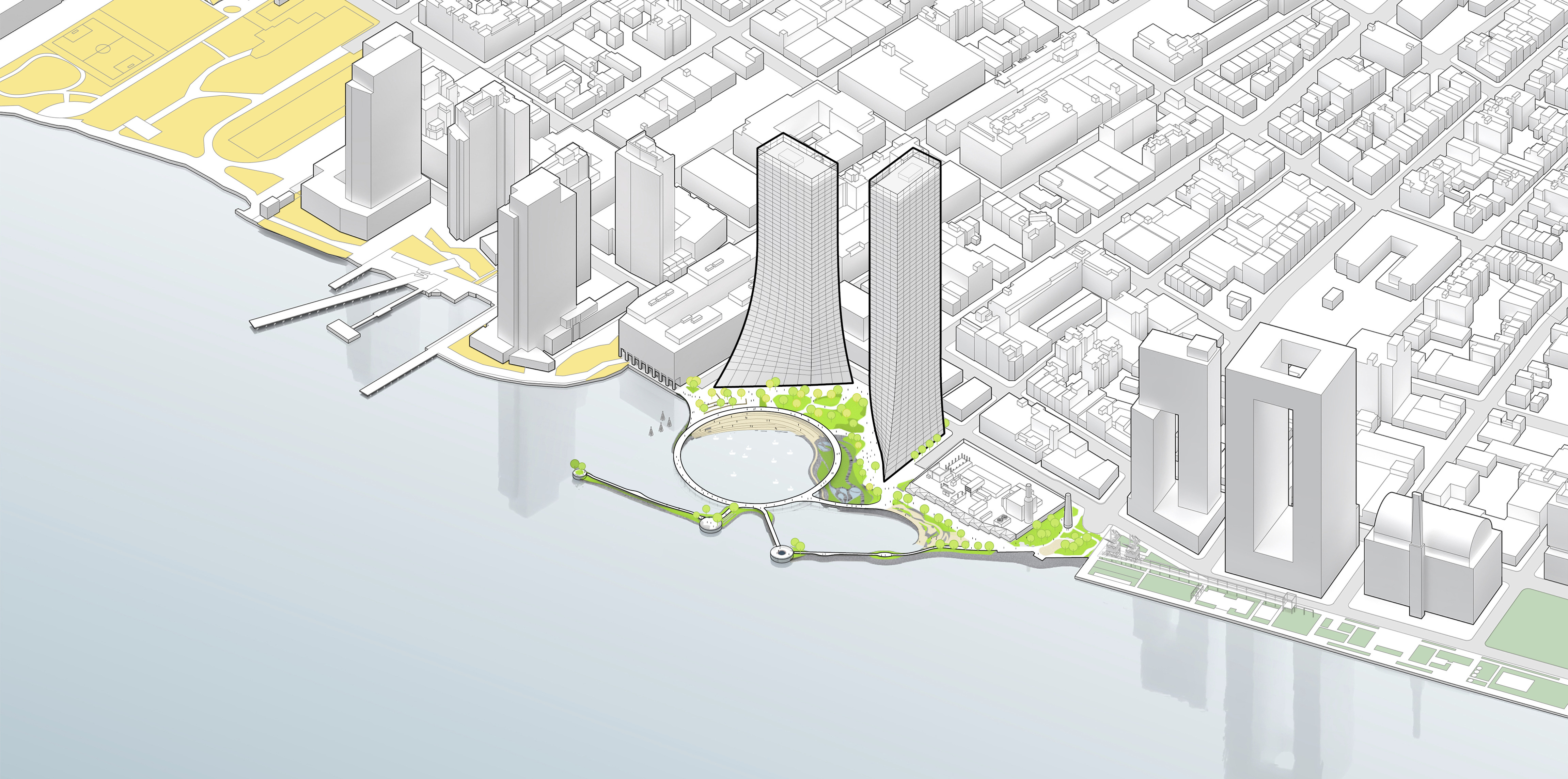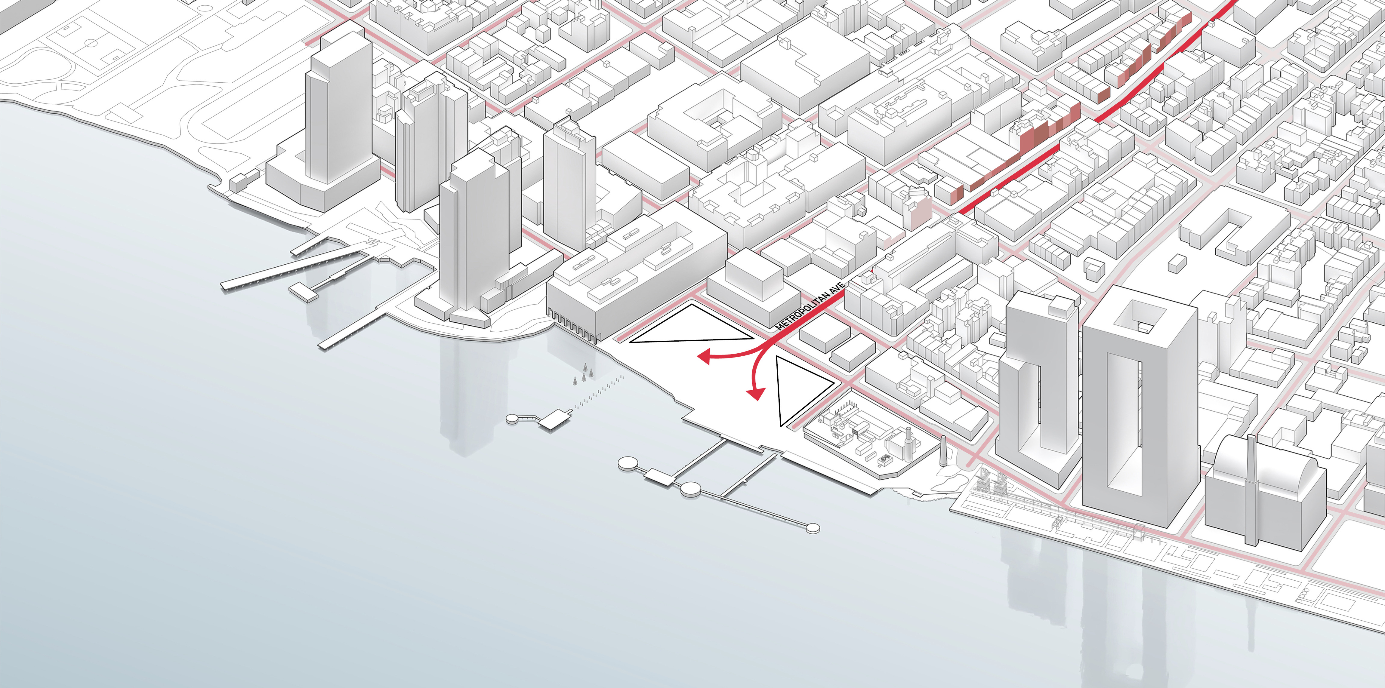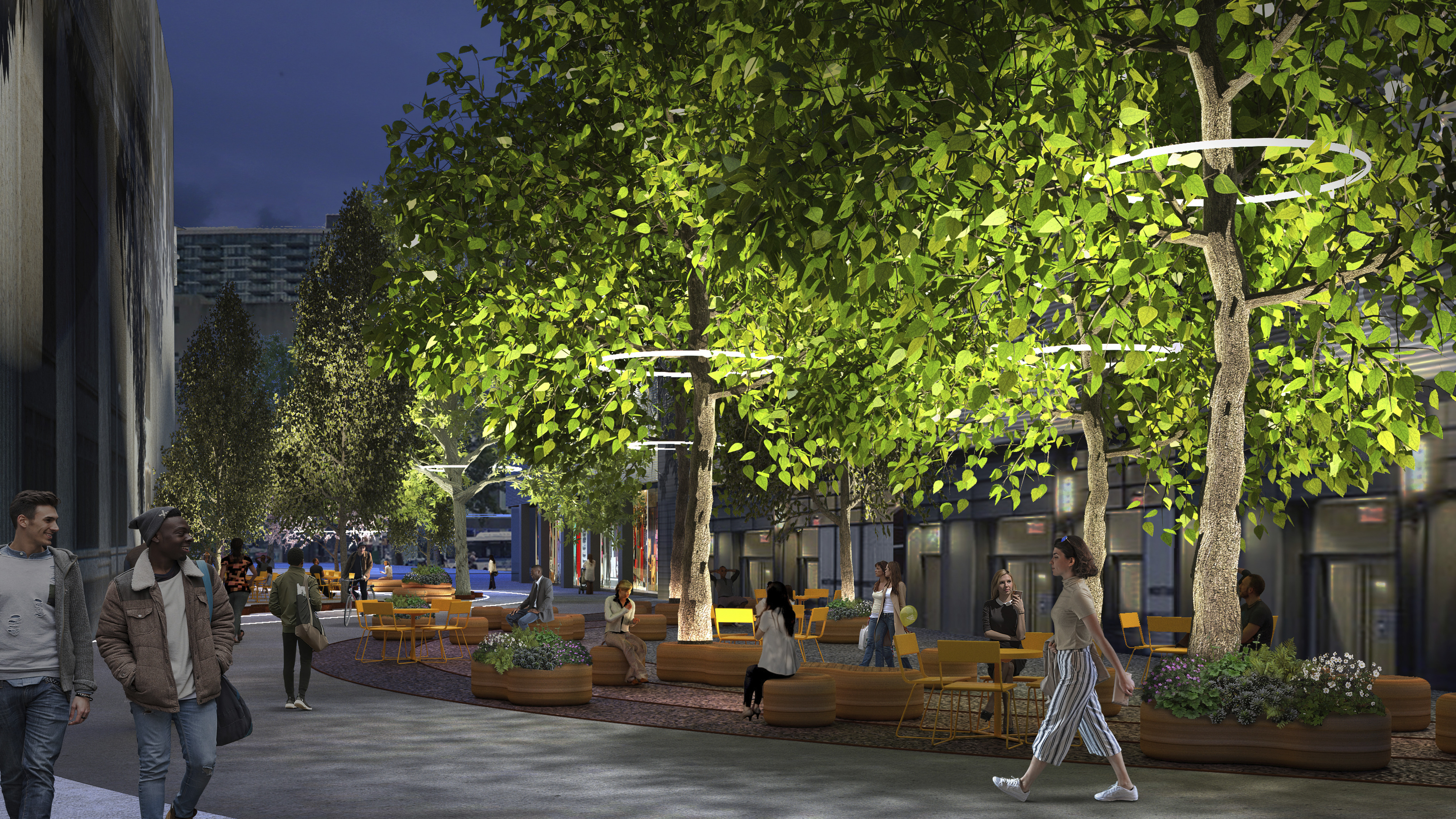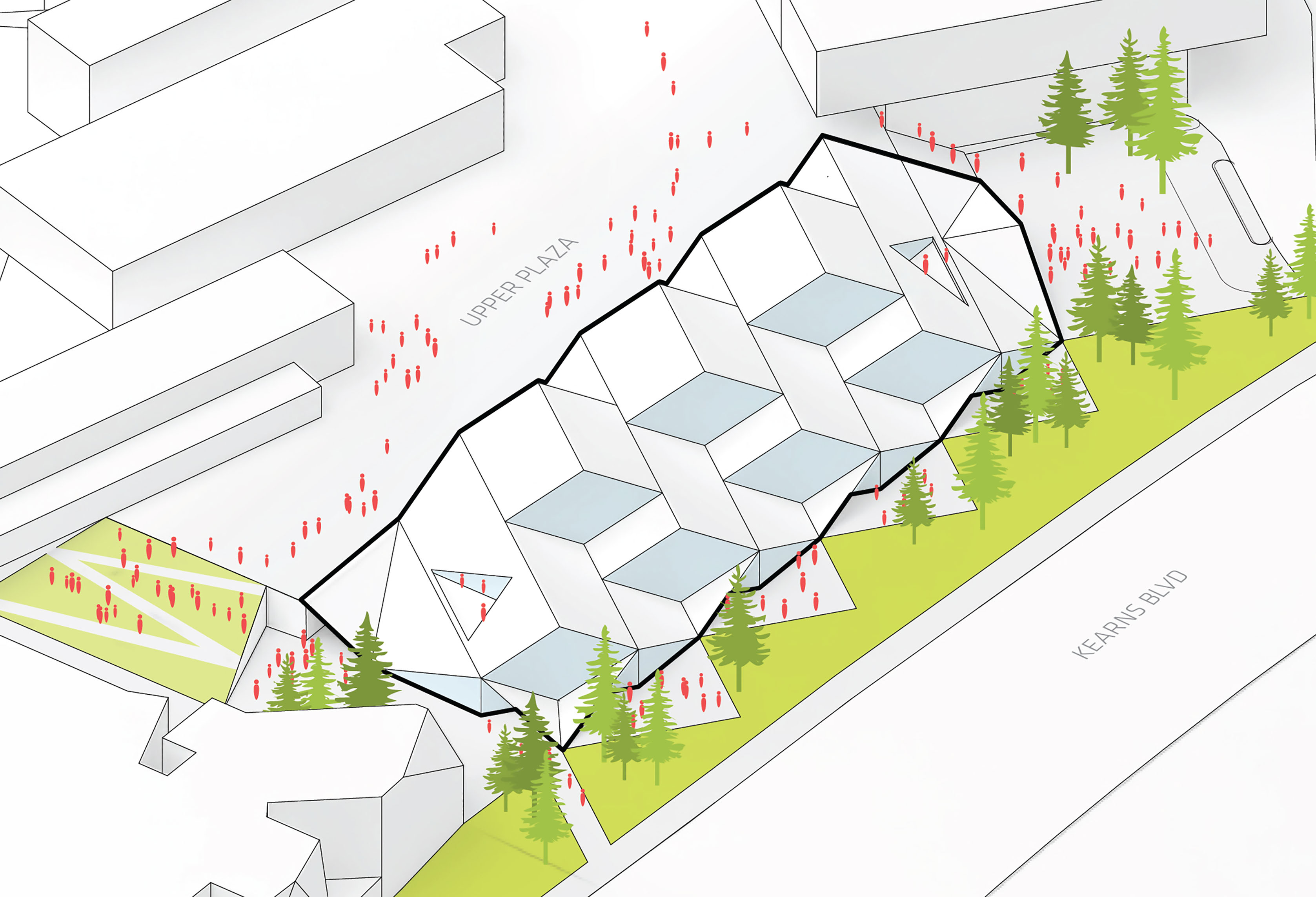 The urban realm is conceived as a flexible network of streets dedicated to various speeds of mobility for safer, pedestrian-friendly connections. The main entrance to the area will be on Five Island Road from where visitors will be able to freely meander and explore a variety of scales, programs and outdoor areas.