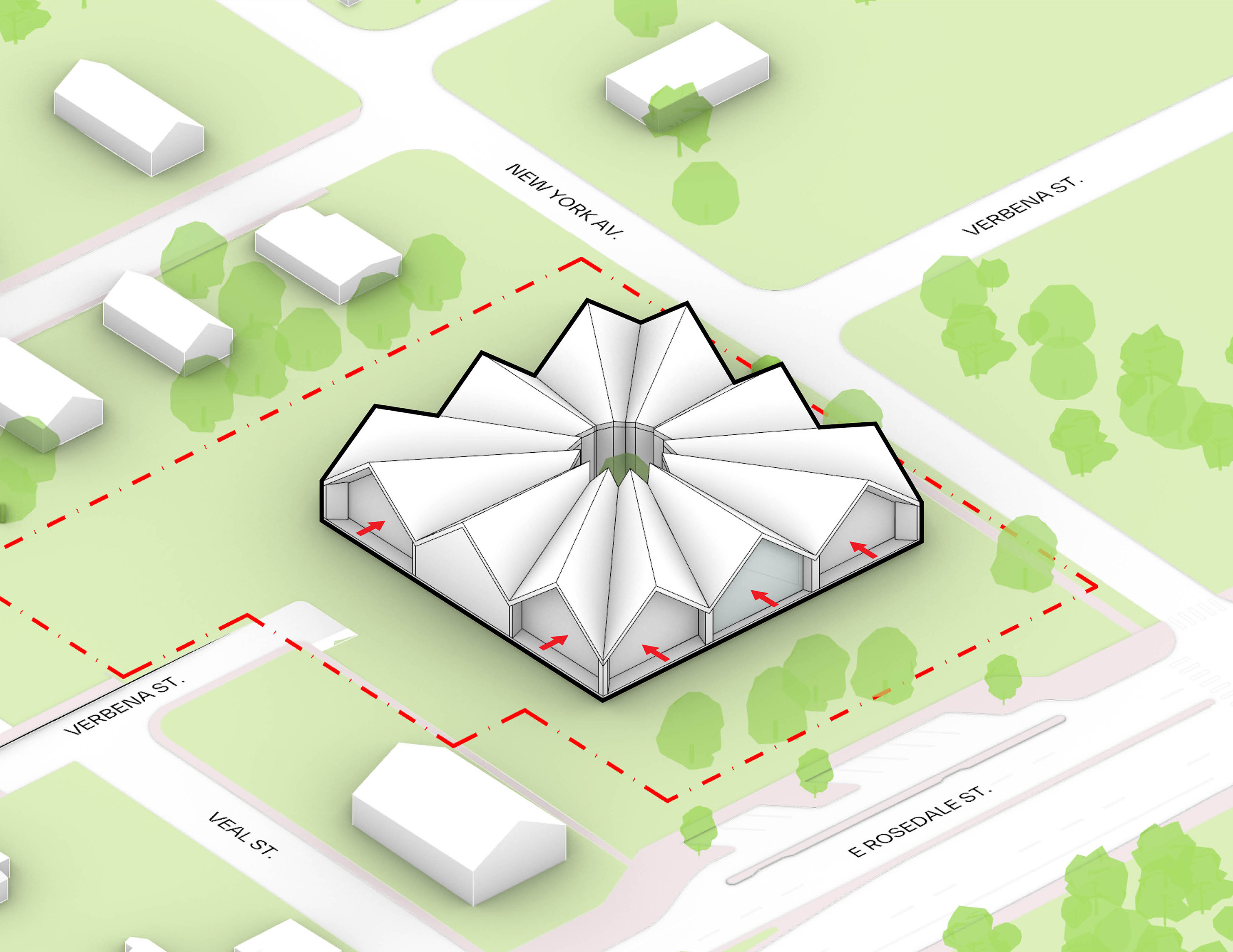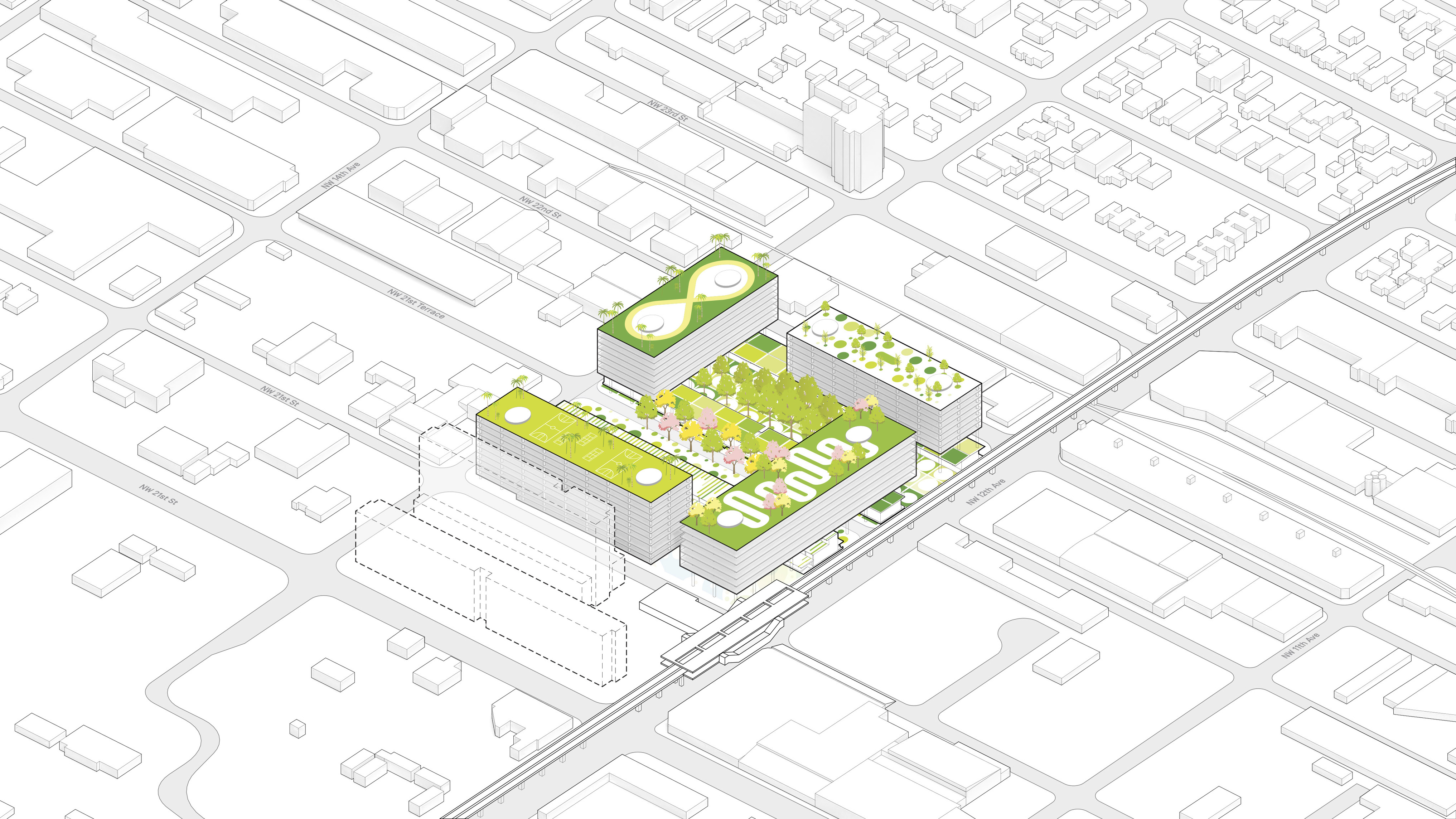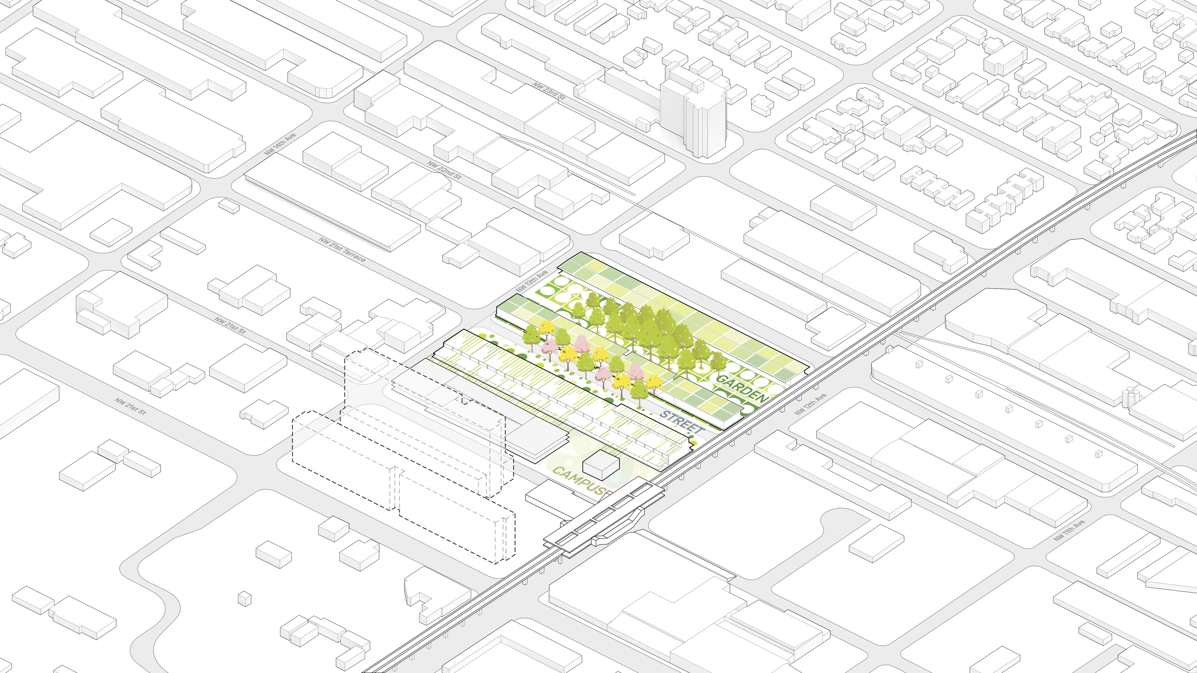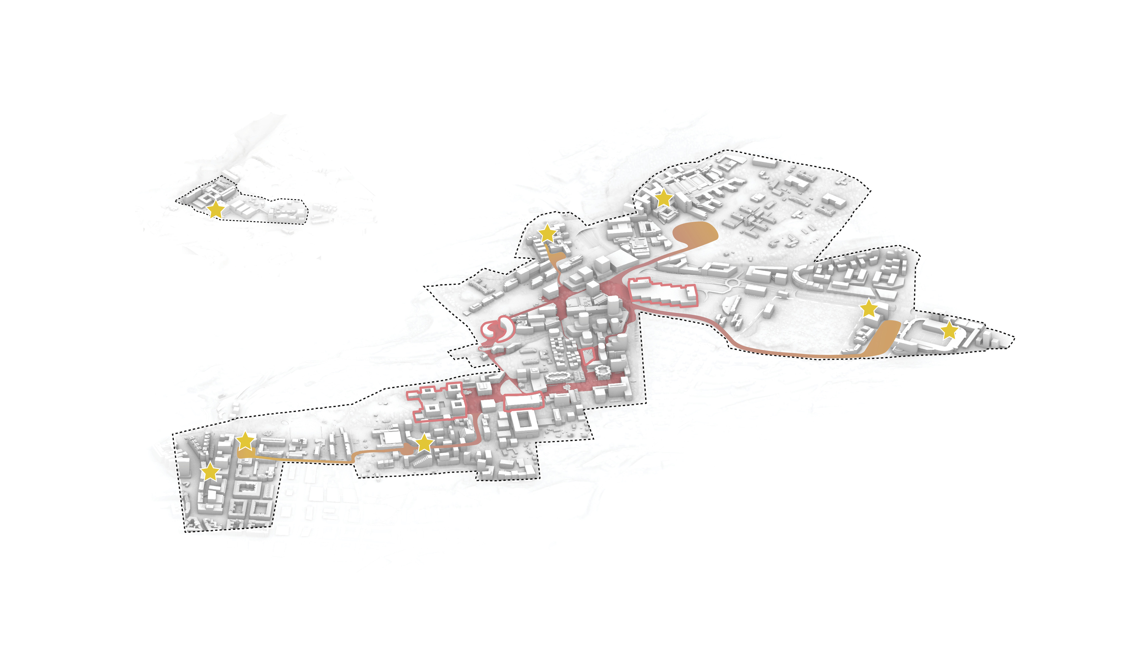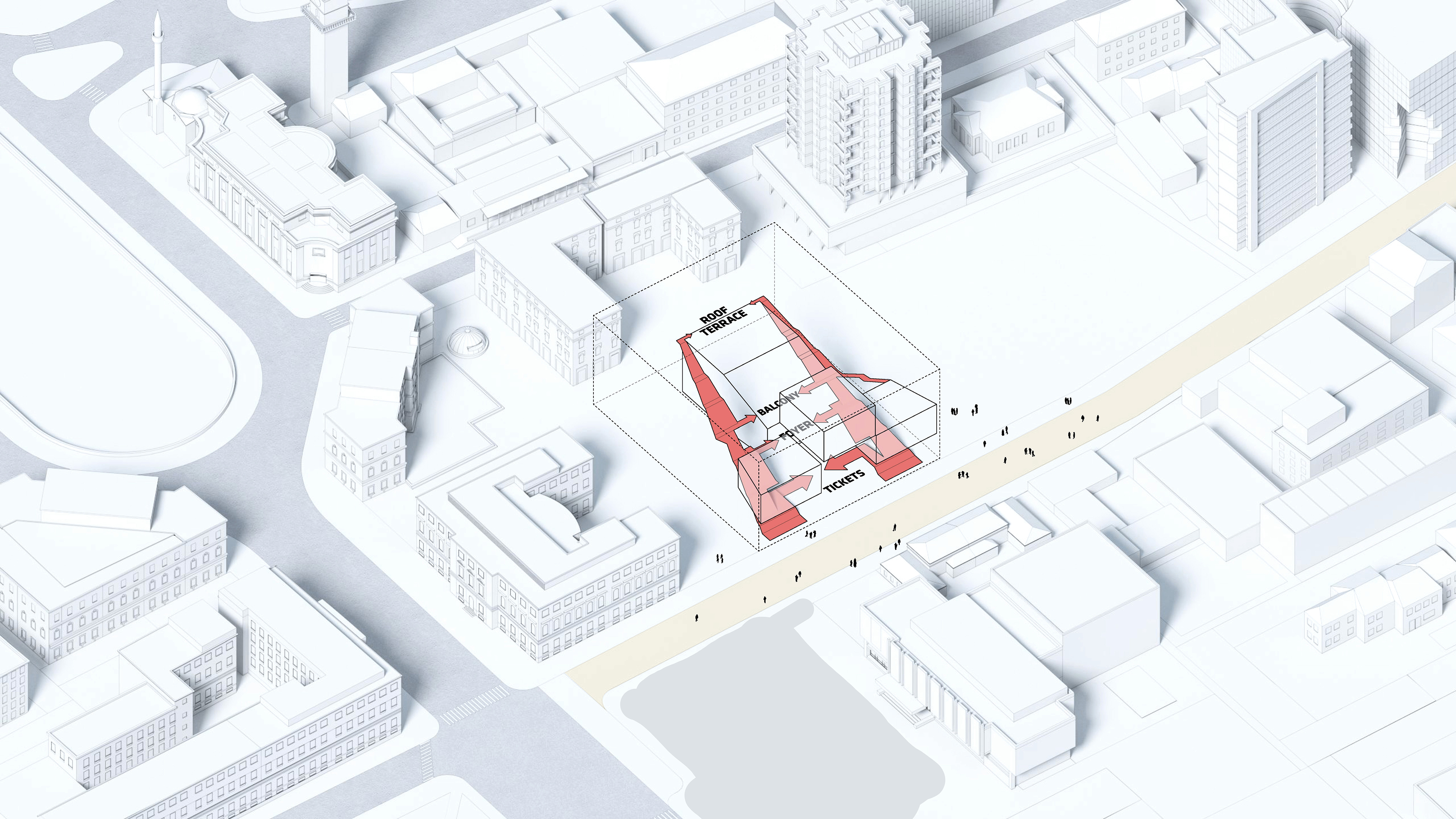 The urban realm is conceived as a flexible network of streets dedicated to various speeds of mobility for safer, pedestrian-friendly connections. The main entrance to the area will be on Five Island Road from where visitors will be able to freely meander and explore a variety of scales, programs and outdoor areas.
