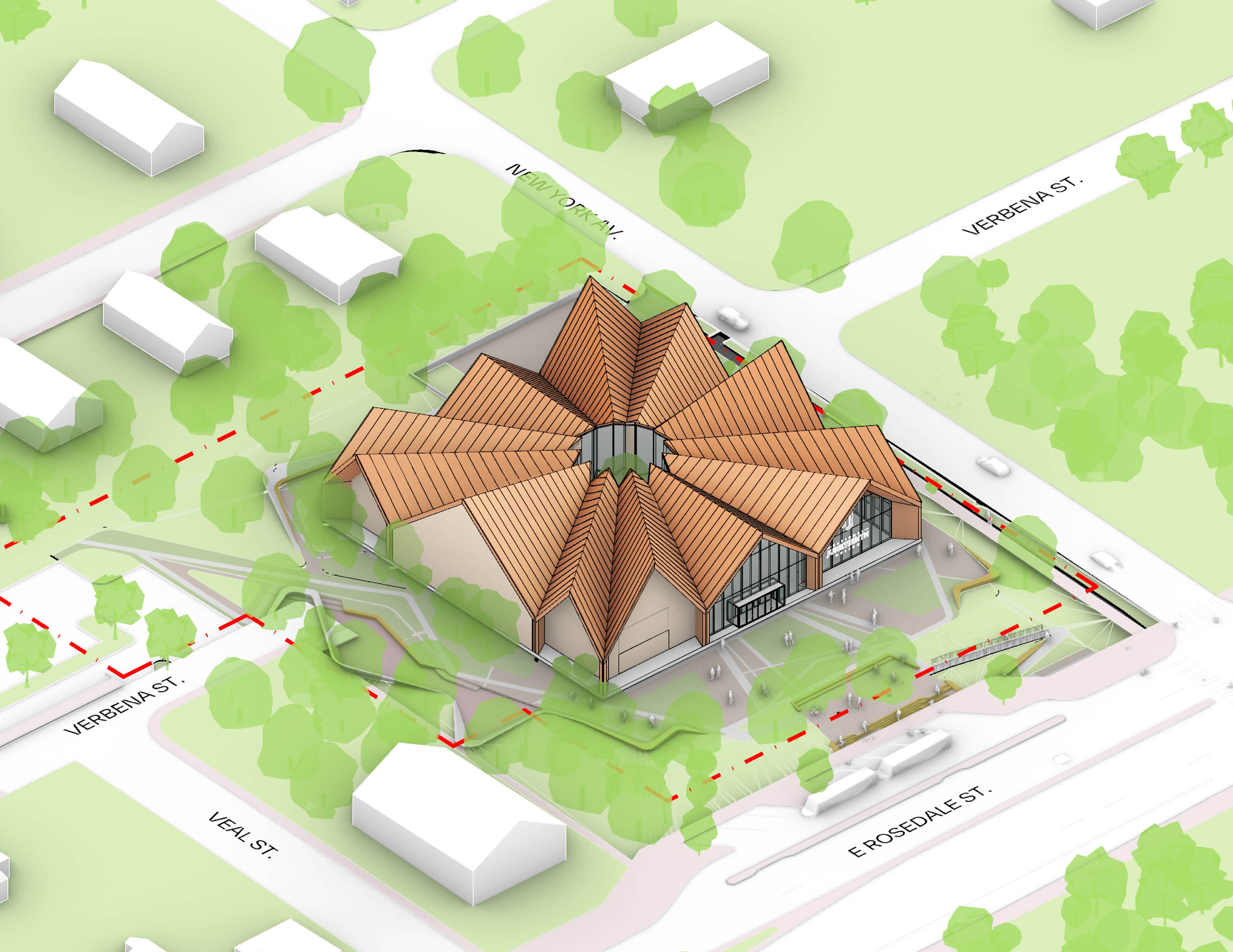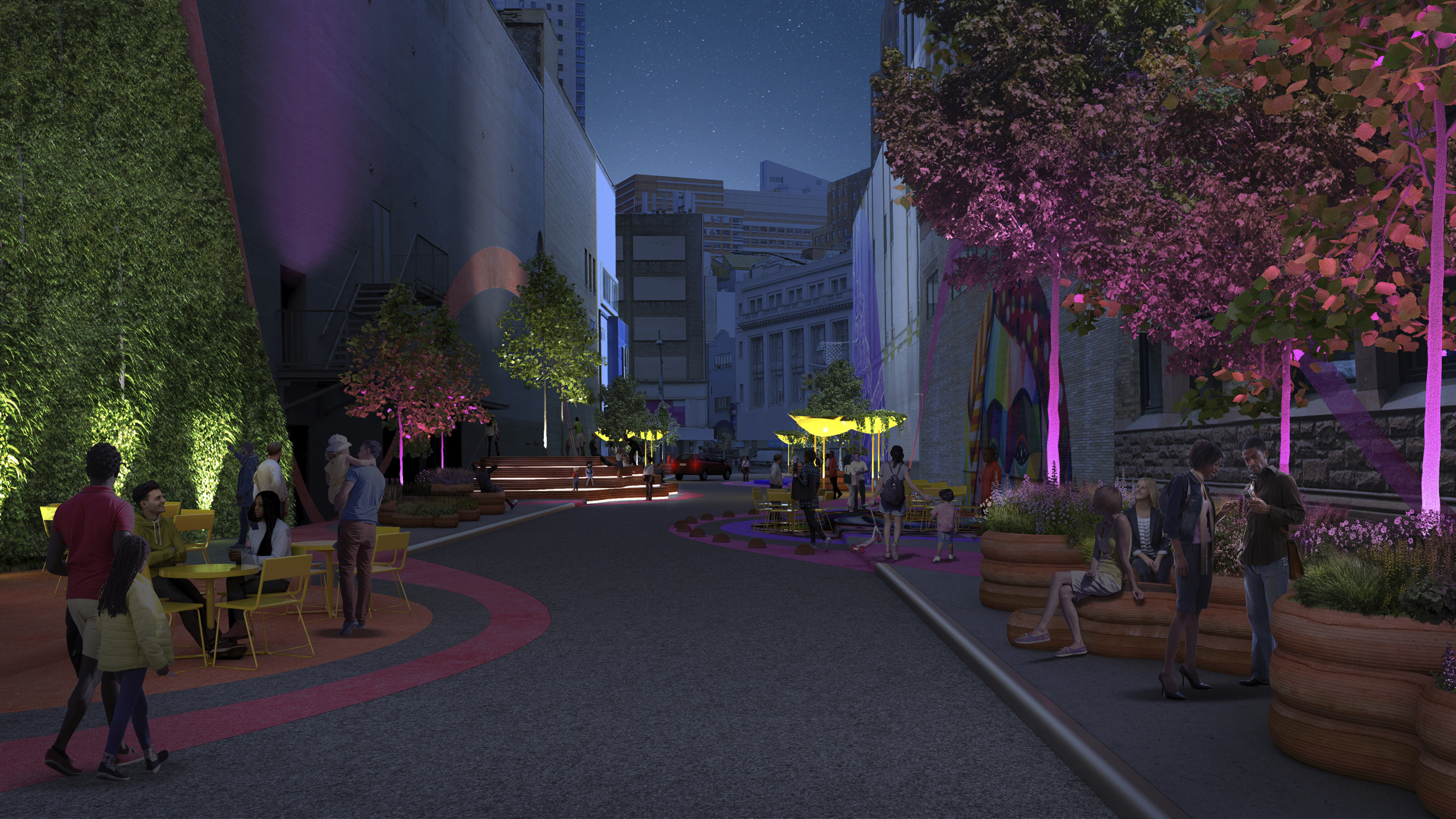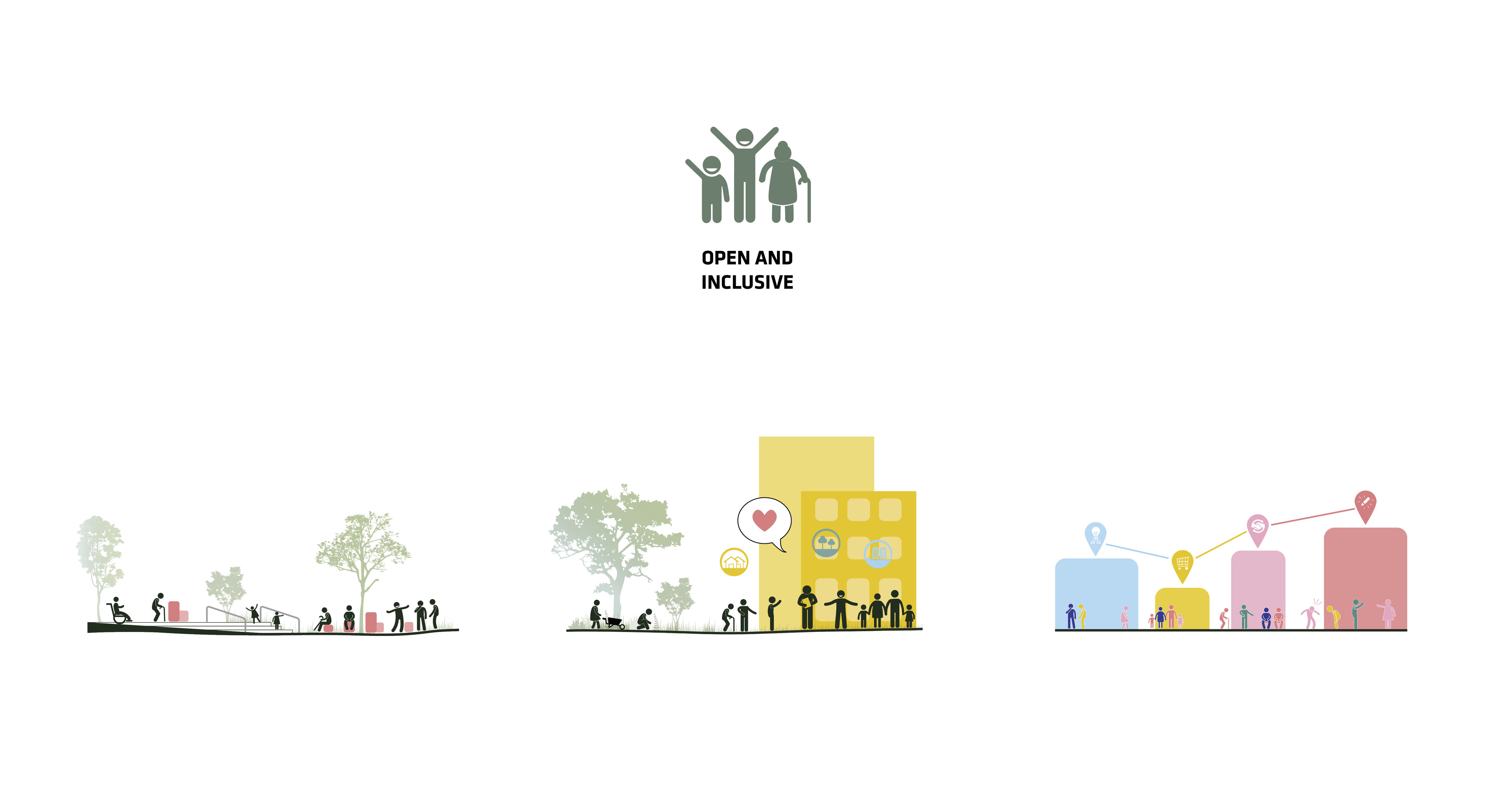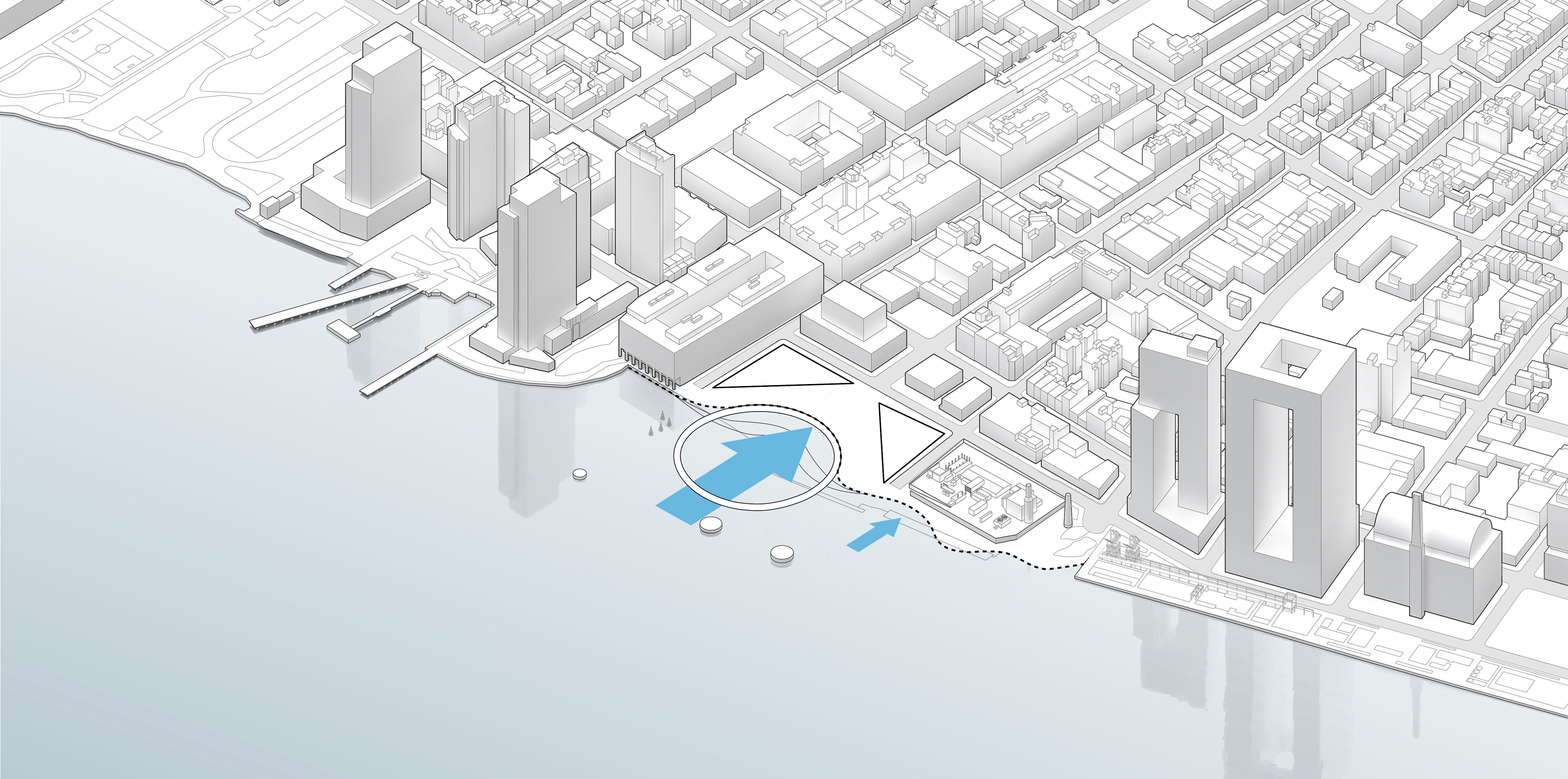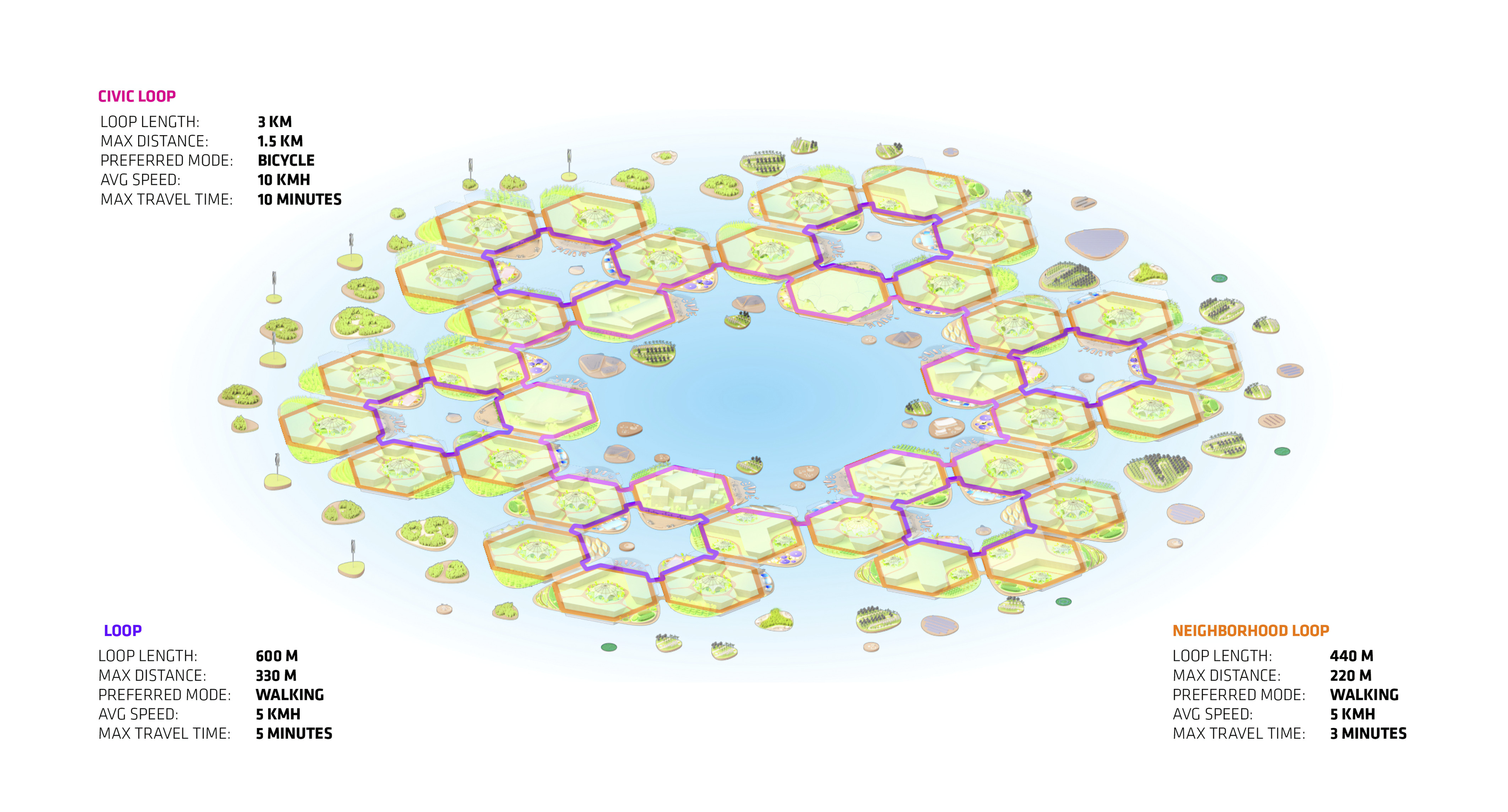 The urban realm is conceived as a flexible network of streets dedicated to various speeds of mobility for safer, pedestrian-friendly connections. The main entrance to the area will be on Five Island Road from where visitors will be able to freely meander and explore a variety of scales, programs and outdoor areas.