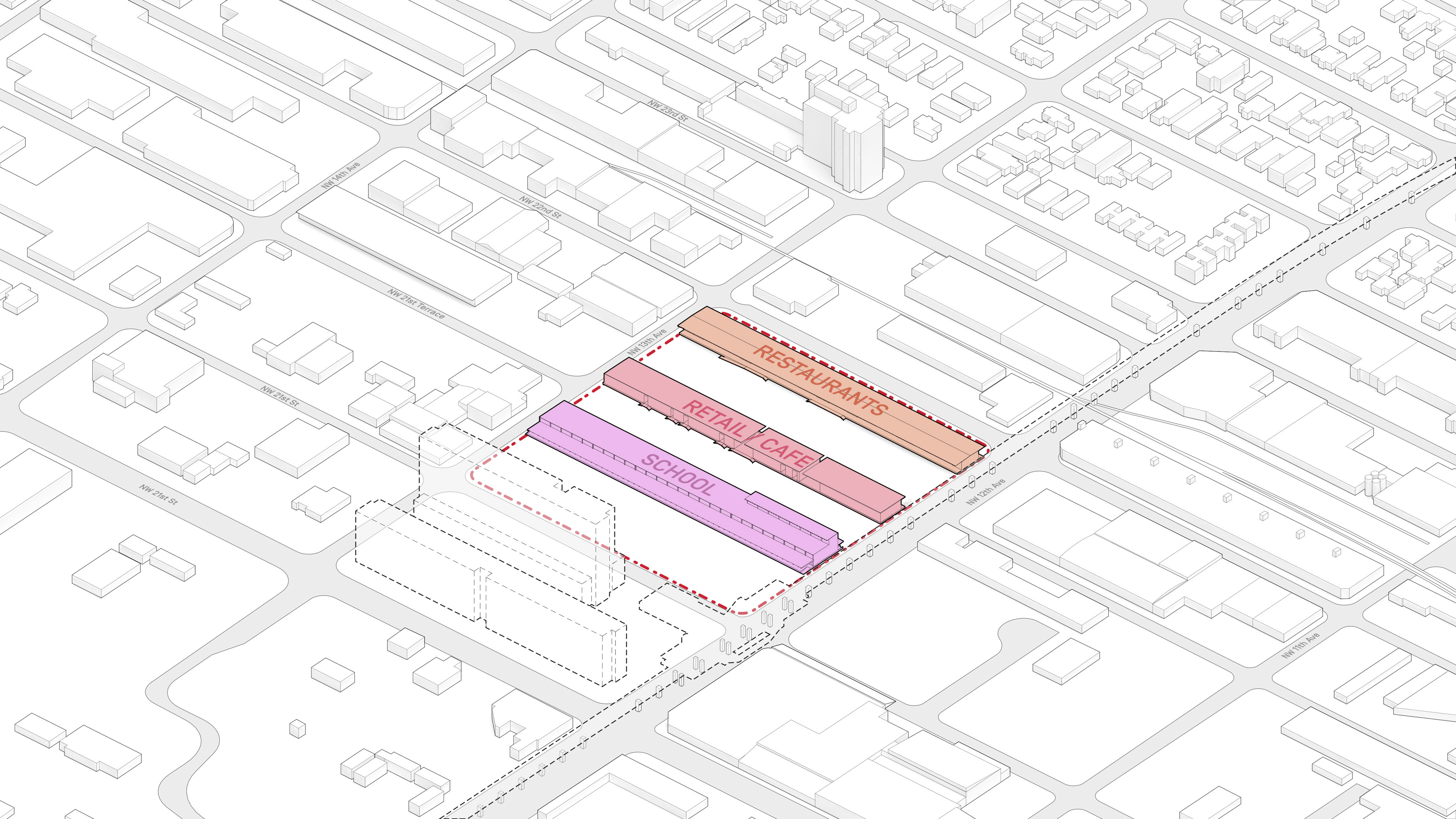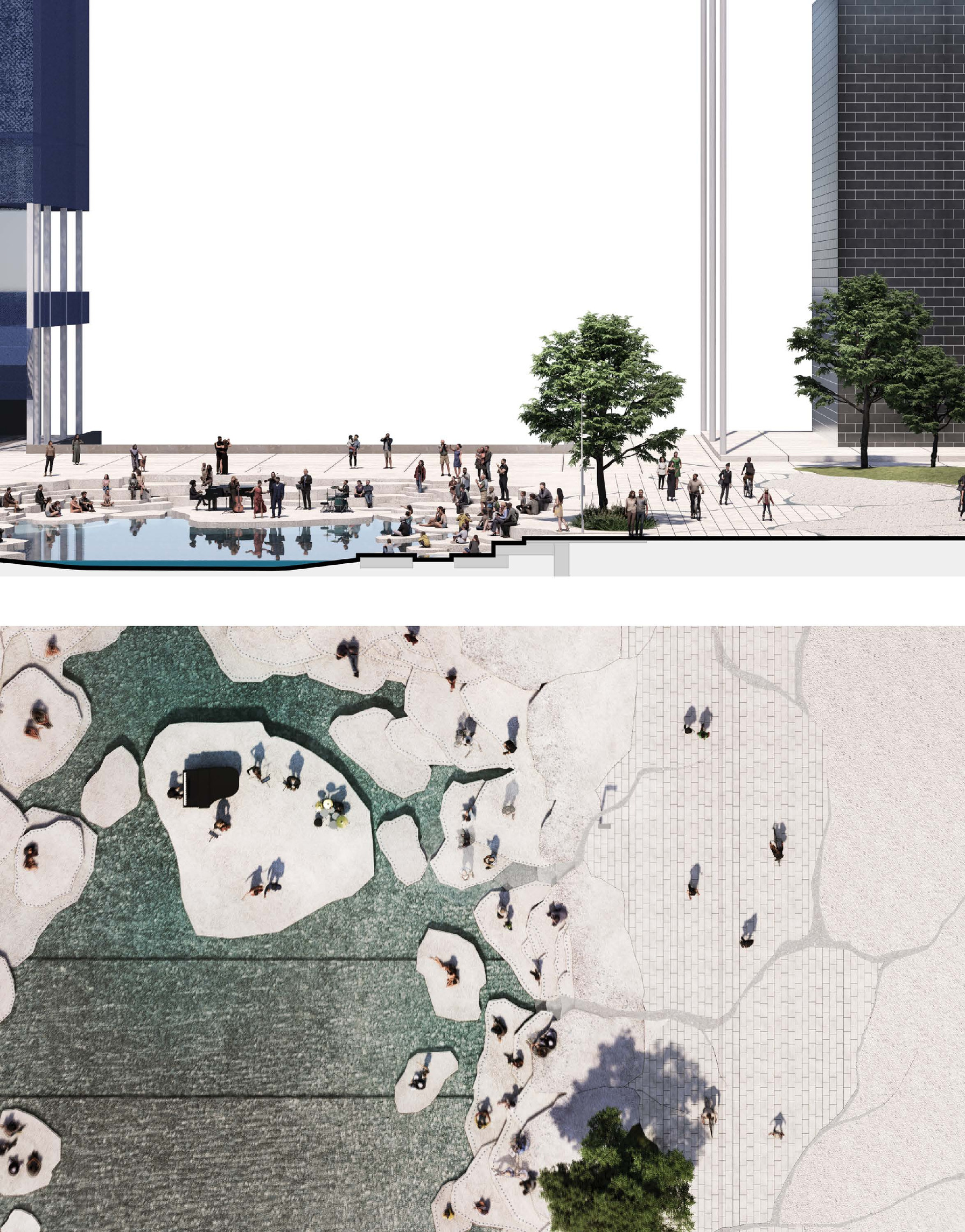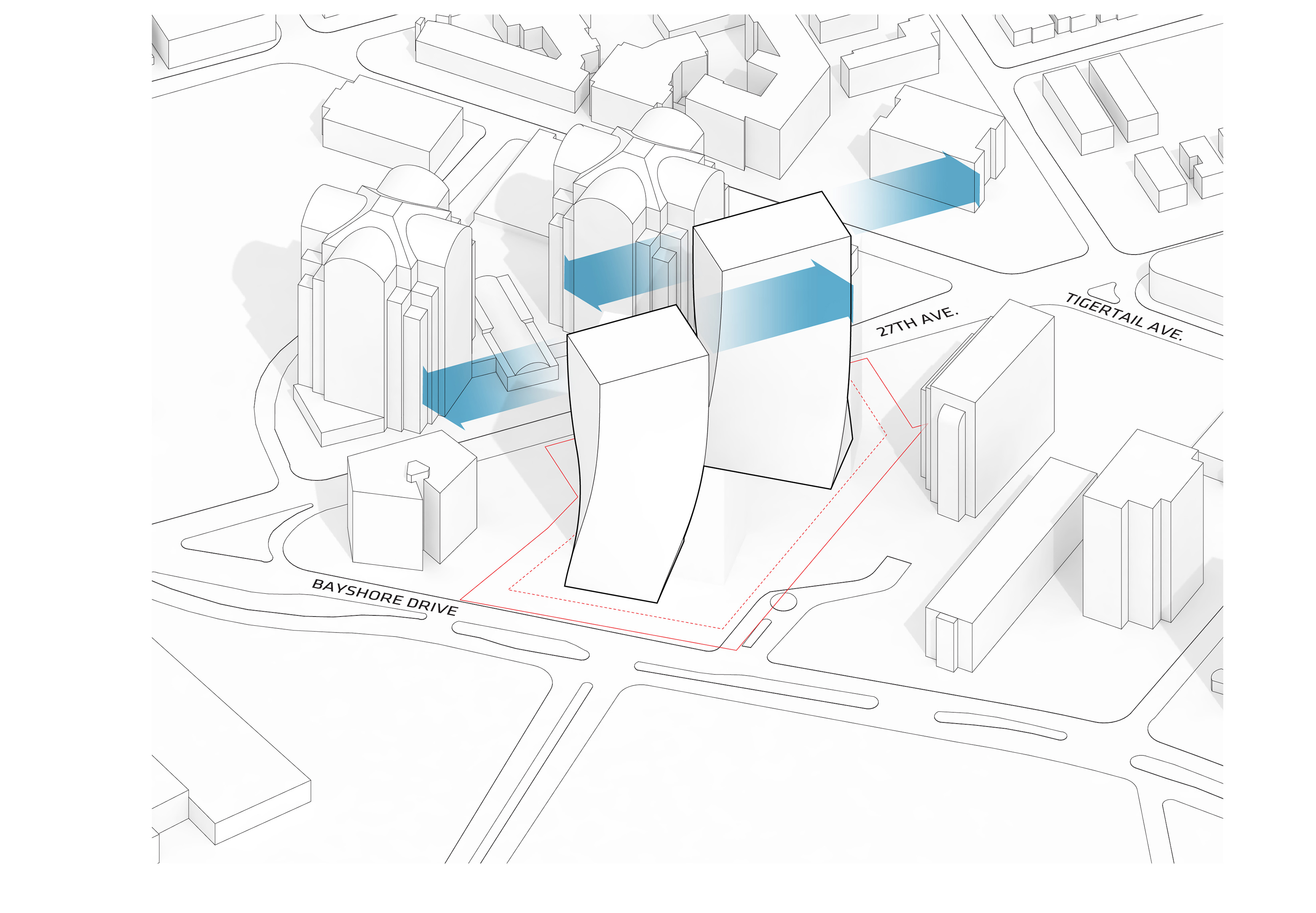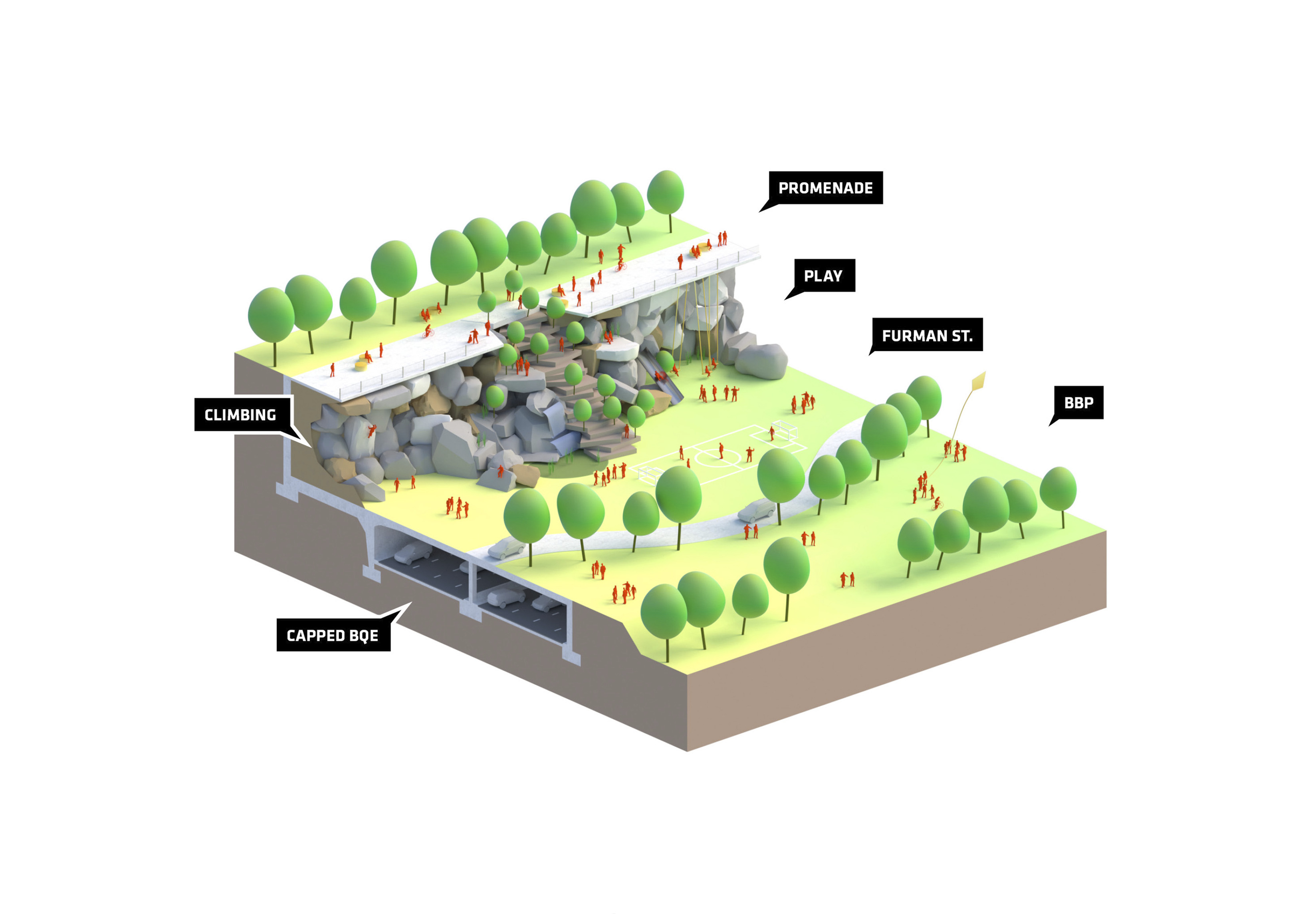 The urban realm is conceived as a flexible network of streets dedicated to various speeds of mobility for safer, pedestrian-friendly connections. The main entrance to the area will be on Five Island Road from where visitors will be able to freely meander and explore a variety of scales, programs and outdoor areas.