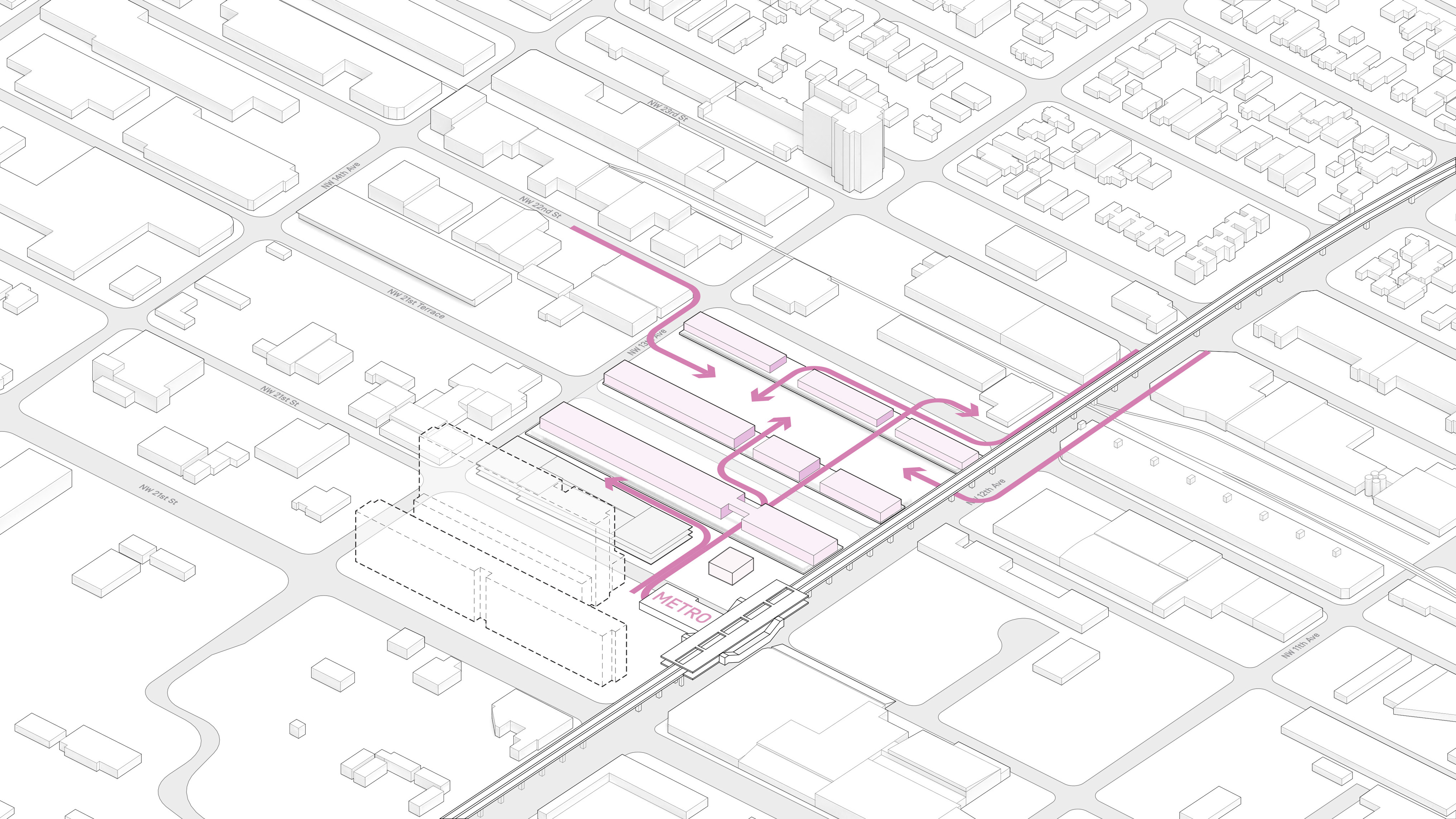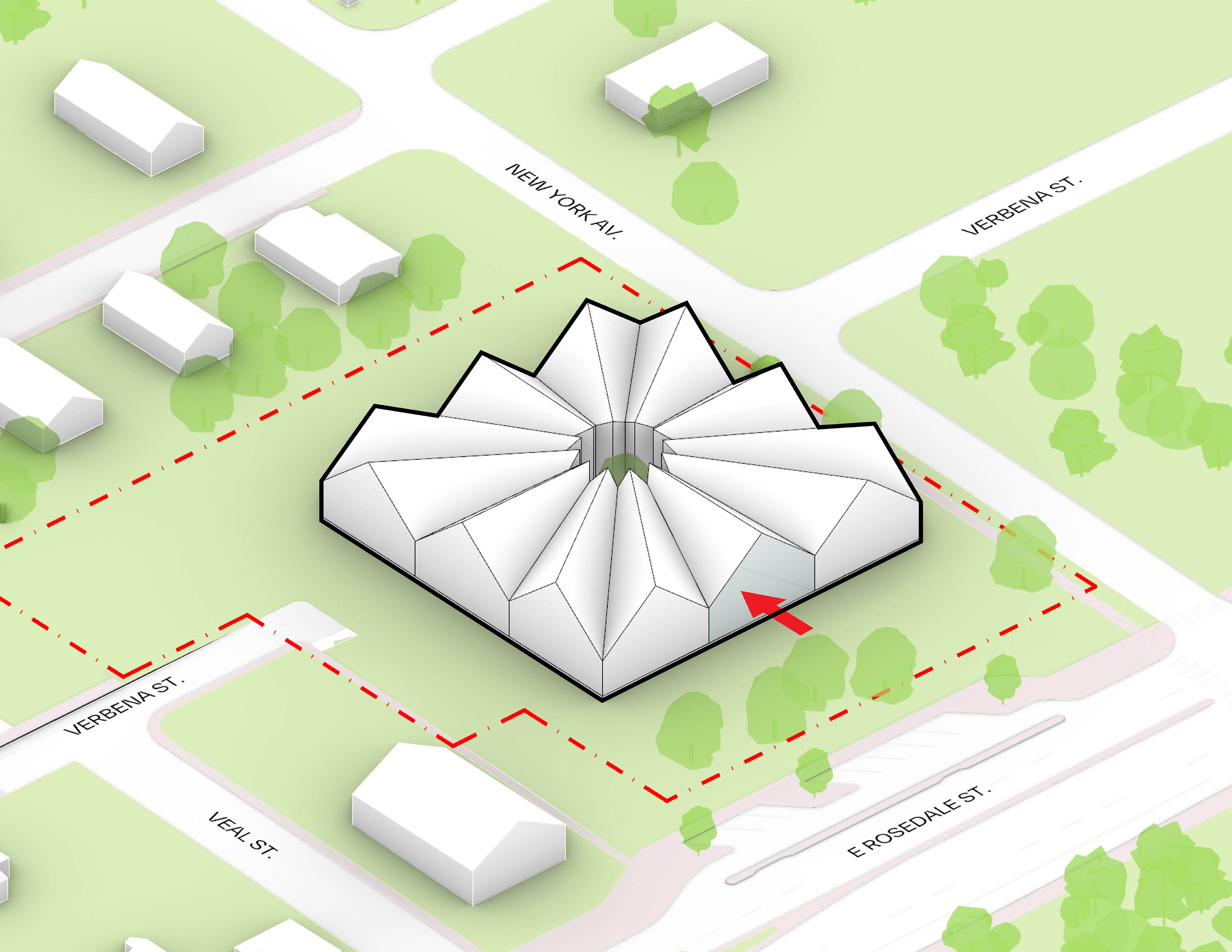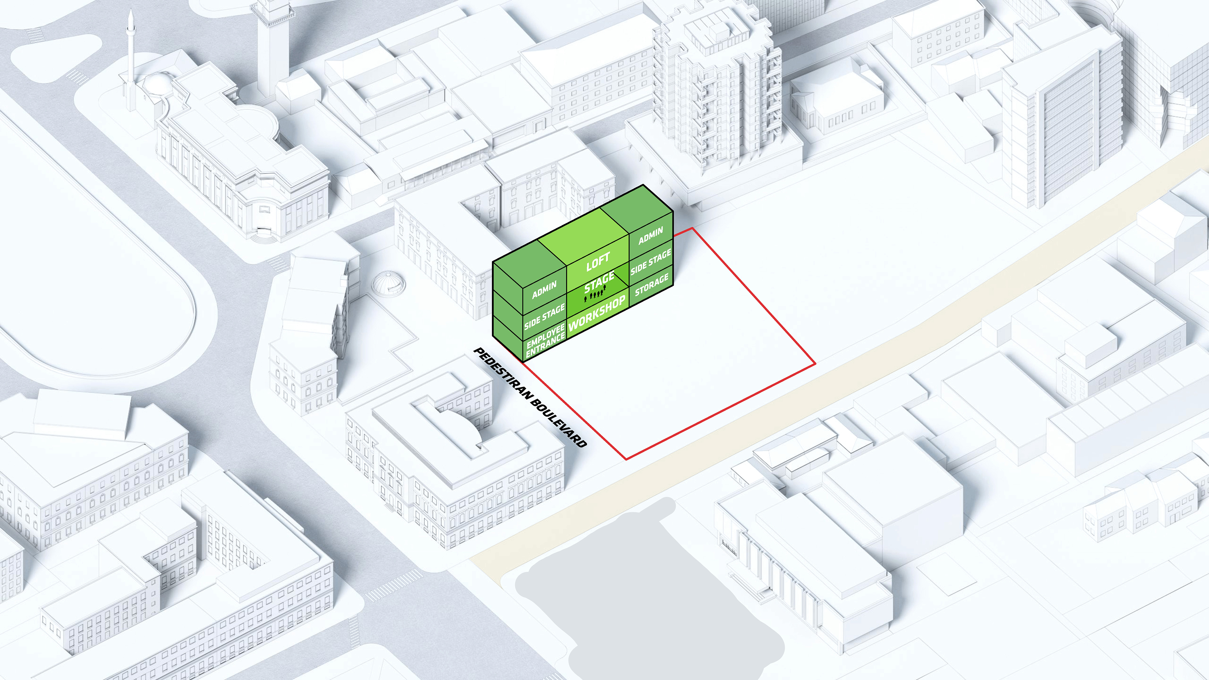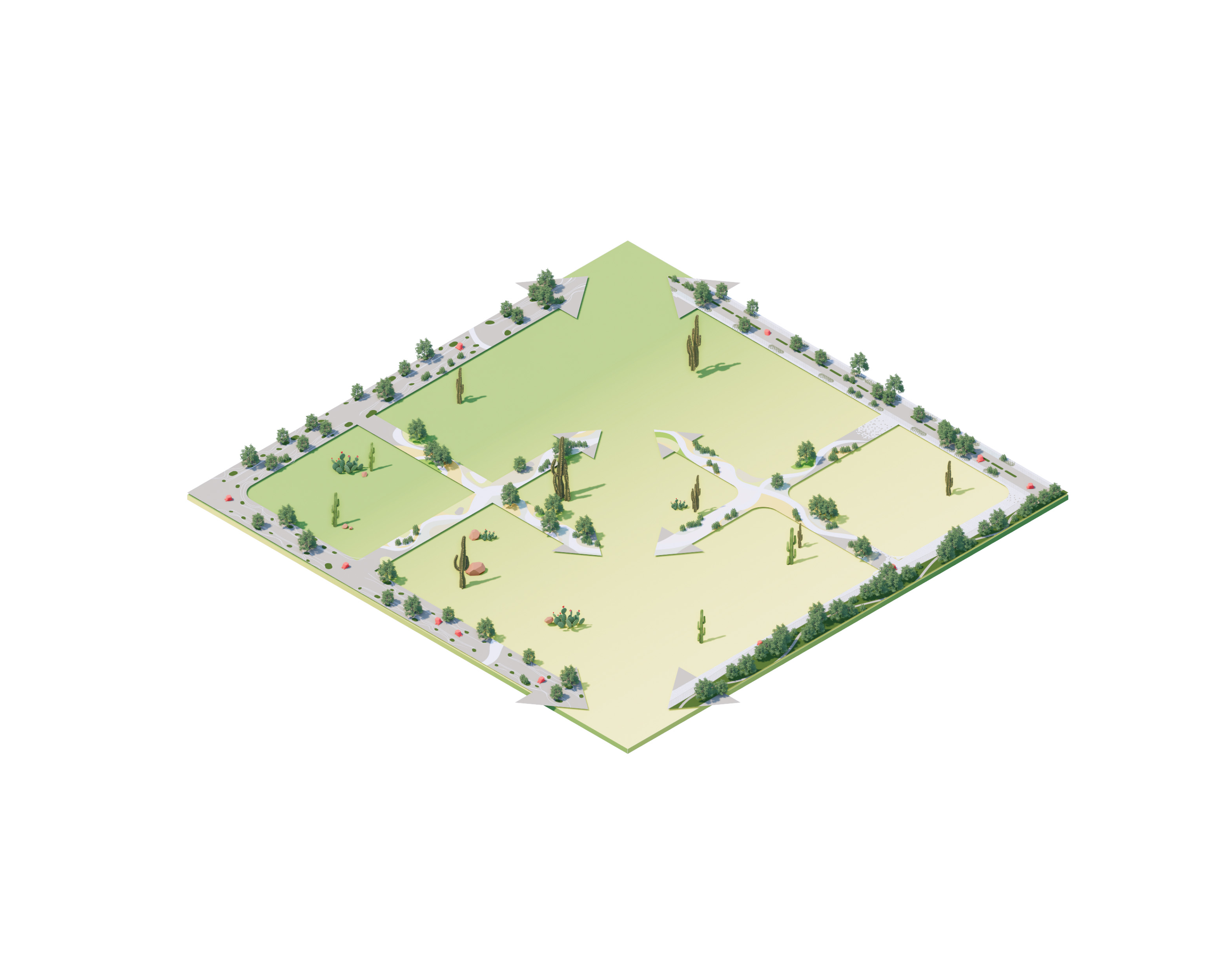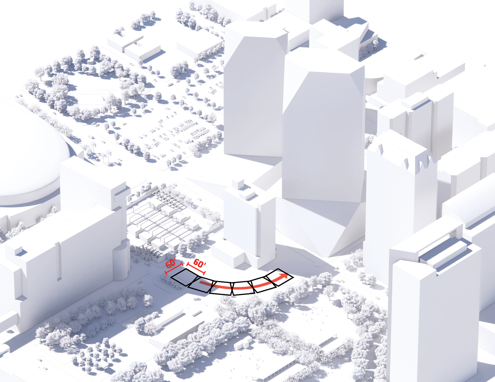 The urban realm is conceived as a flexible network of streets dedicated to various speeds of mobility for safer, pedestrian-friendly connections. The main entrance to the area will be on Five Island Road from where visitors will be able to freely meander and explore a variety of scales, programs and outdoor areas.