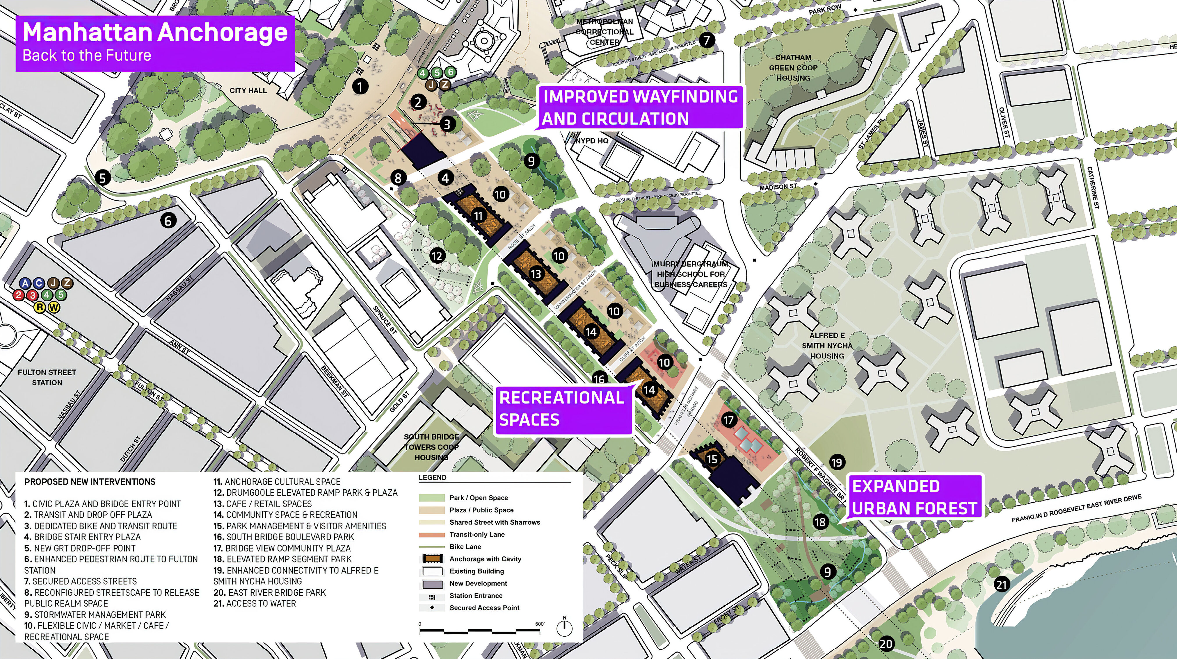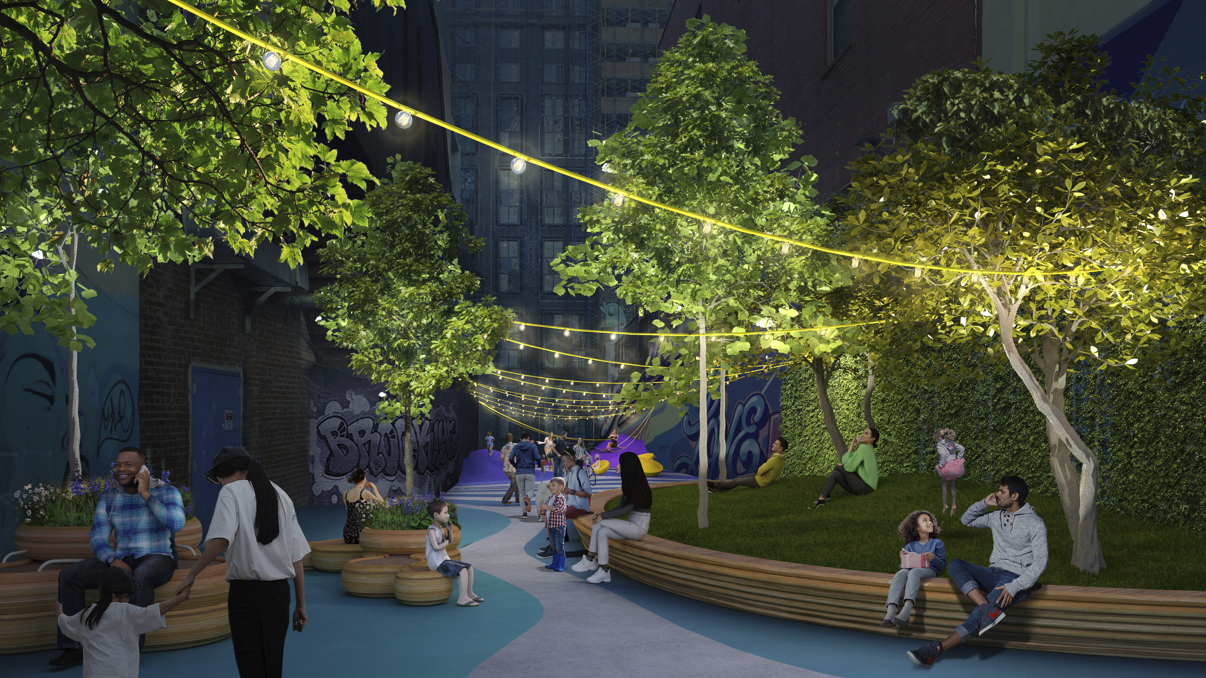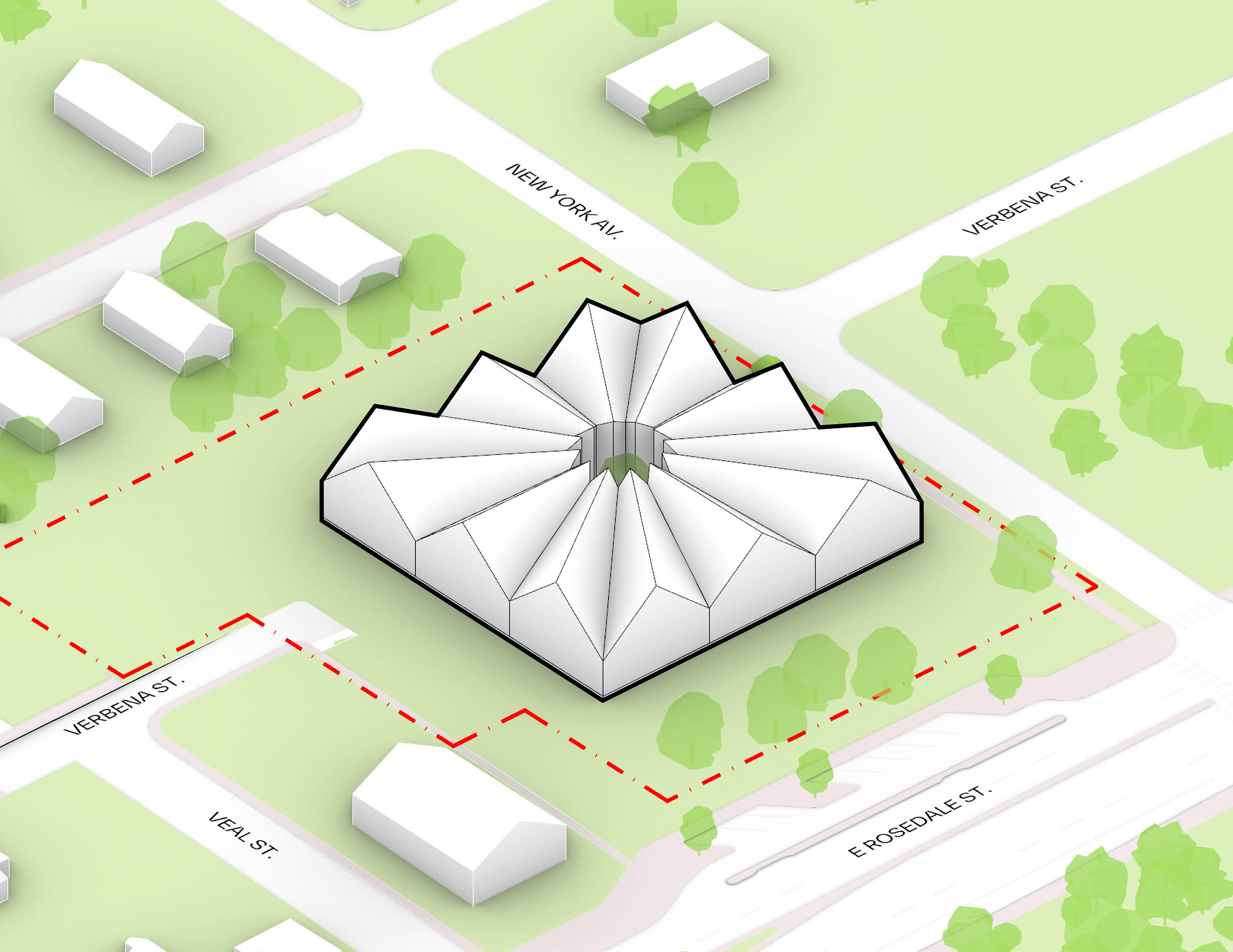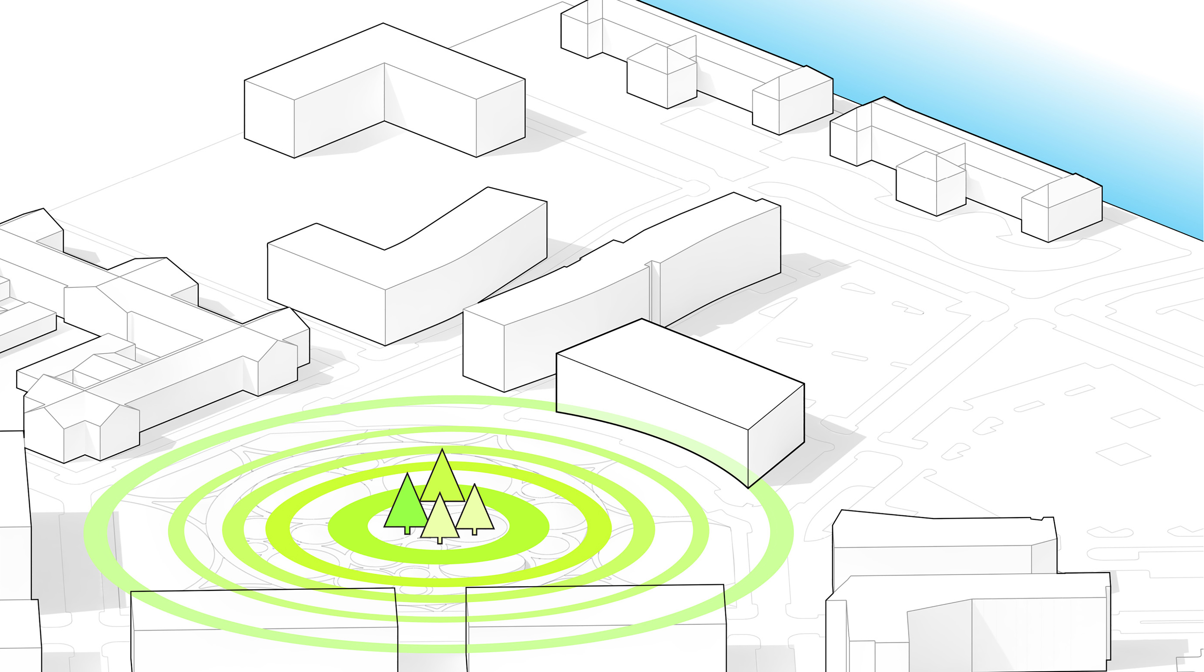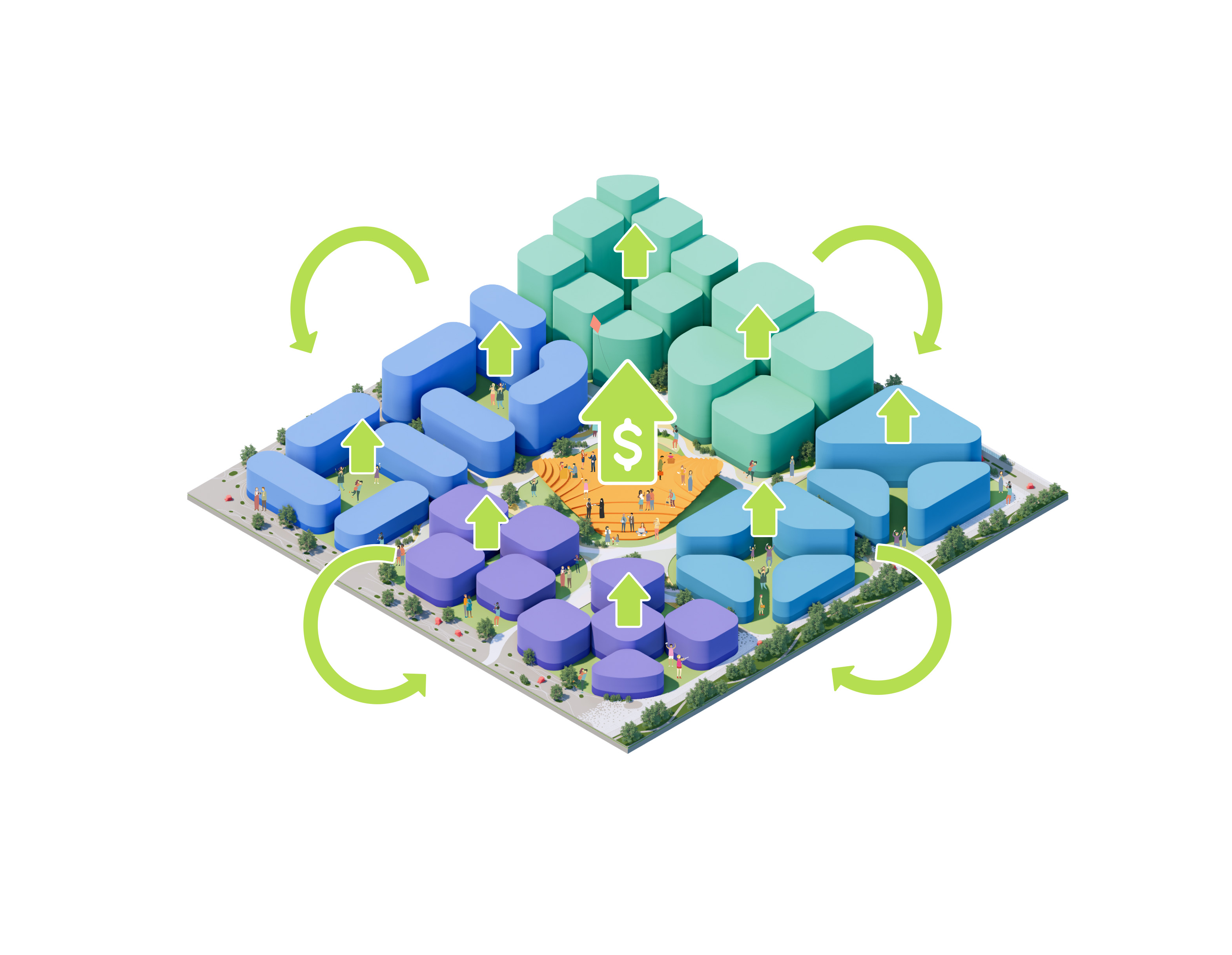 The urban realm is conceived as a flexible network of streets dedicated to various speeds of mobility for safer, pedestrian-friendly connections. The main entrance to the area will be on Five Island Road from where visitors will be able to freely meander and explore a variety of scales, programs and outdoor areas.