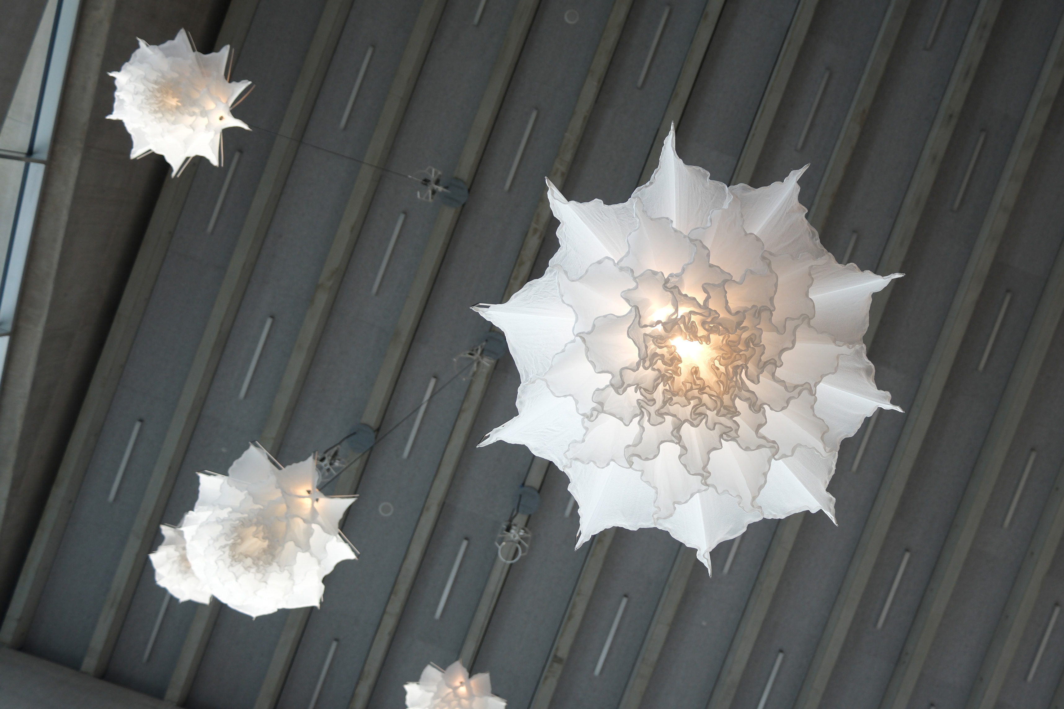 Trumpet is a fixture which accomodates many building services such as lighting, audio and ventilation. The subtle hyperbolic shape of Trumpet blends almost imperceptibly into the ceiling. The deeply recessed LED module provides lighting with minimal glare. With a specially developed surface with small laser-cut points, Trumpet creates an extremely homogeneous distribution of light. This versatility makes it ideal for use in offices.