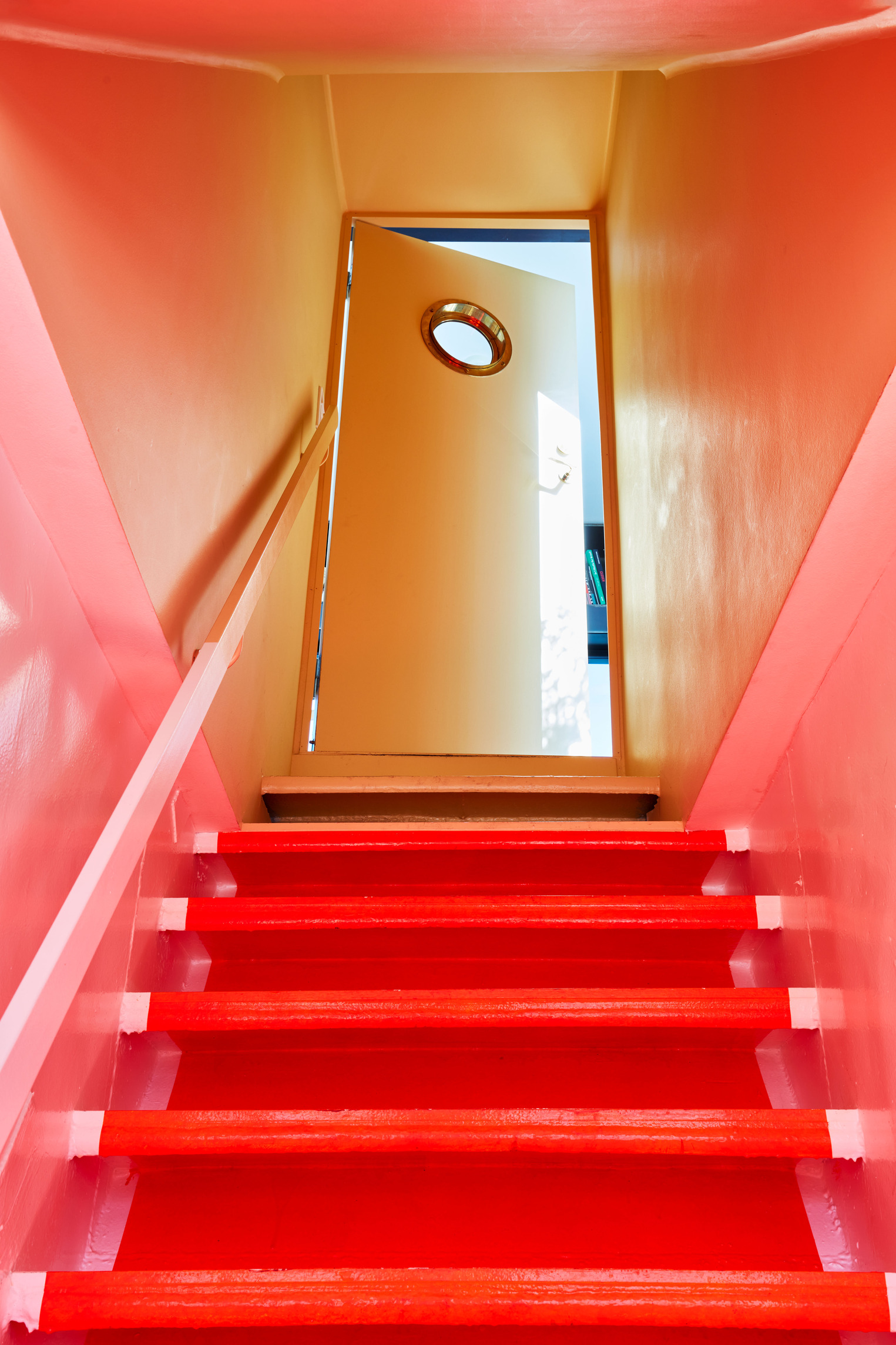 The galvanized steel cladding provides a versatile surface for teams to pin up drawings and exhibition boards, facilitating interactive presentations within the space. Meeting rooms are furnished with BIG’s Scoop chairs in red and blue as a nod to the colours of the Union Jack.