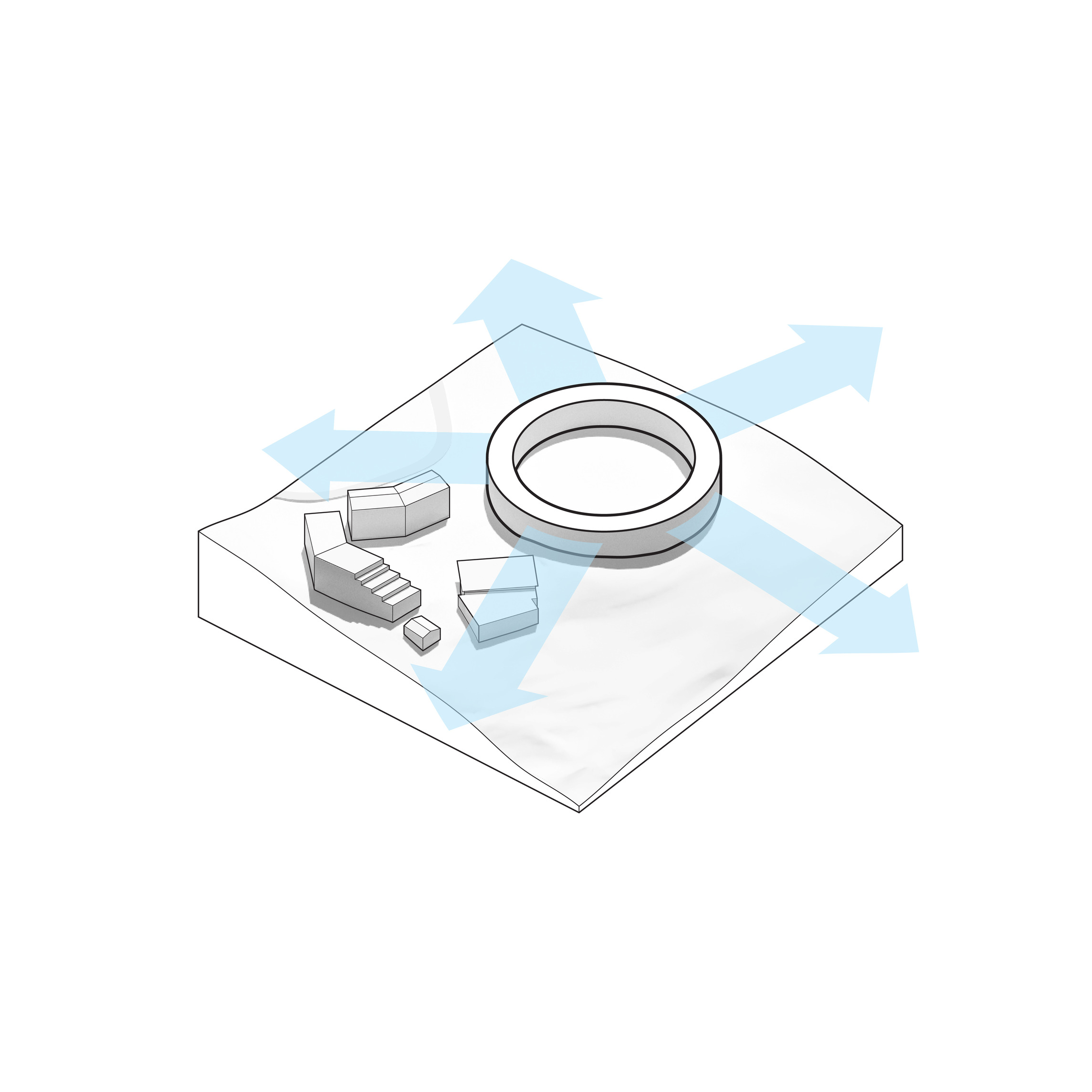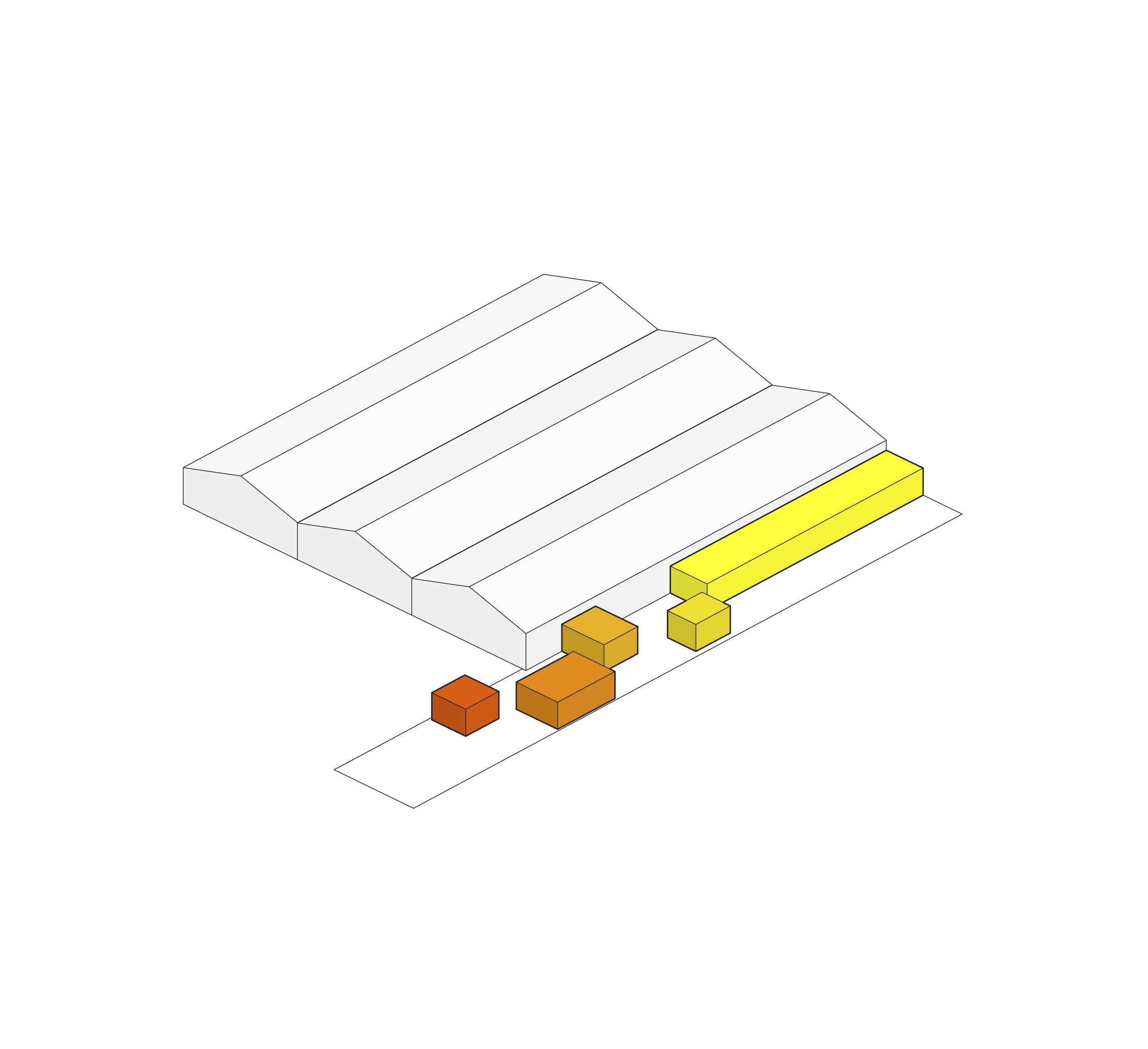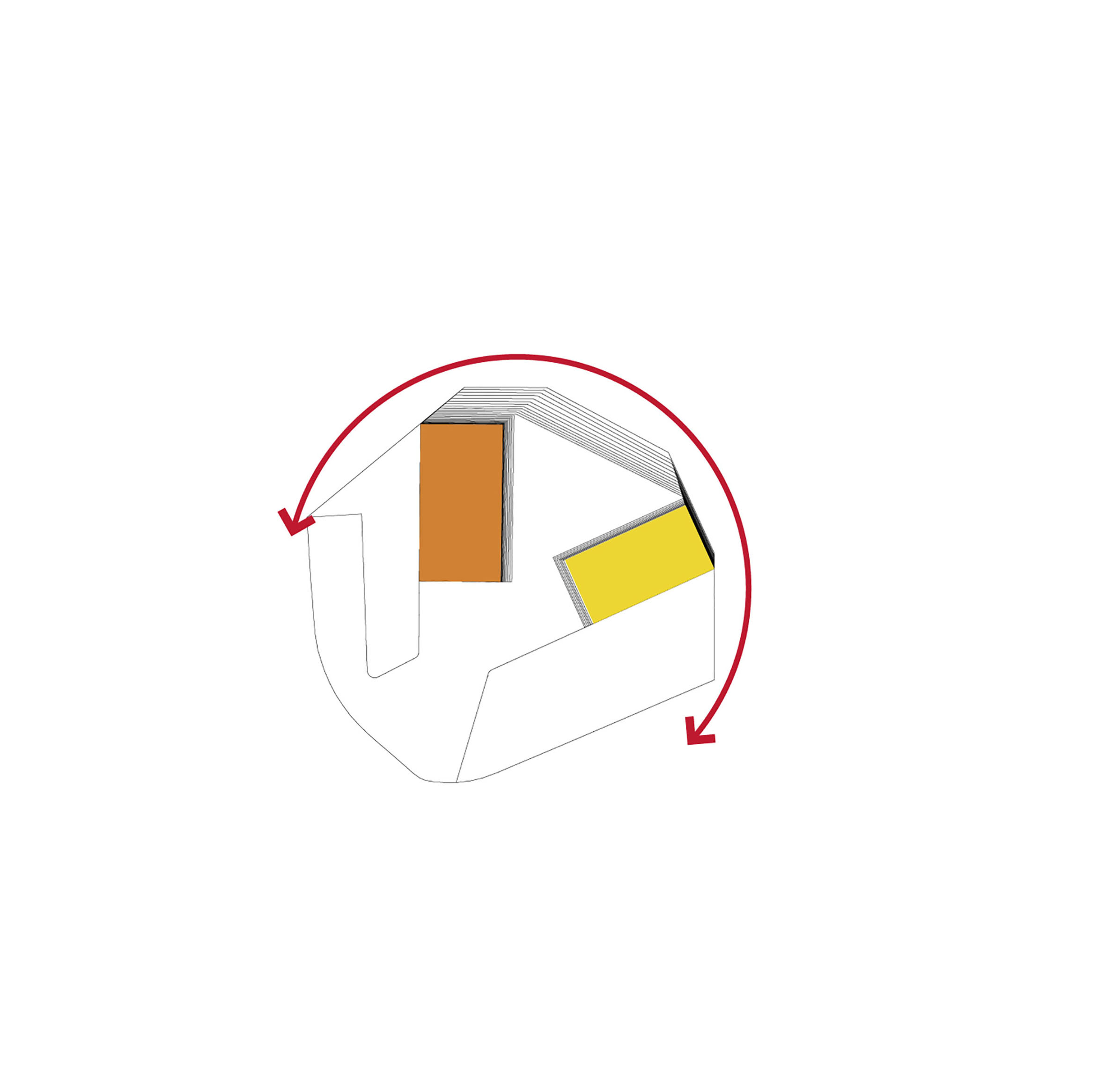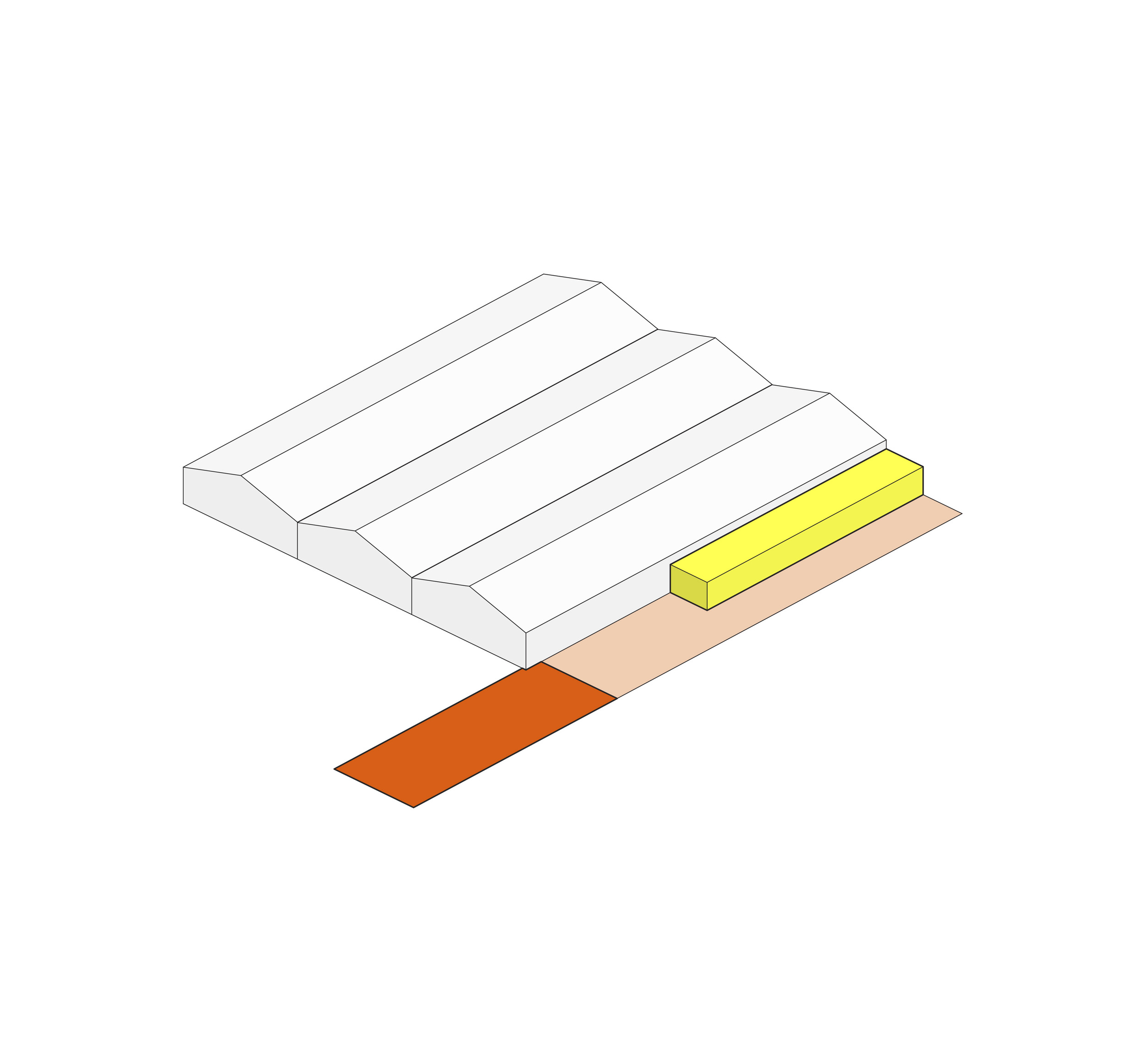 The Puzzle House is a multi-functional object consisting of a series of individual elements, that when together form a house. Separately, each piece can act as a seating element. A big variety of seating scenarios for group discussions, or auditorium style seating for events or public speaking can be be configurated. When flipped on their sides, they can also act as wind barriers or partitions to delineate spaces for various group activities.