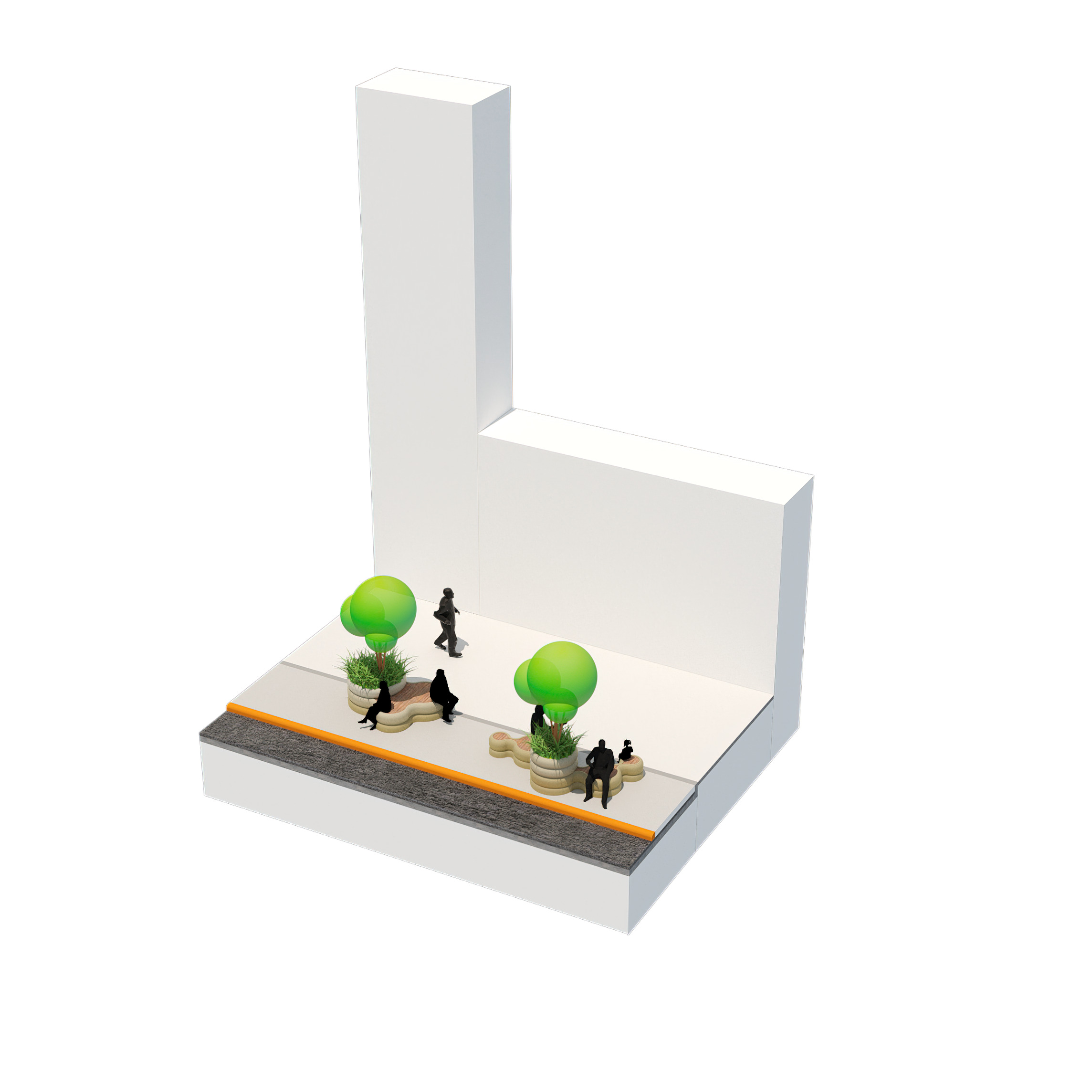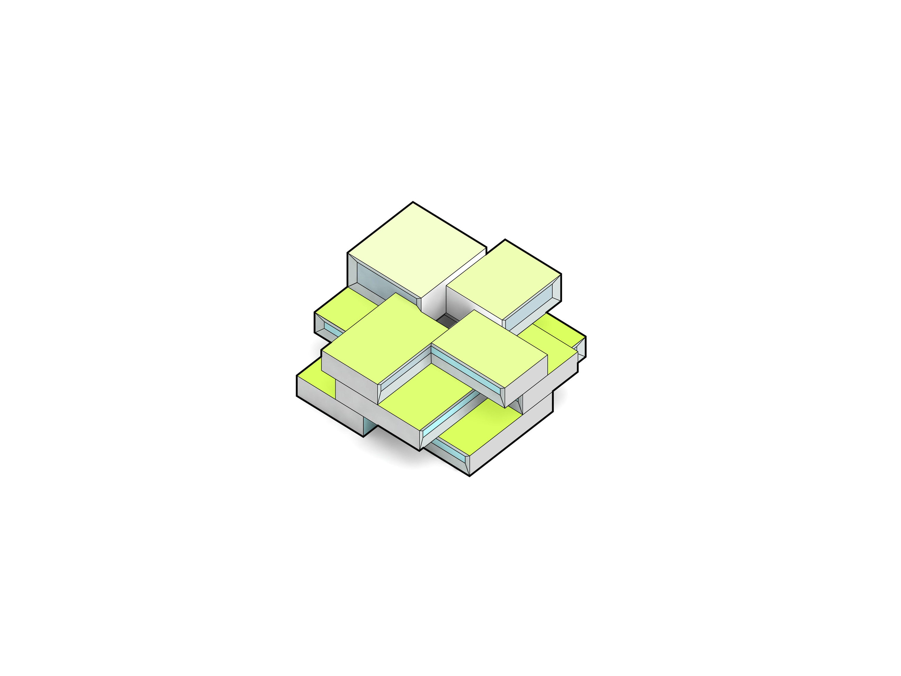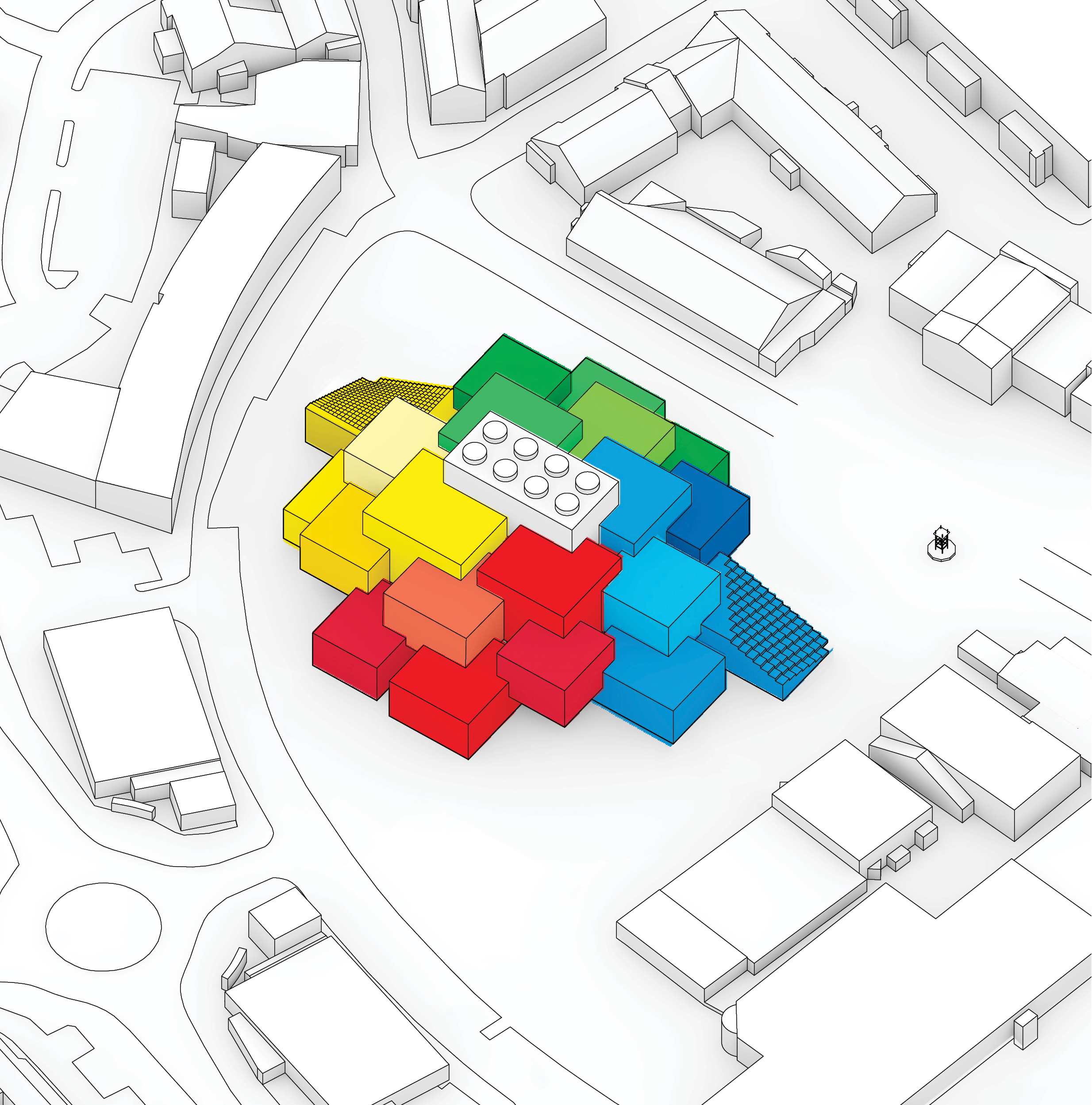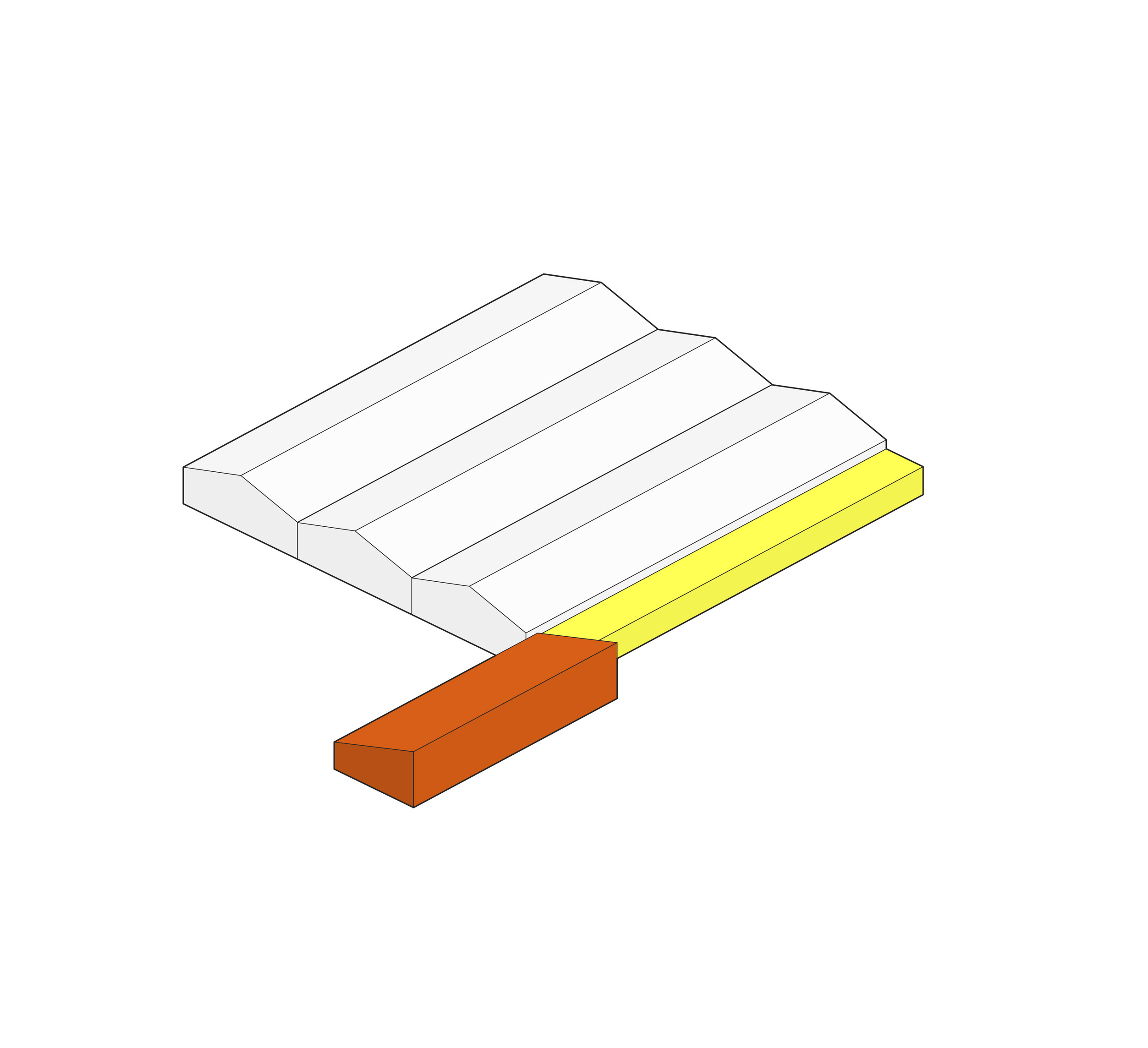 The Puzzle House is a multi-functional object consisting of a series of individual elements, that when together form a house. Separately, each piece can act as a seating element. A big variety of seating scenarios for group discussions, or auditorium style seating for events or public speaking can be be configurated. When flipped on their sides, they can also act as wind barriers or partitions to delineate spaces for various group activities.