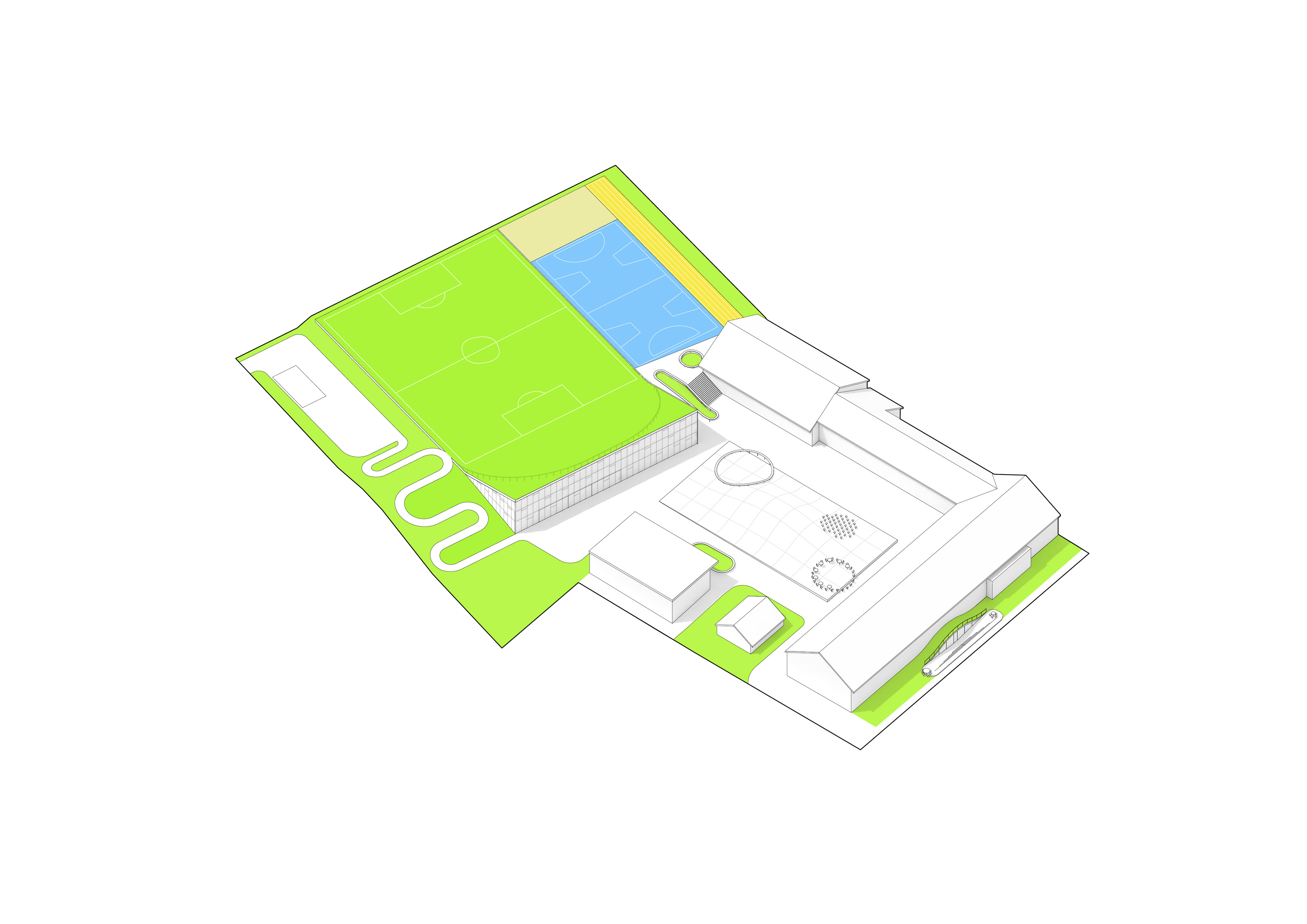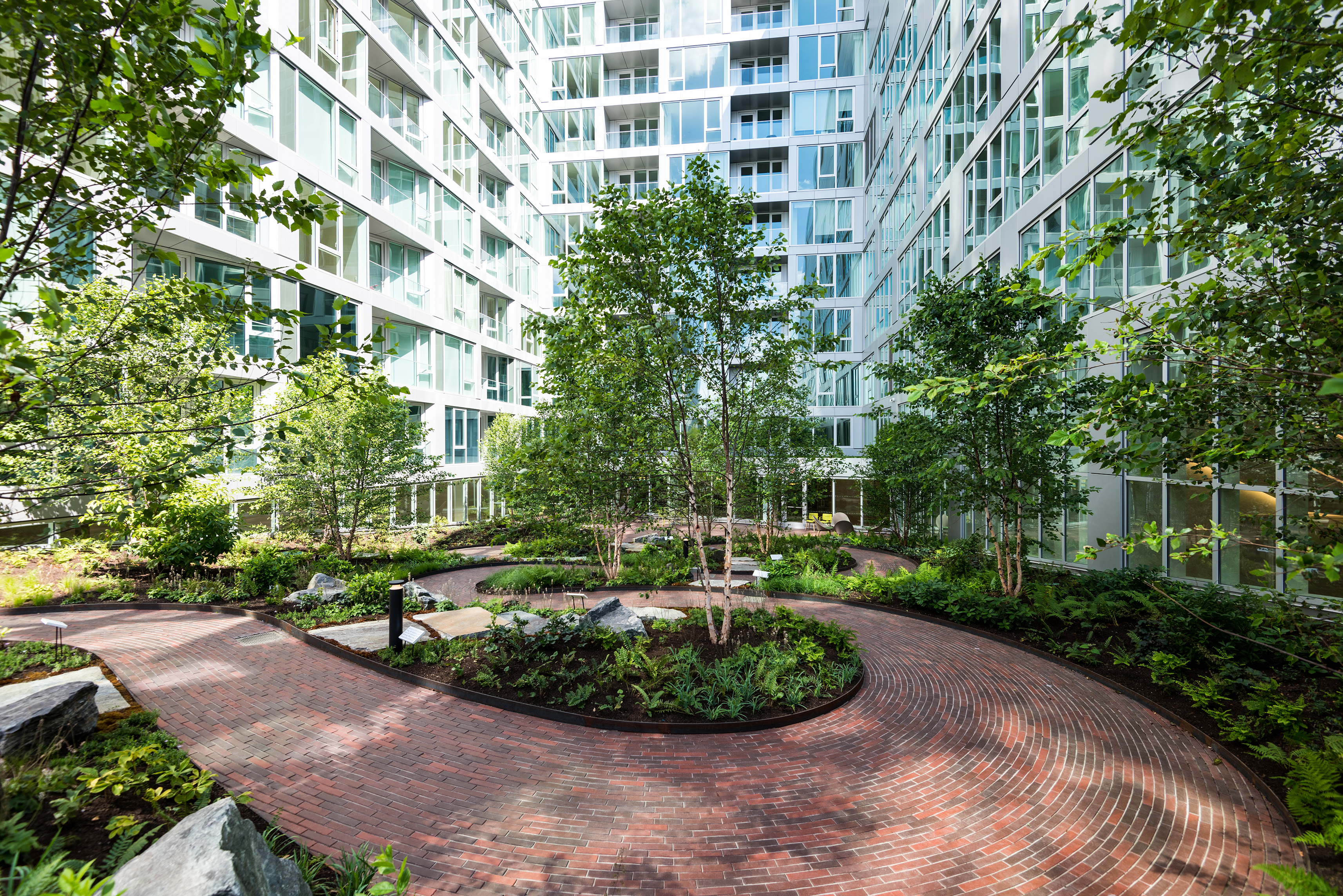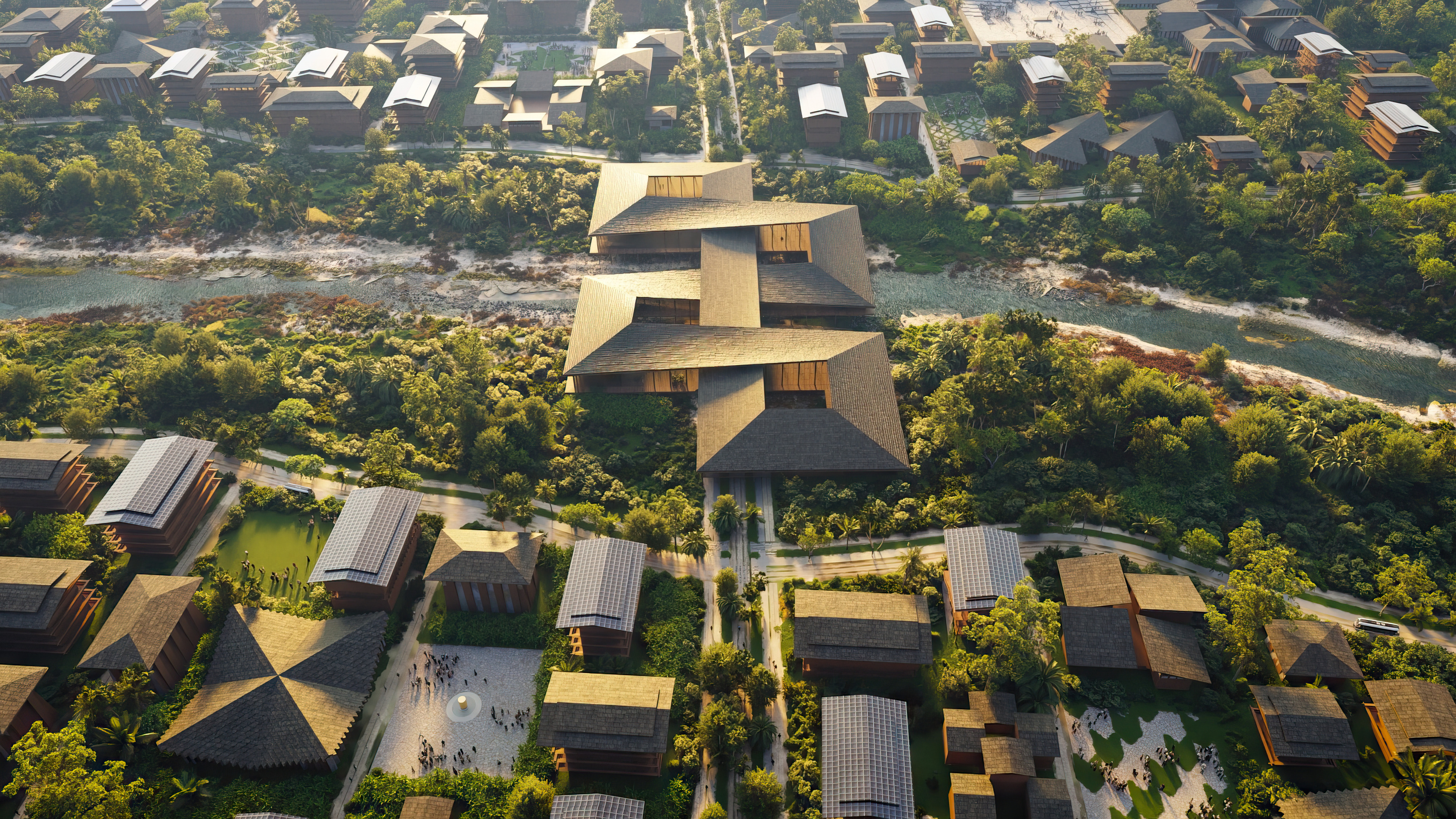 Enhancing the ecological, soil, and hydrological systems to perform more naturally, the masterplan embraces continuity in the habitat and natural land for flora and fauna to dovetail with the built site. Further, the landscaping integrates a natural water system to mitigate flooding on site.