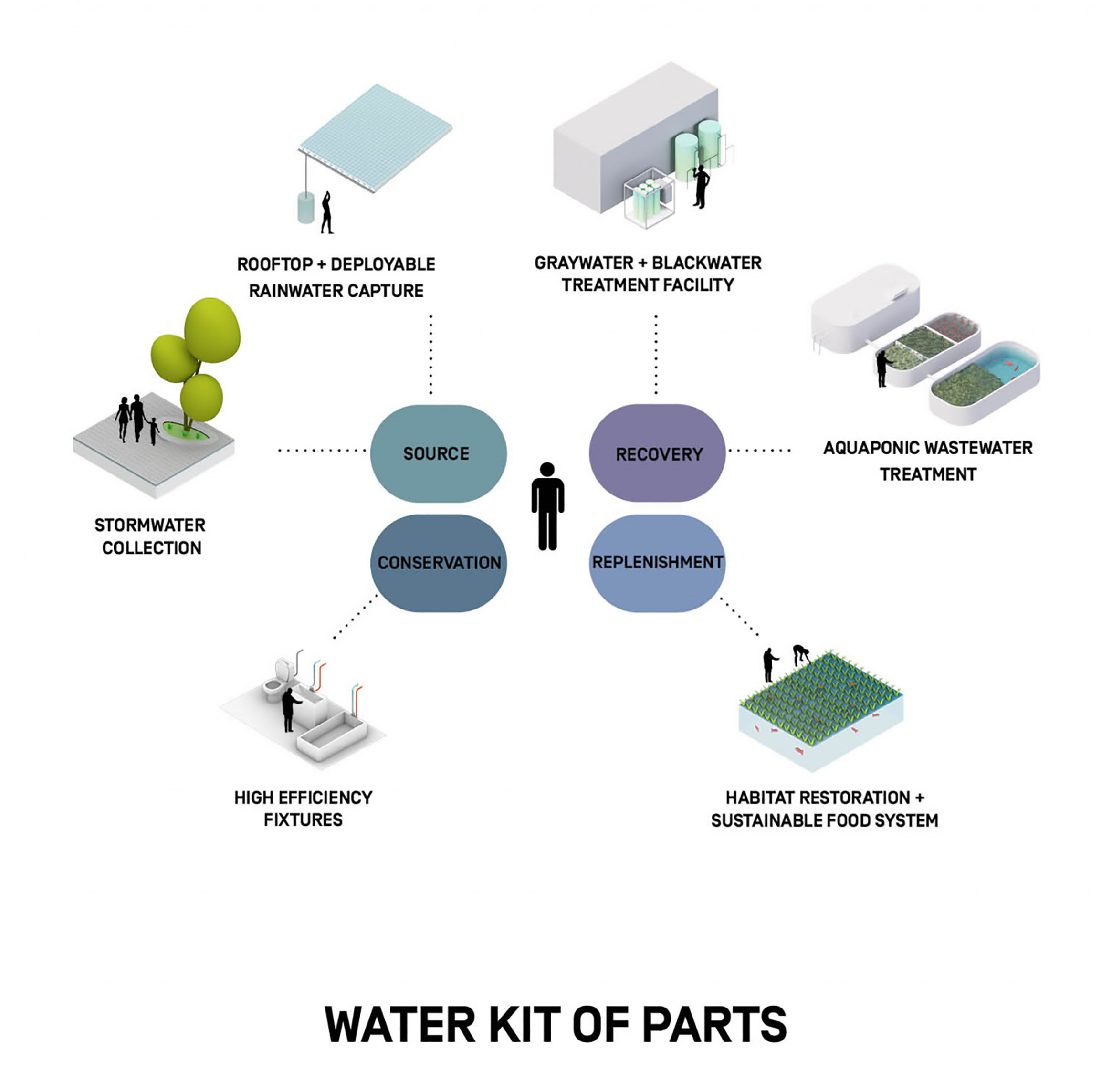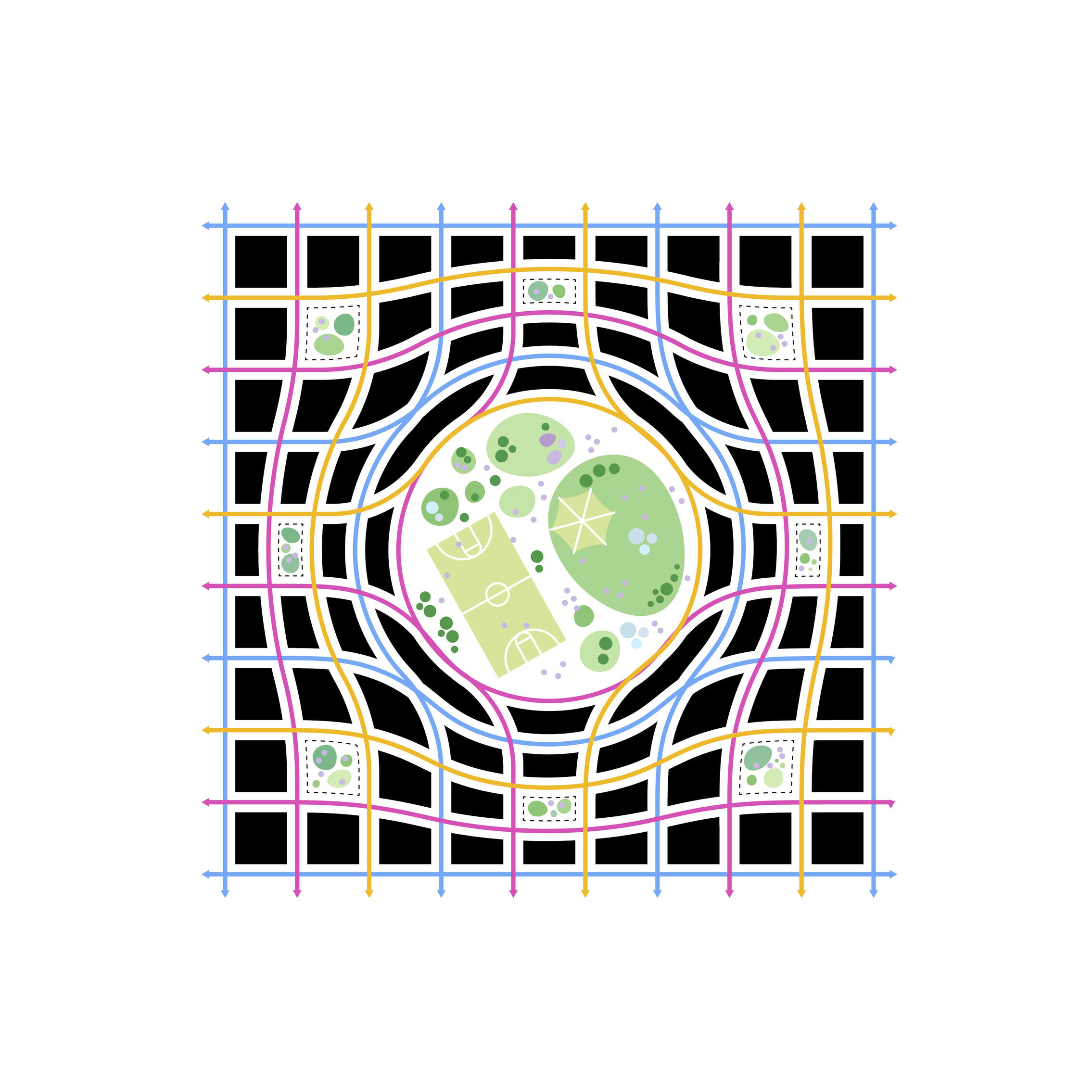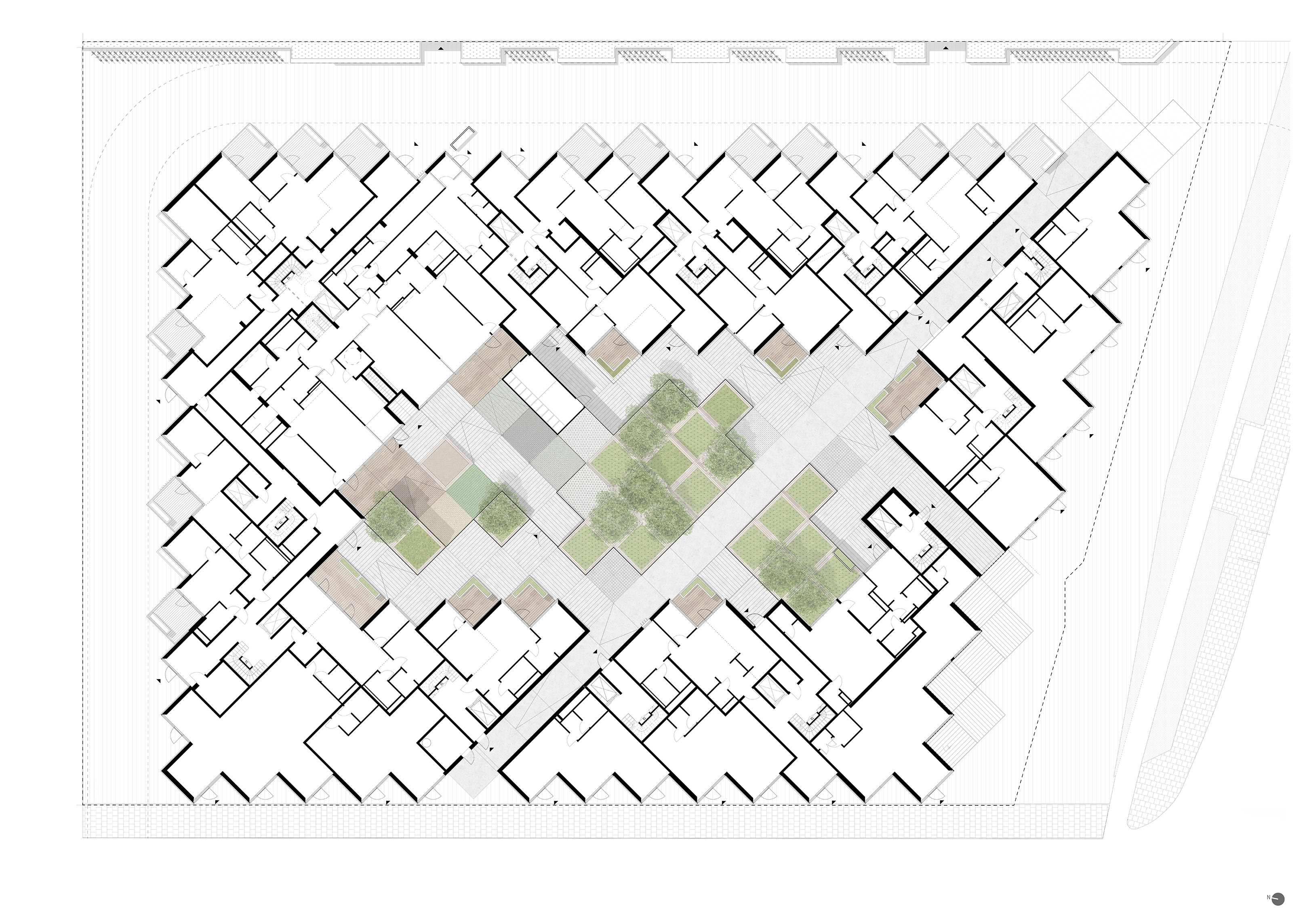 Enhancing the ecological, soil, and hydrological systems to perform more naturally, the masterplan embraces continuity in the habitat and natural land for flora and fauna to dovetail with the built site. Further, the landscaping integrates a natural water system to mitigate flooding on site.