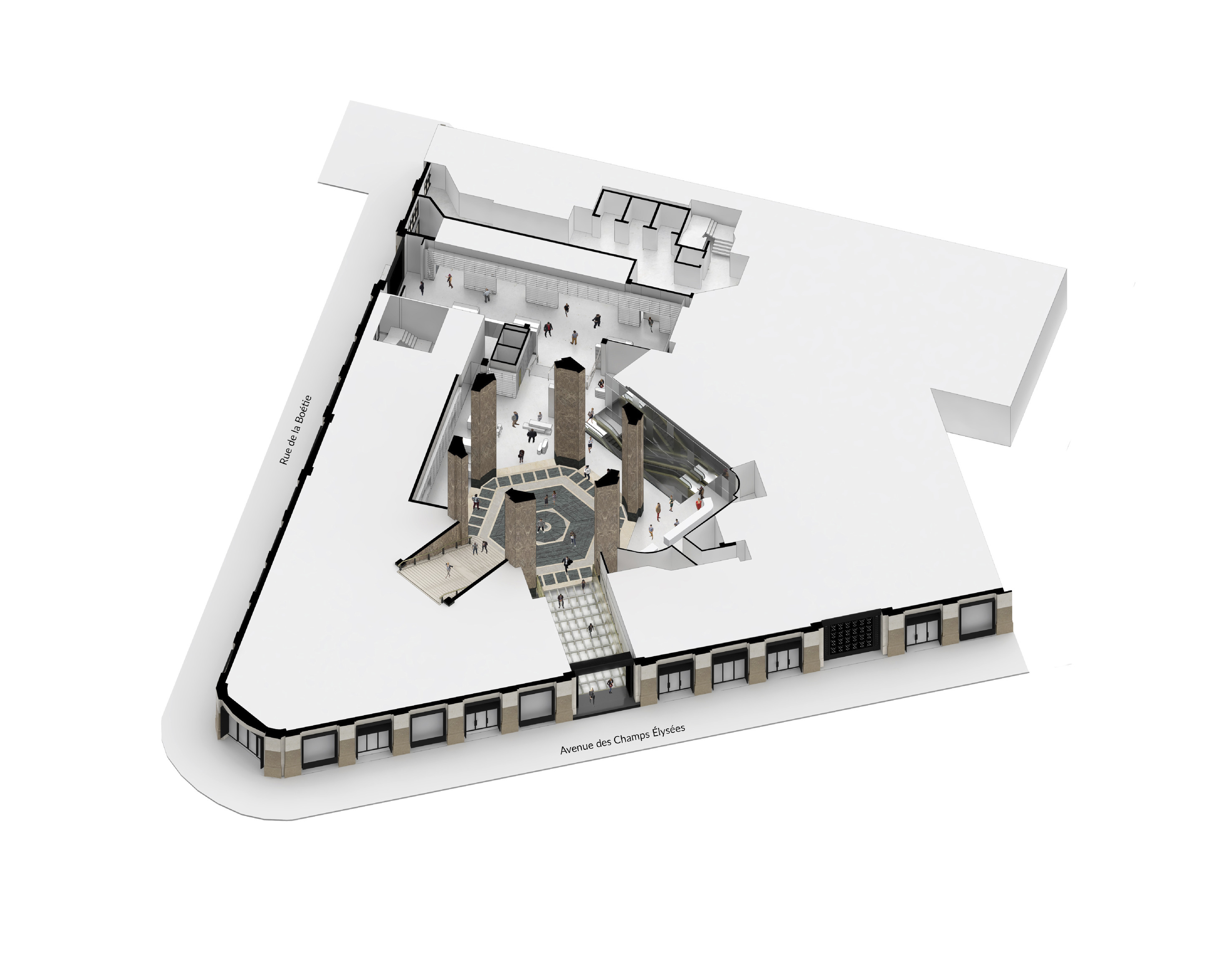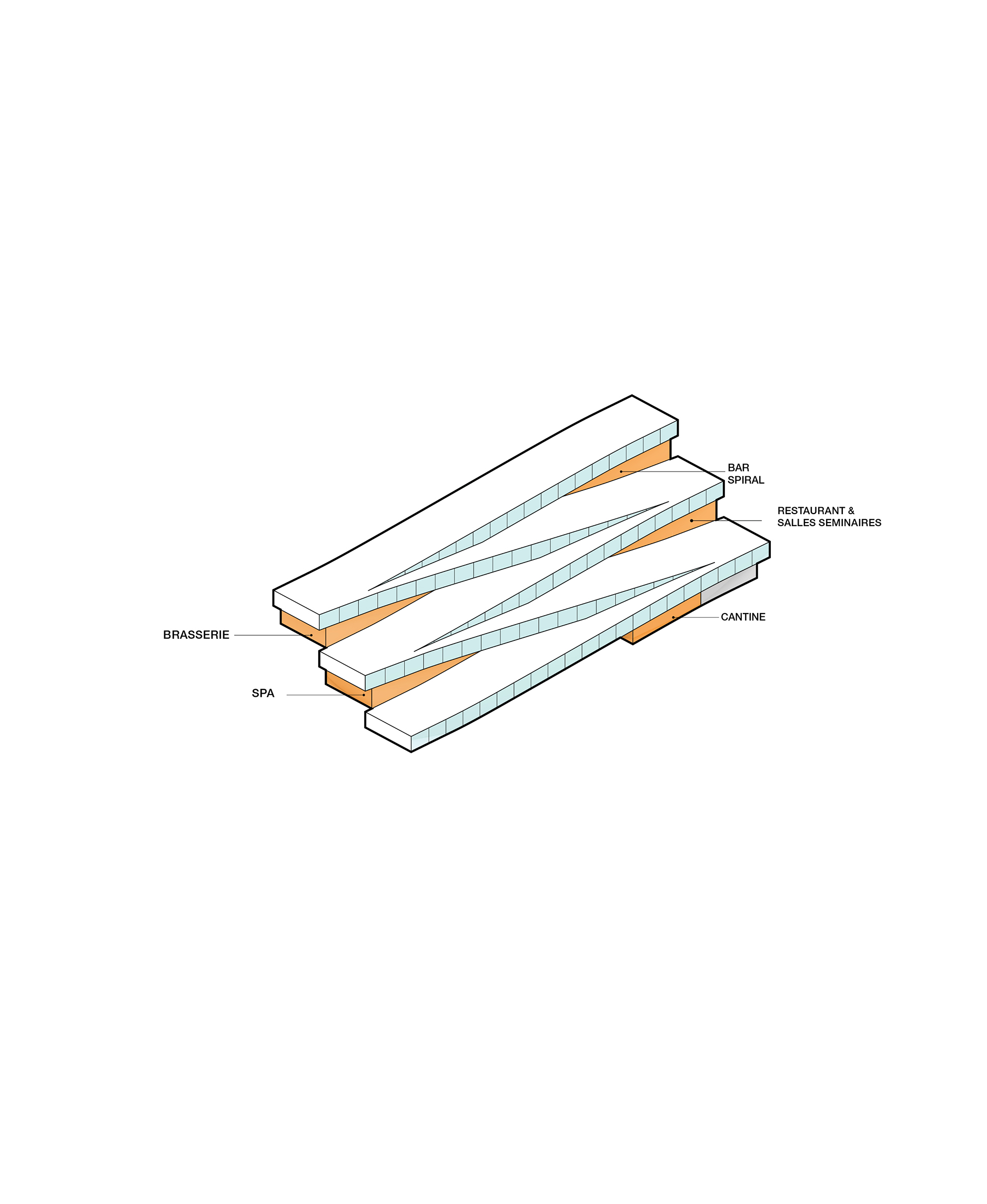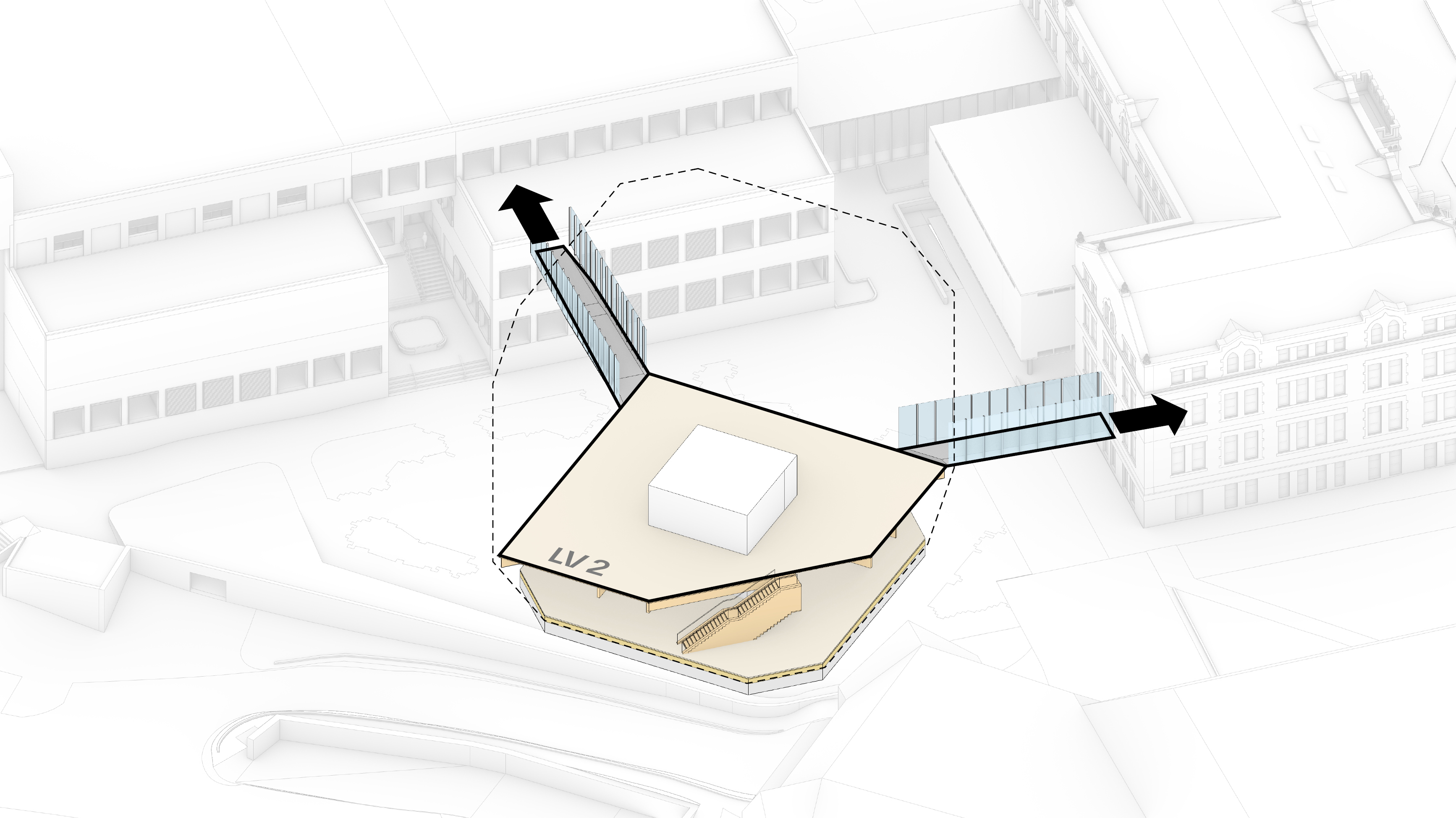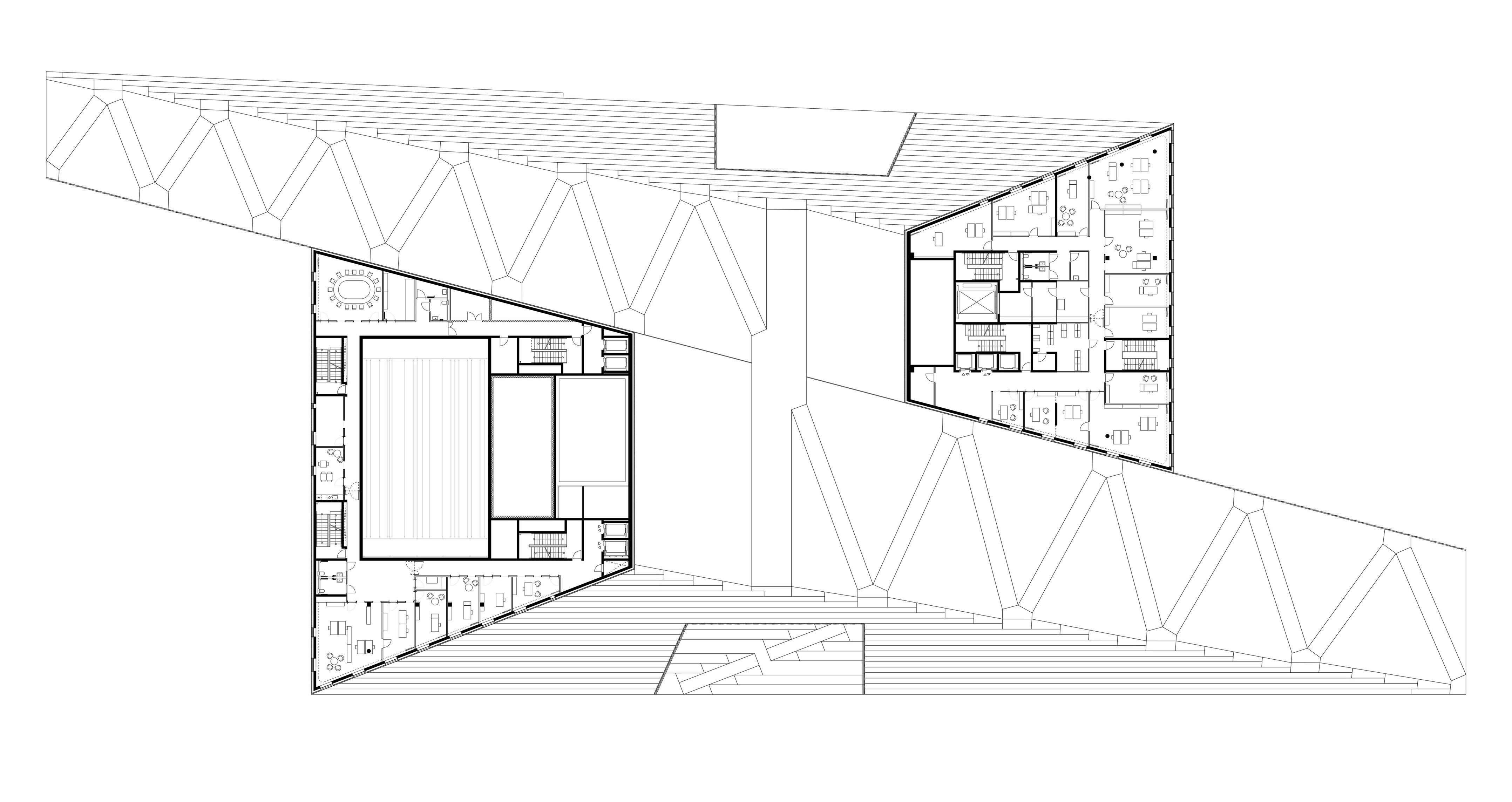 Whether arriving by foot, taxi, or bus, visitors can enter the opera from several directions – through the park, from the pier, or directly from the ‘opera street’ by Baakenhafenbrücke. Stone pavements from the park continue into the main foyer, which acts as an urban living room, where two central timber staircases lead visitors through the building. All main floors have direct access to outdoor terraces, which can transform into arrival points, event spaces, and gathering places for performers, guests, and visitors alike.