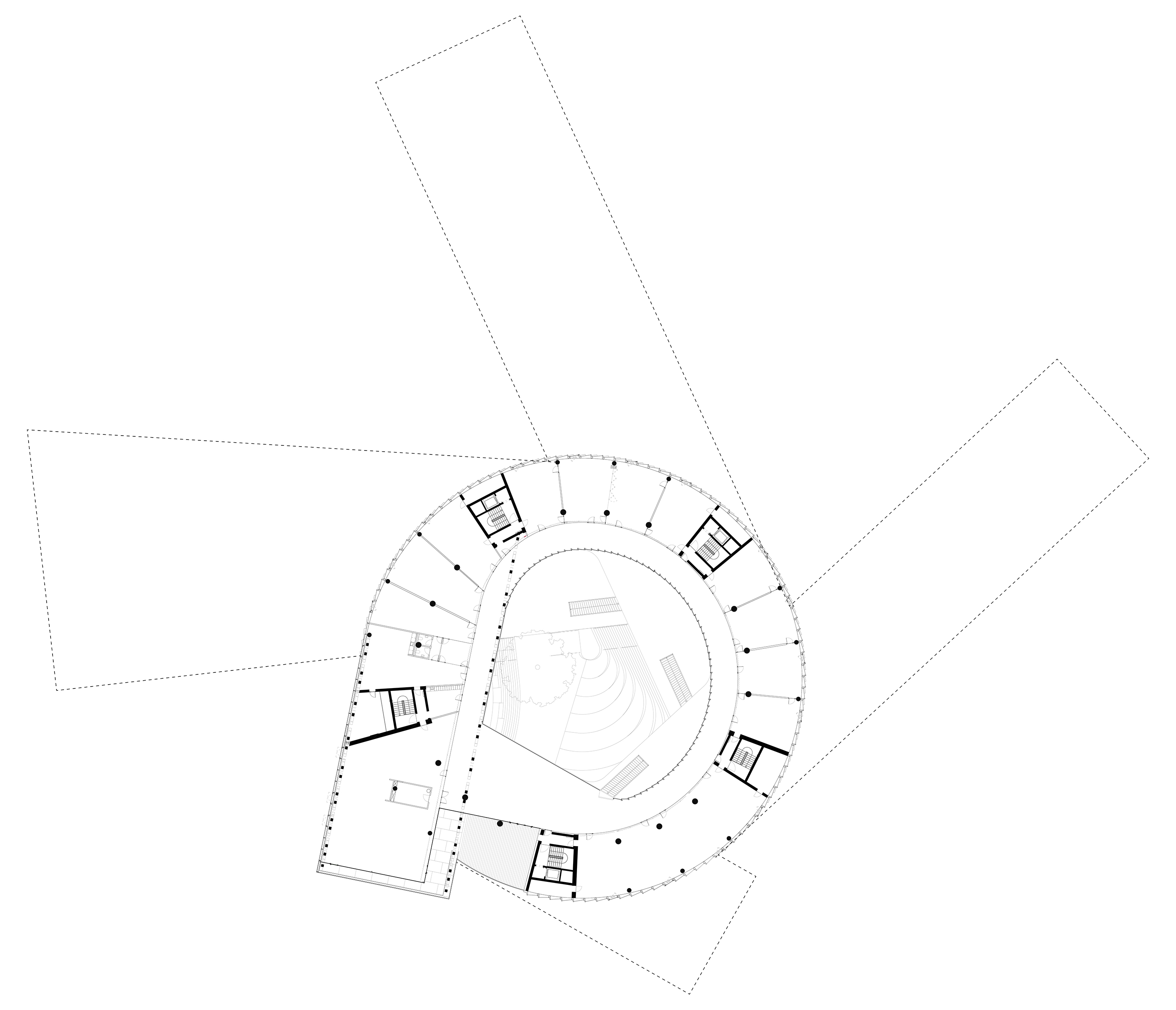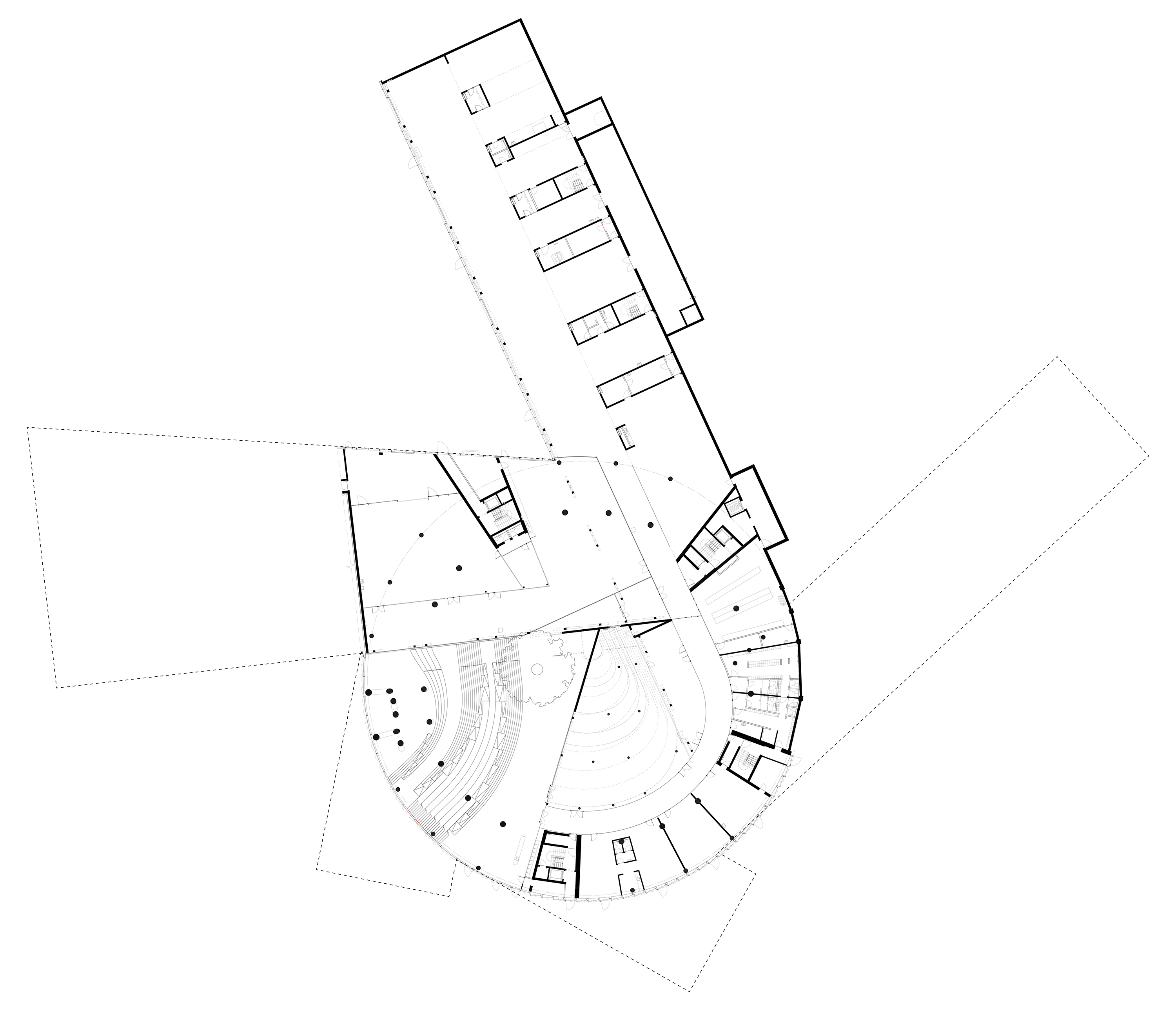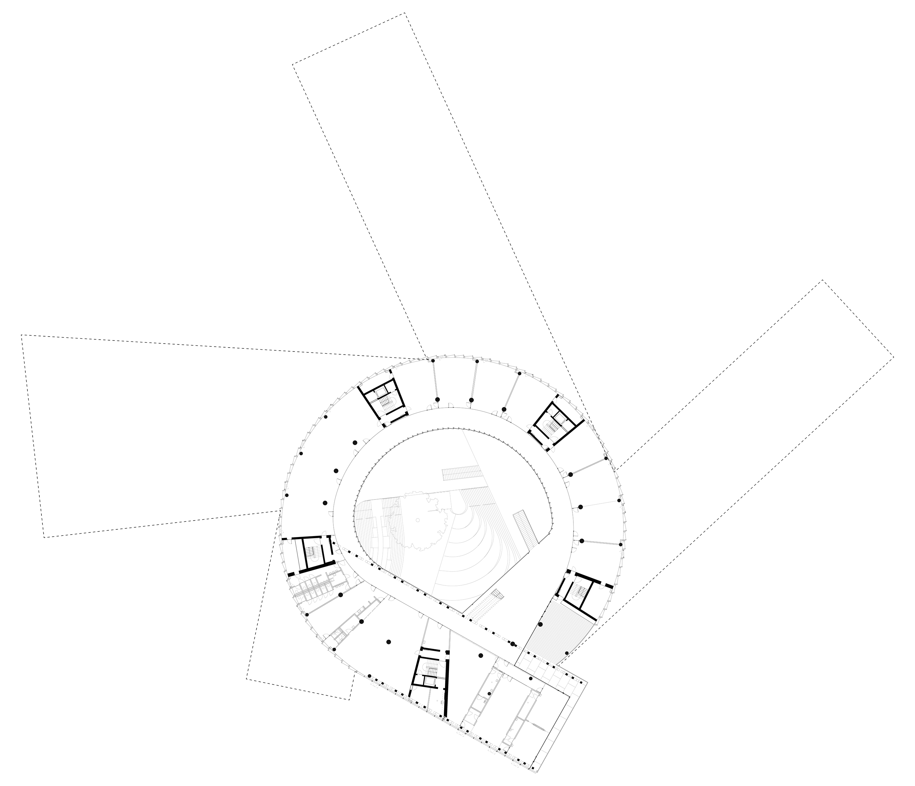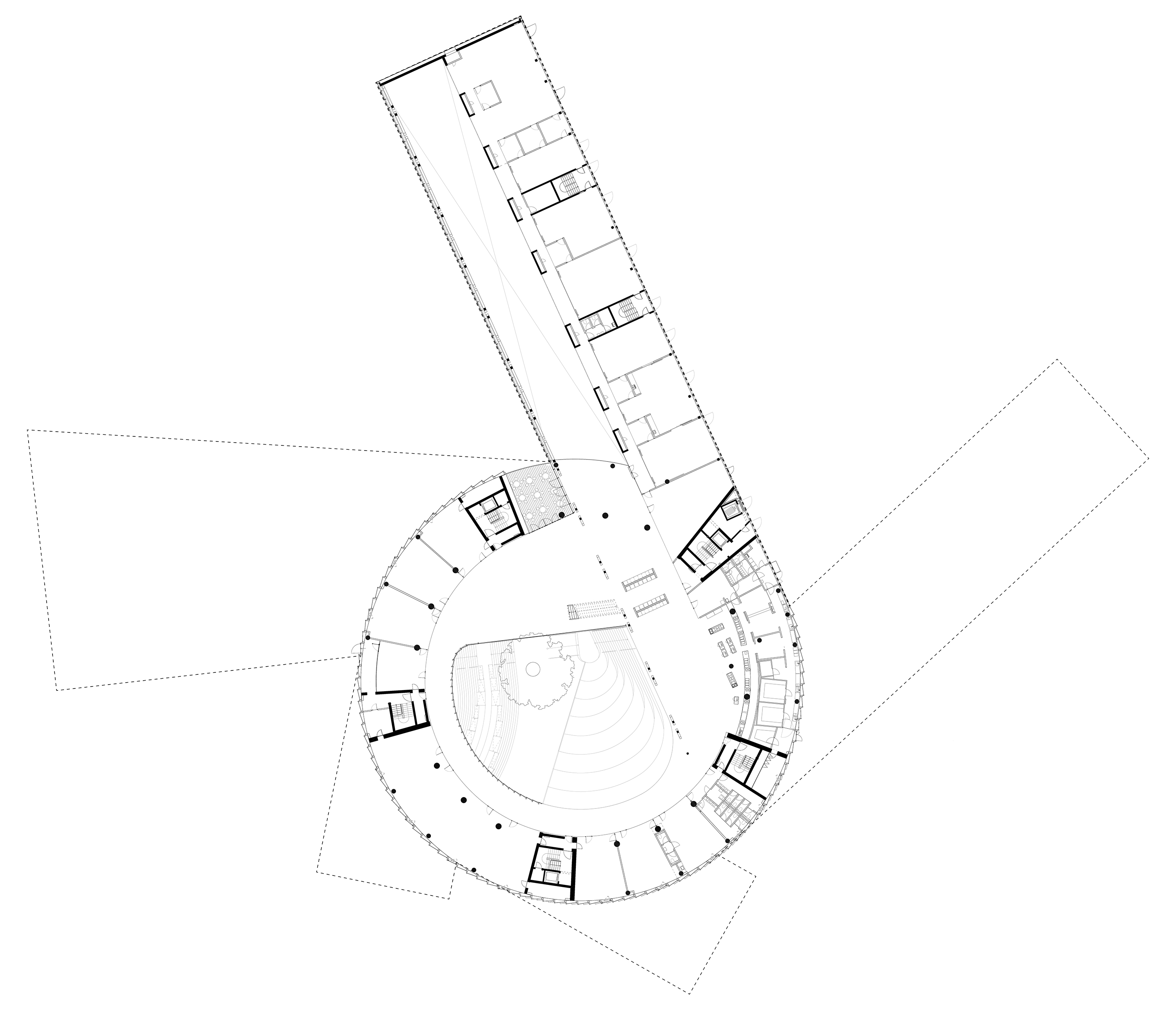 “The main hall is the heart of the project - a space with state-of-the-art acoustics and perfect sightlines to the stage. Immersive concentric wooden rings shape the hall and its balconies, dissolve the boundaries between spectators and artists, between reality and fiction.”