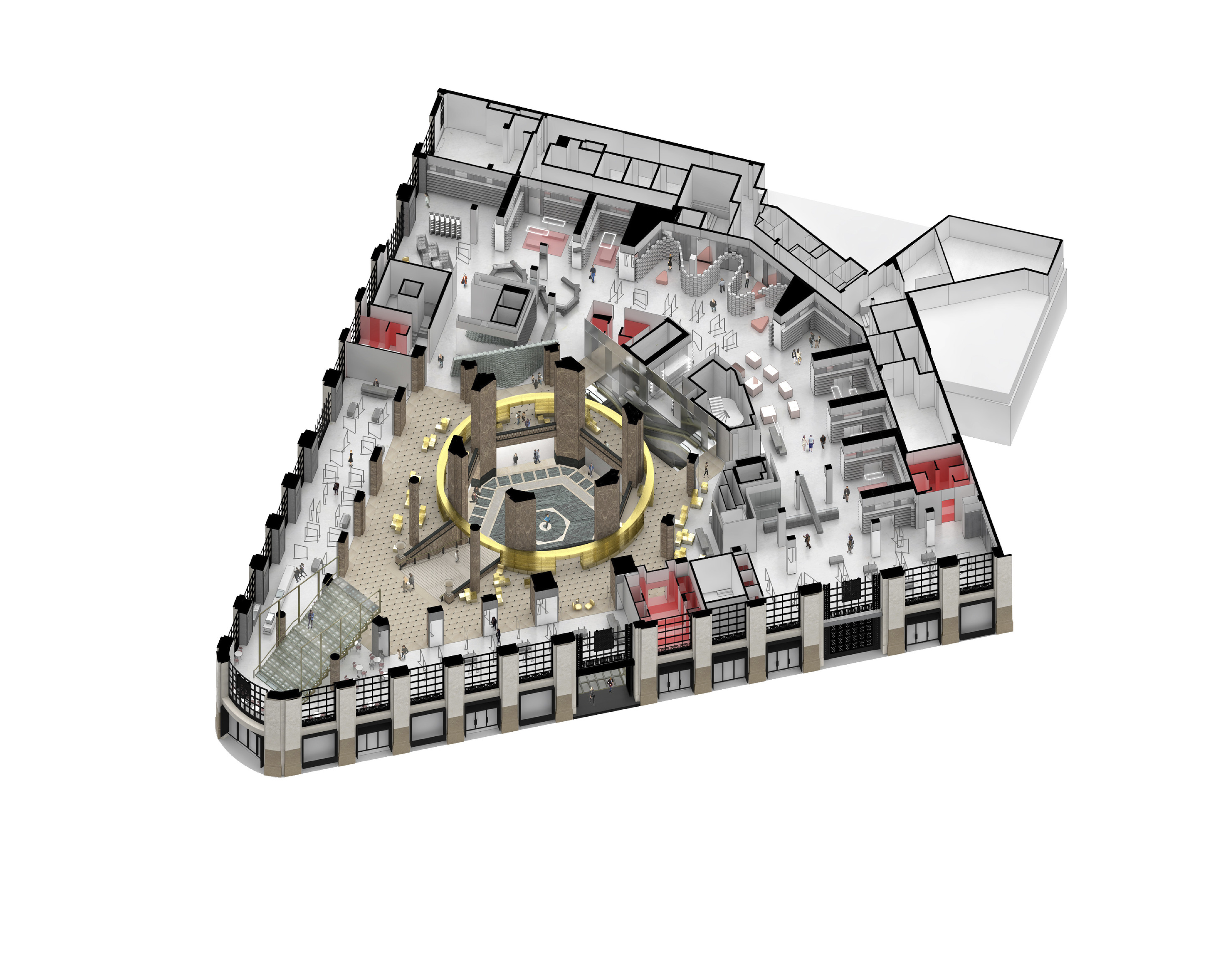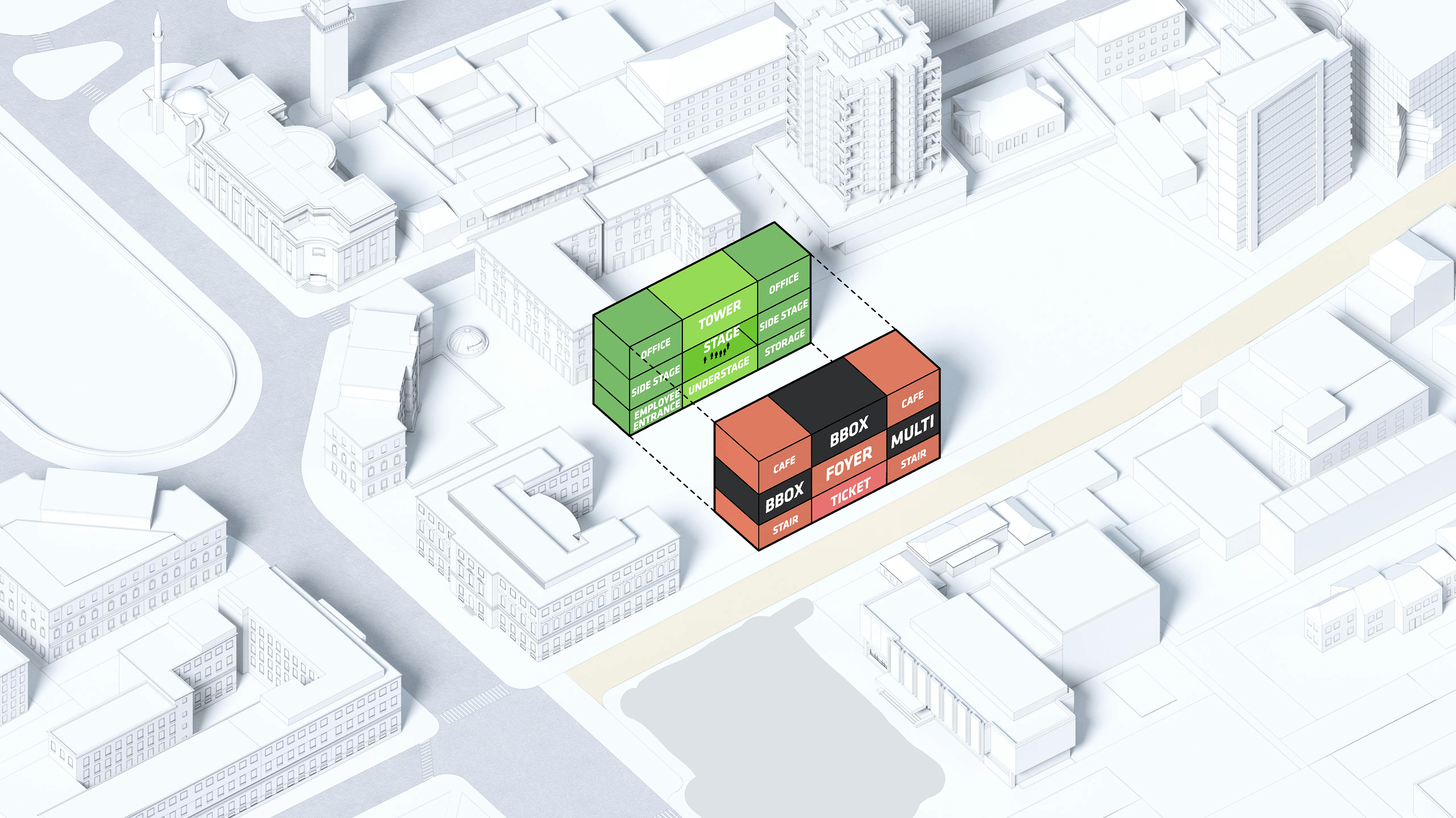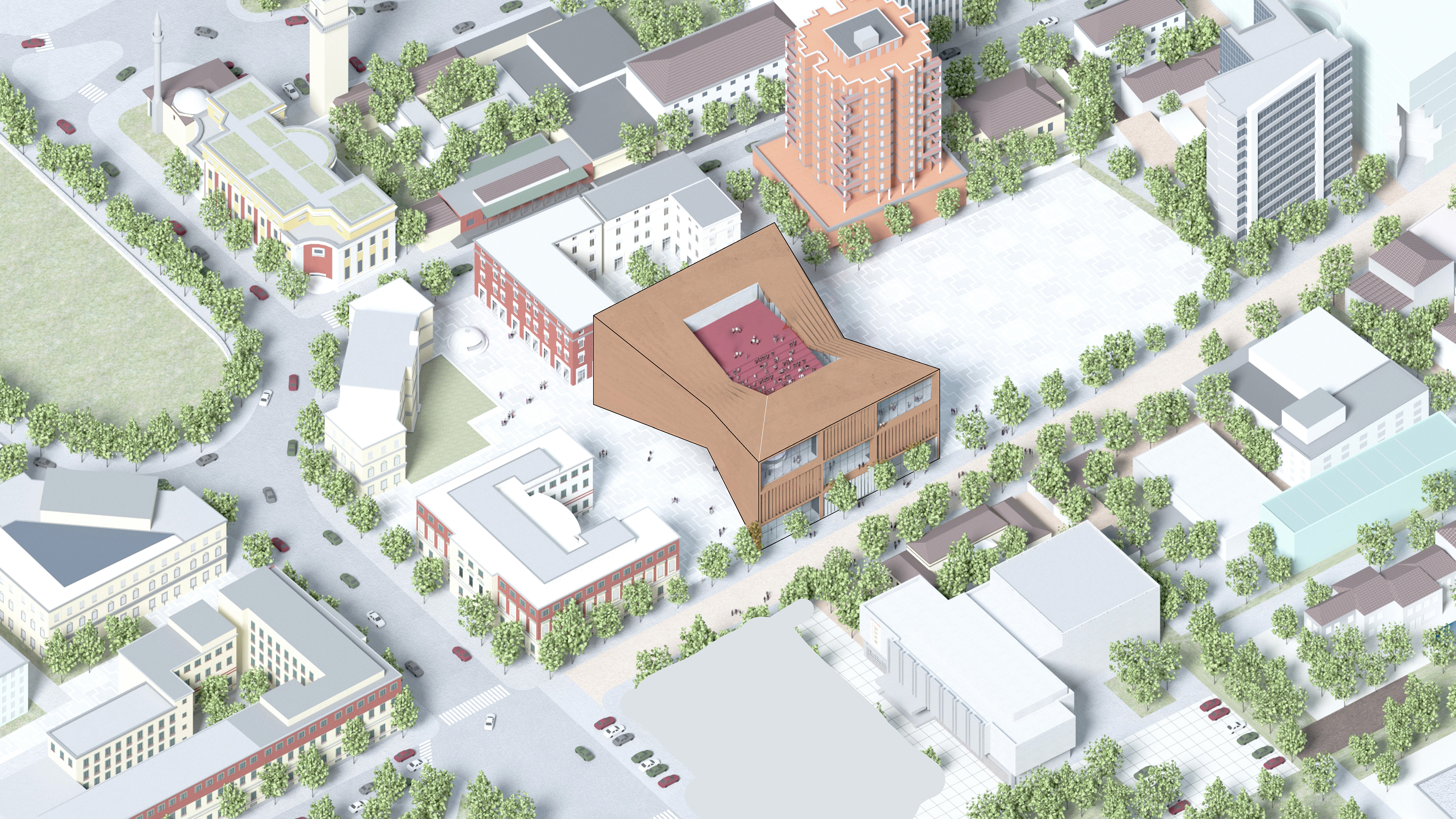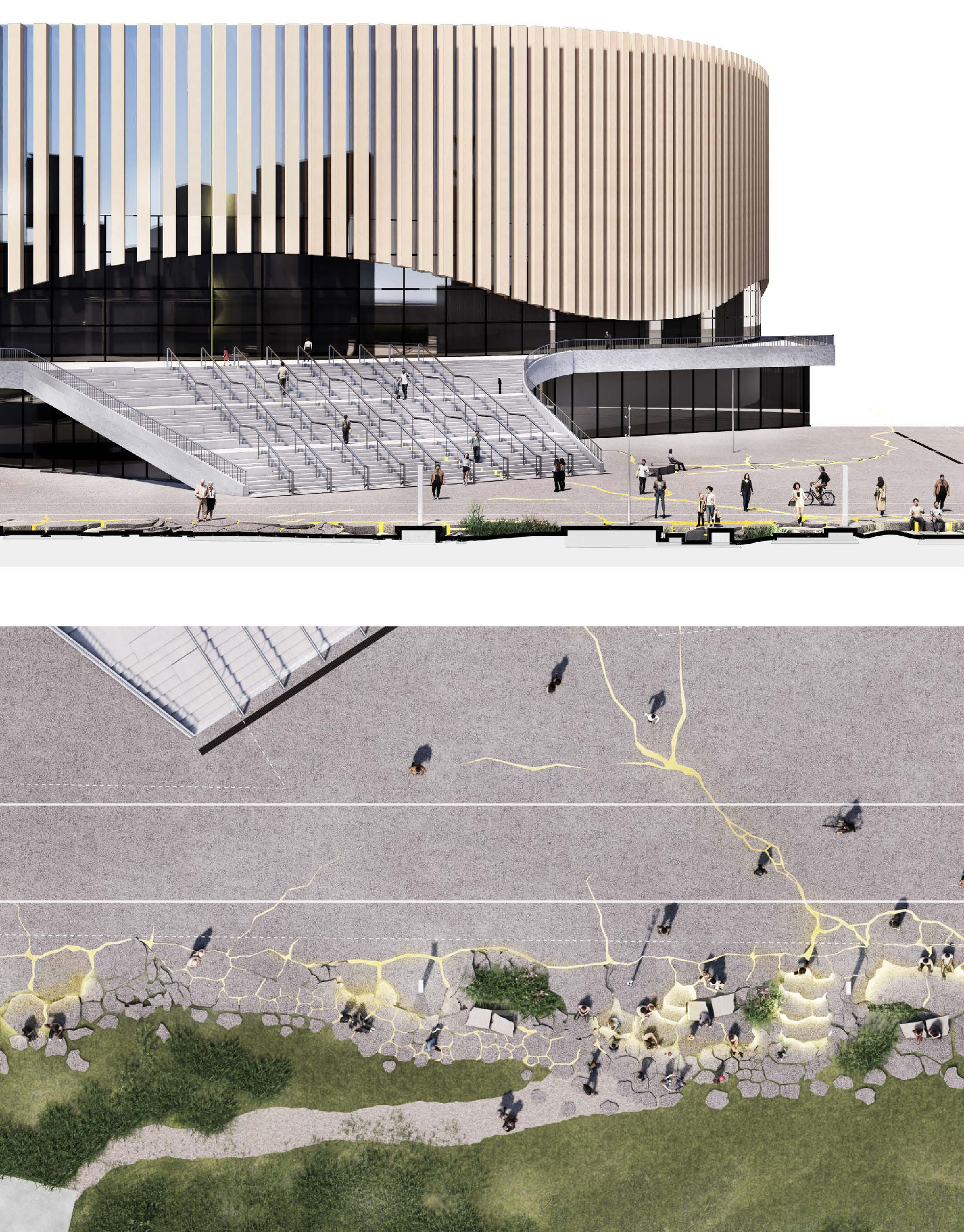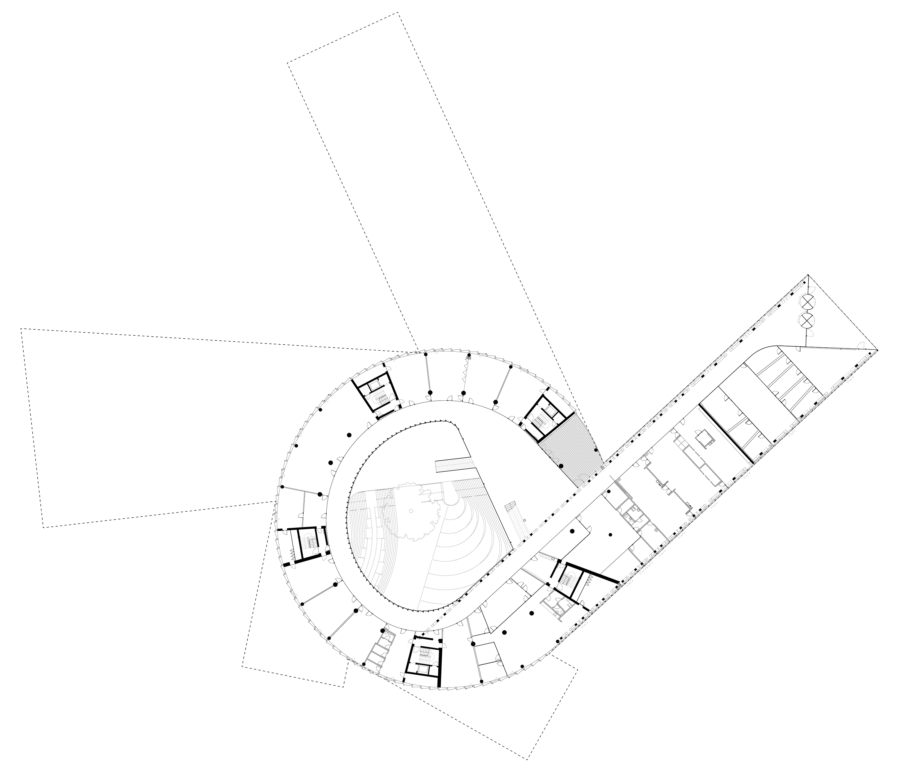 “The main hall is the heart of the project - a space with state-of-the-art acoustics and perfect sightlines to the stage. Immersive concentric wooden rings shape the hall and its balconies, dissolve the boundaries between spectators and artists, between reality and fiction.”