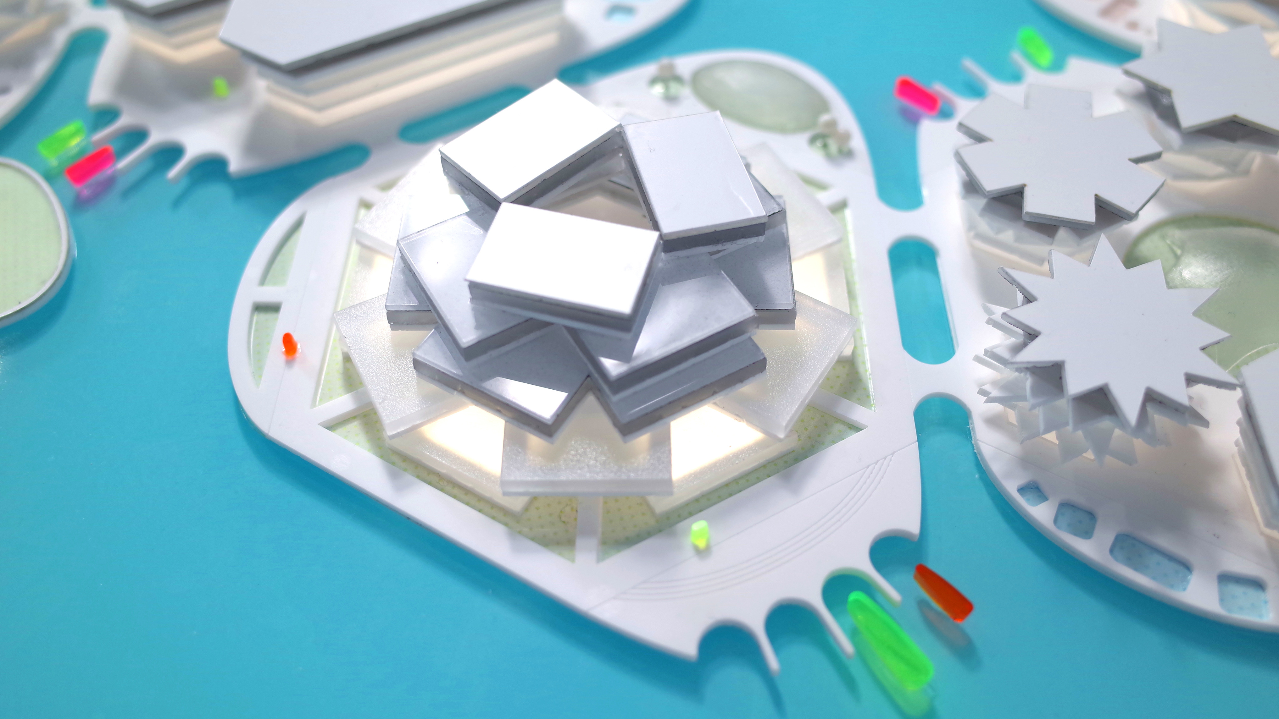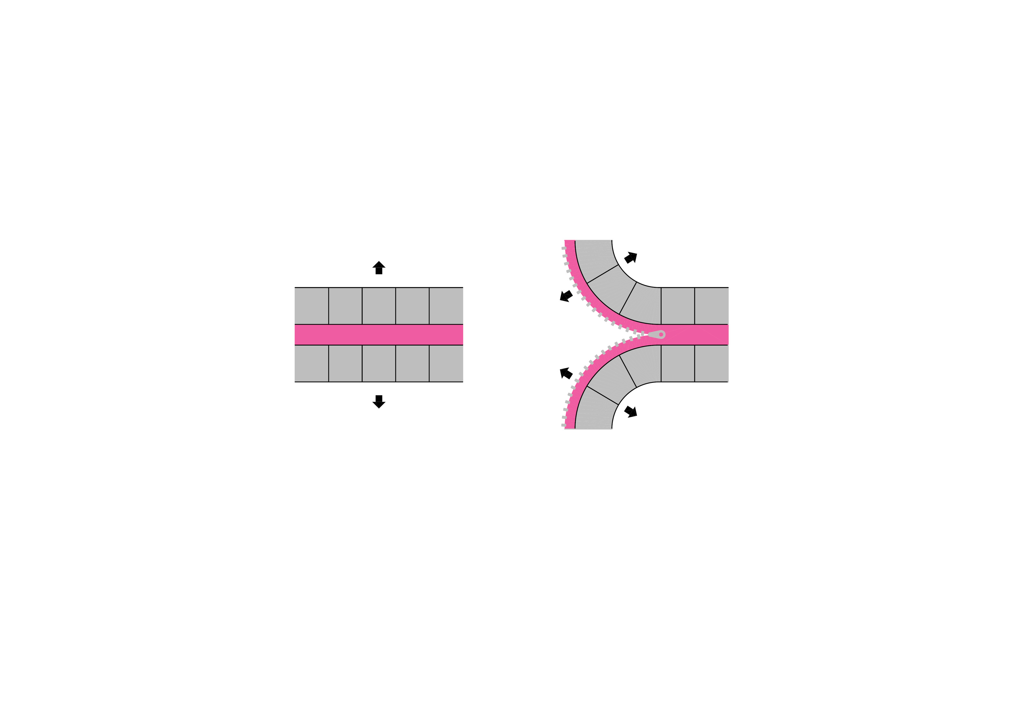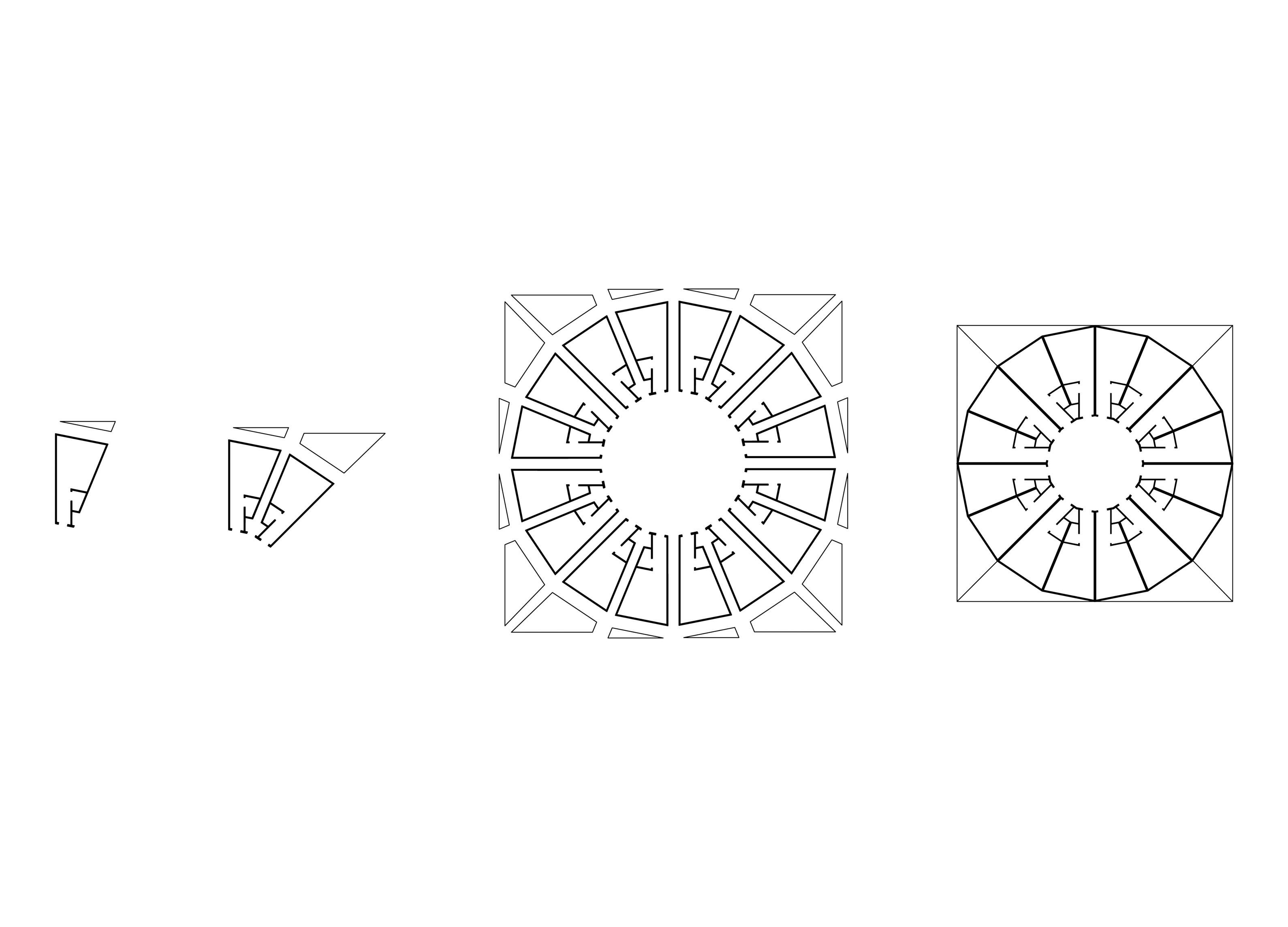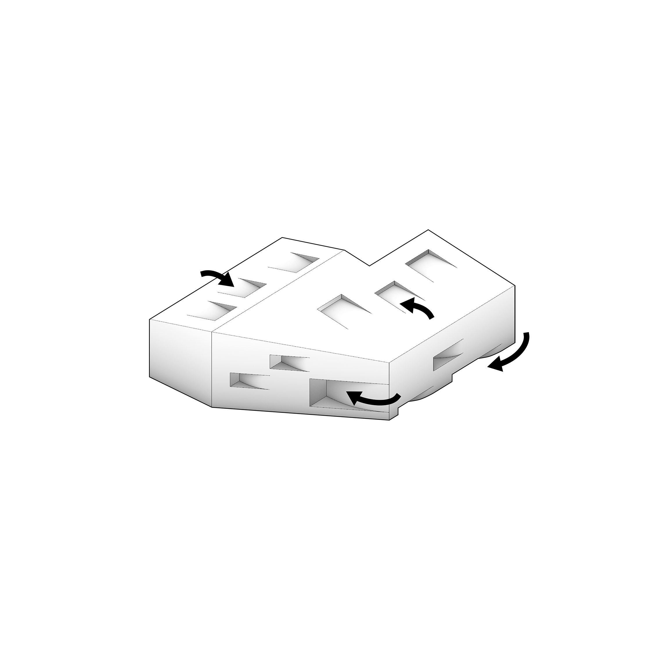 Either straight or curved base modules made with precise geometric proportions allow for the combination of elements to build countless light structures, both essential and complex. It is an elementary principle generating an open system.