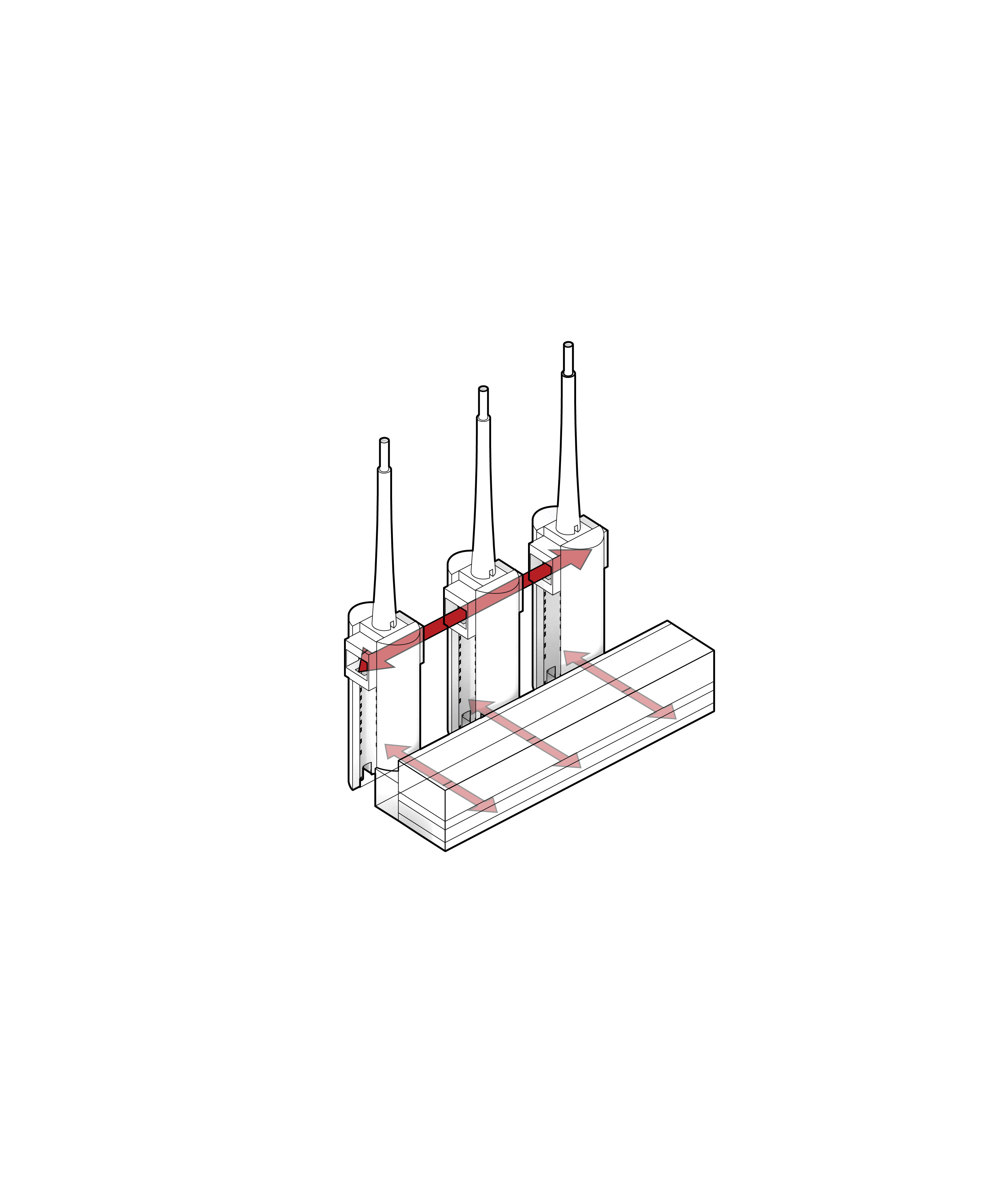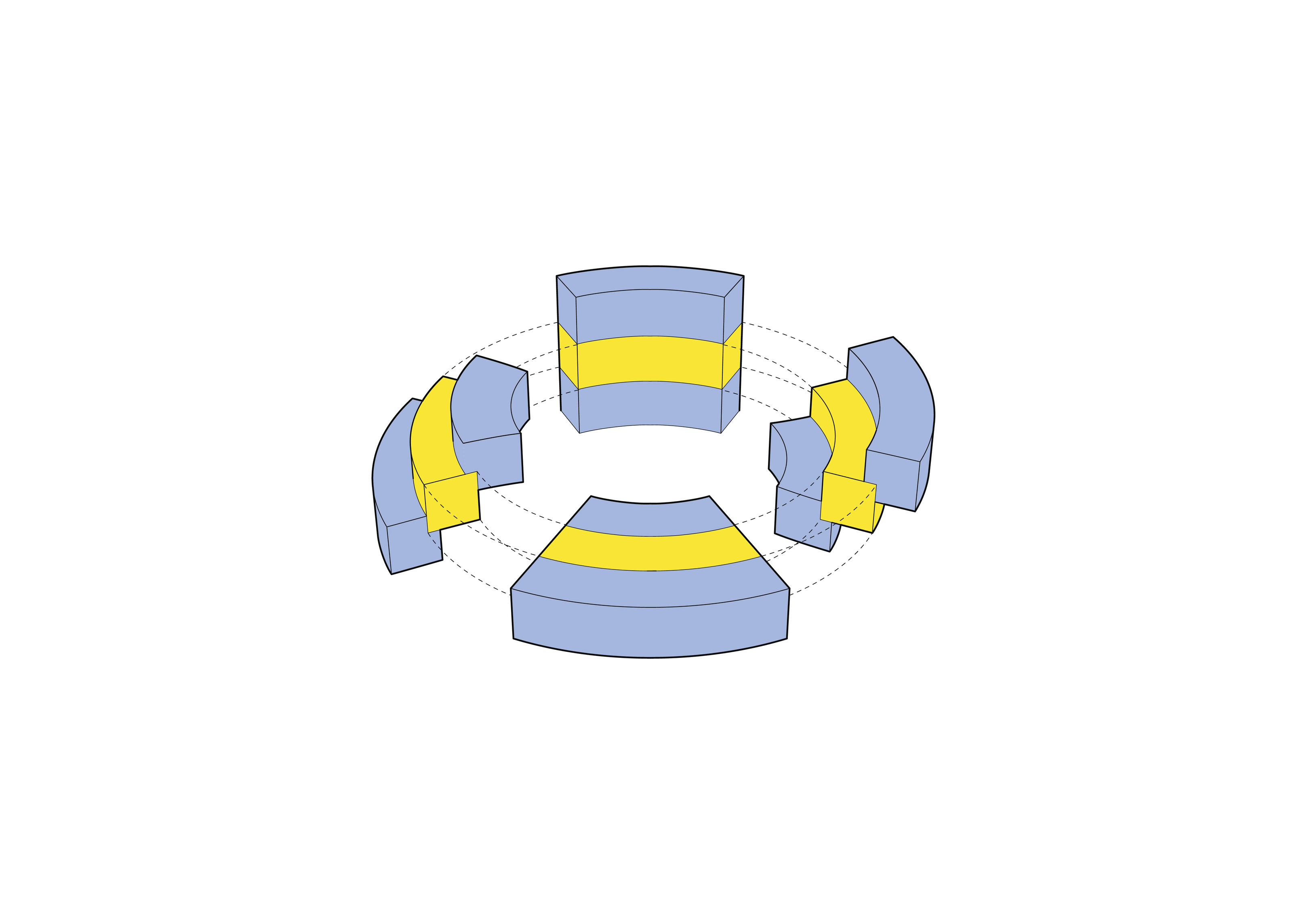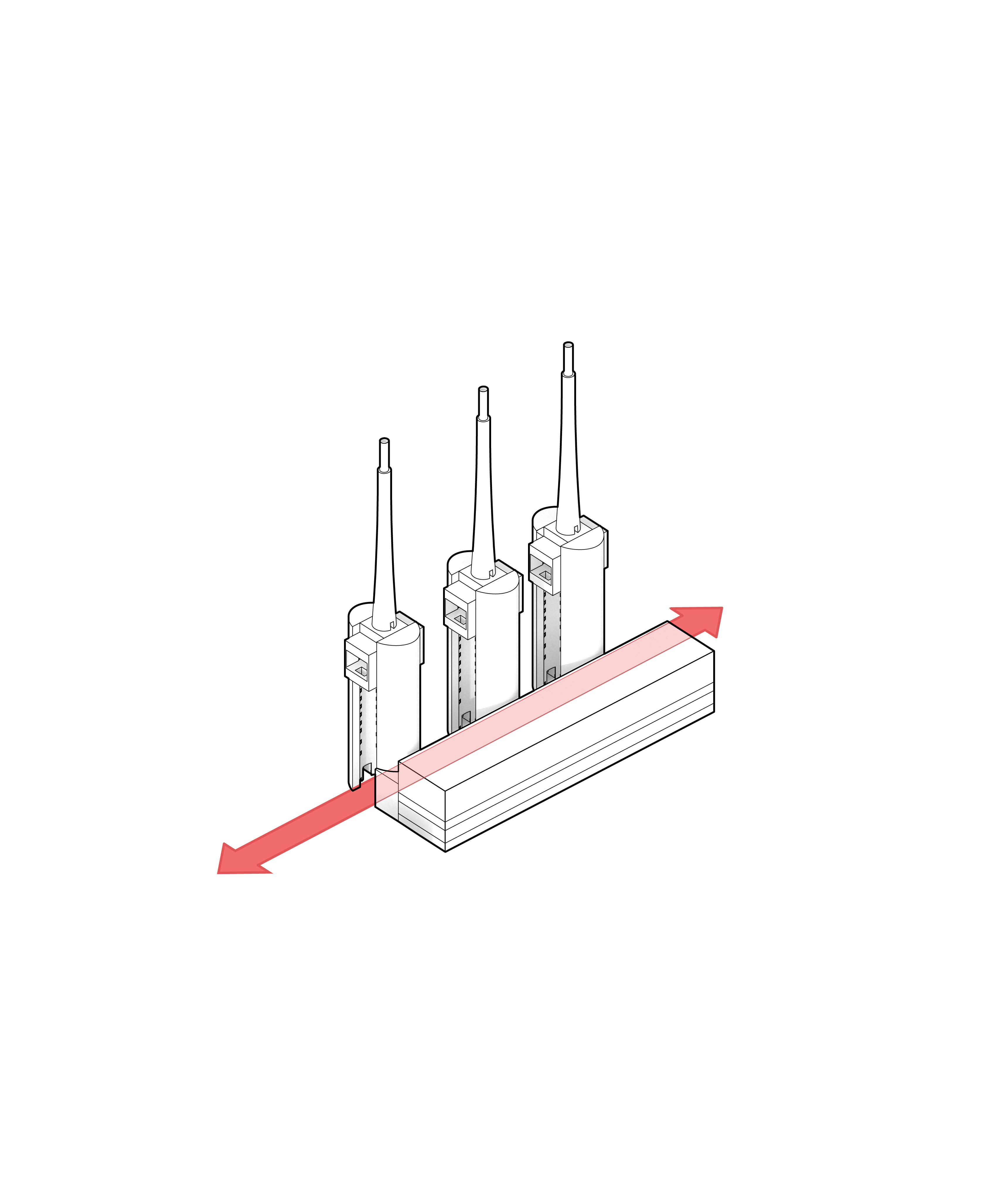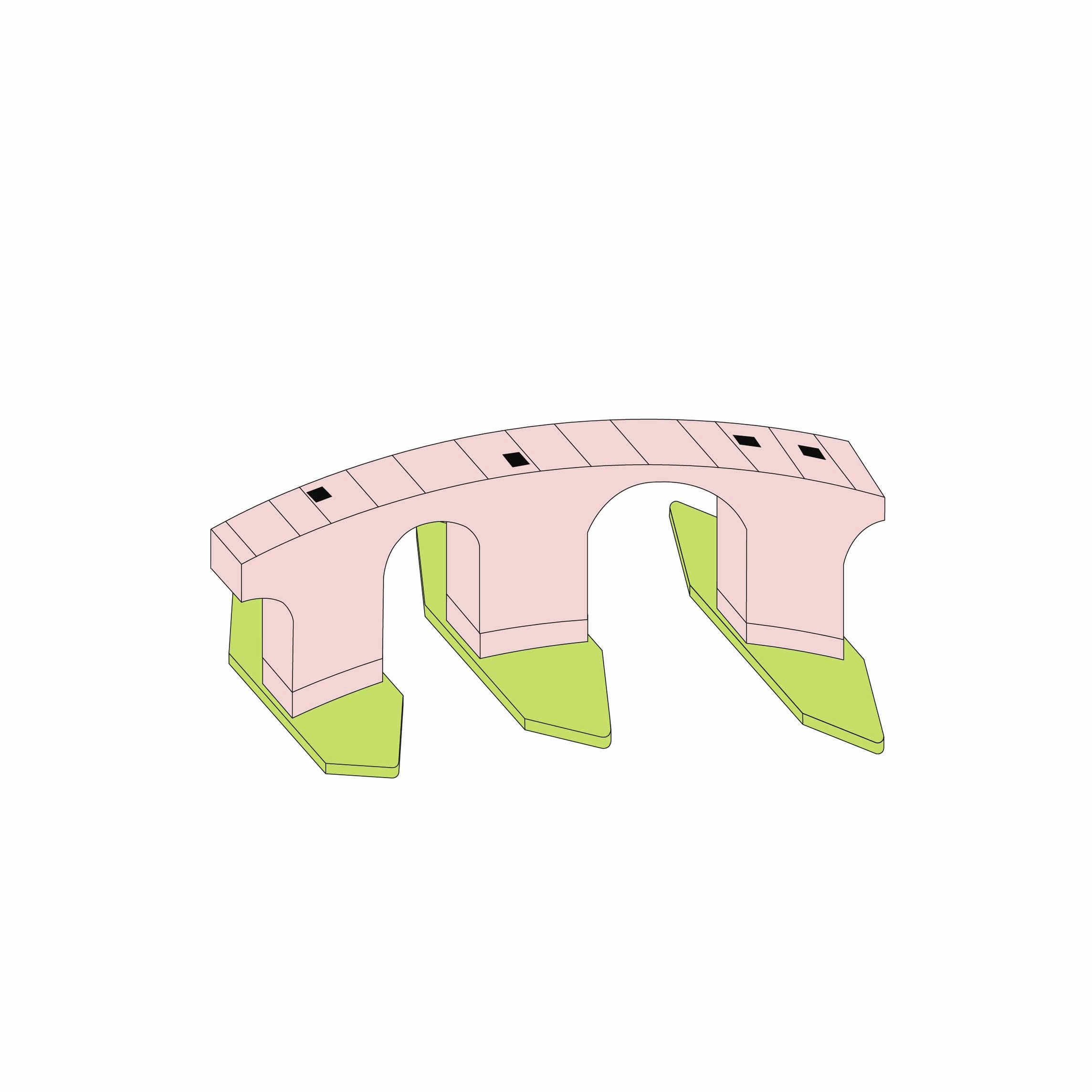 Either straight or curved base modules made with precise geometric proportions allow for the combination of elements to build countless light structures, both essential and complex. It is an elementary principle generating an open system.
