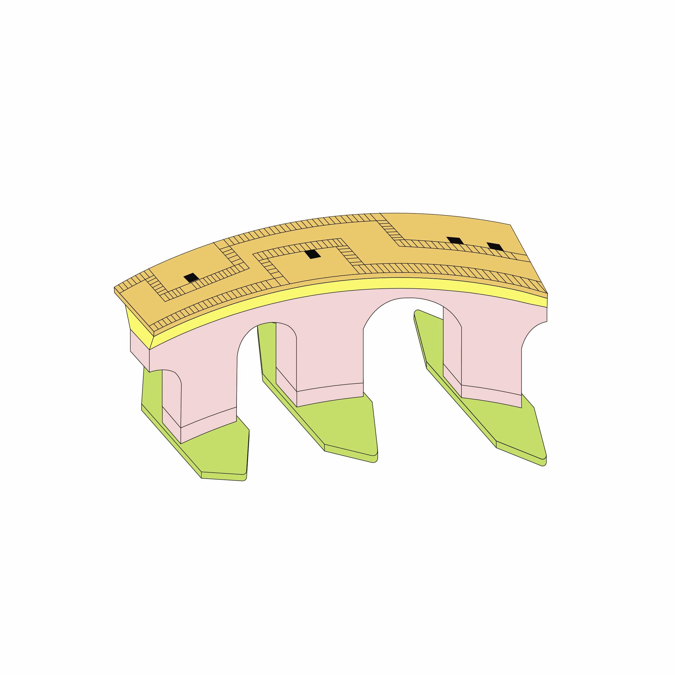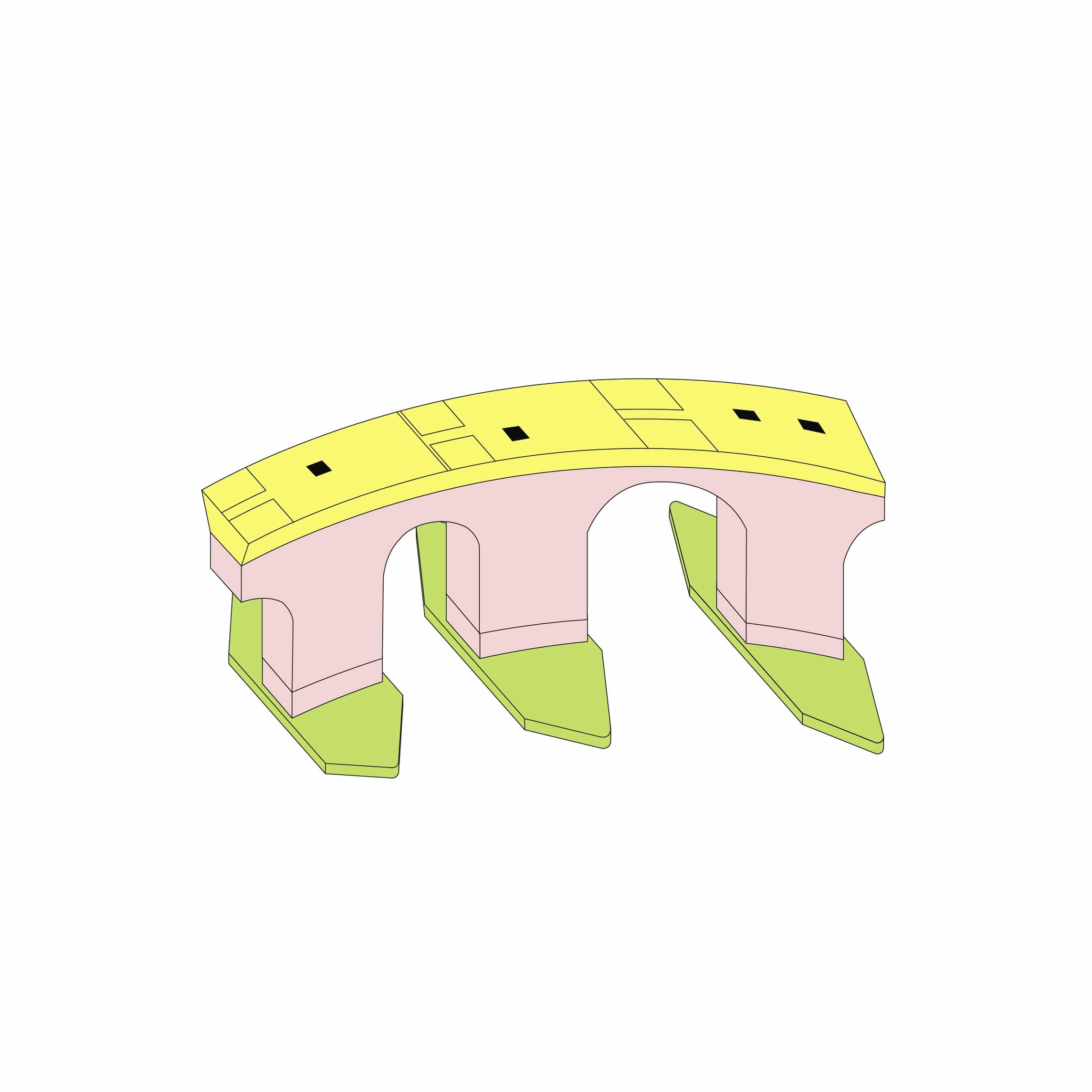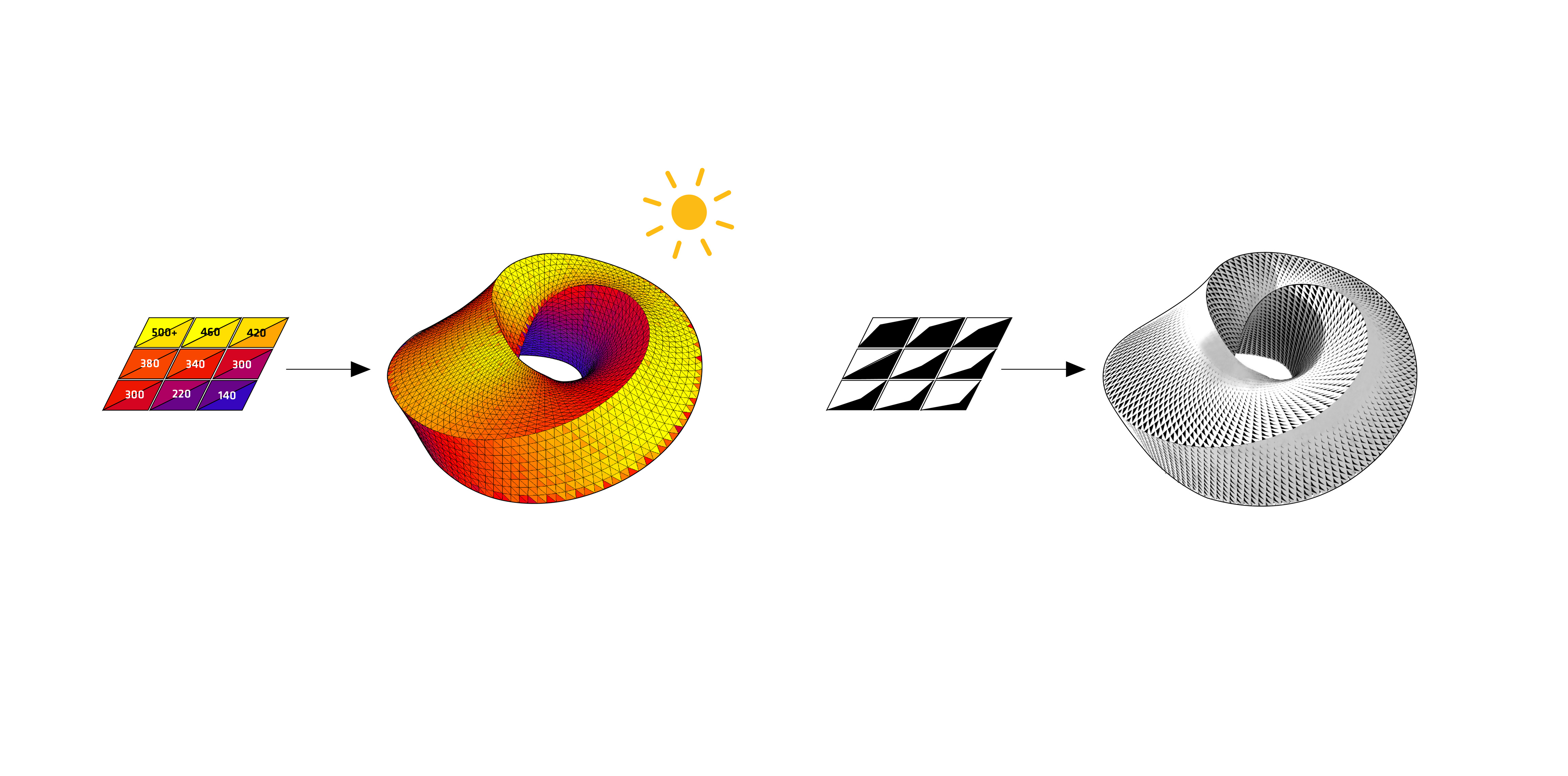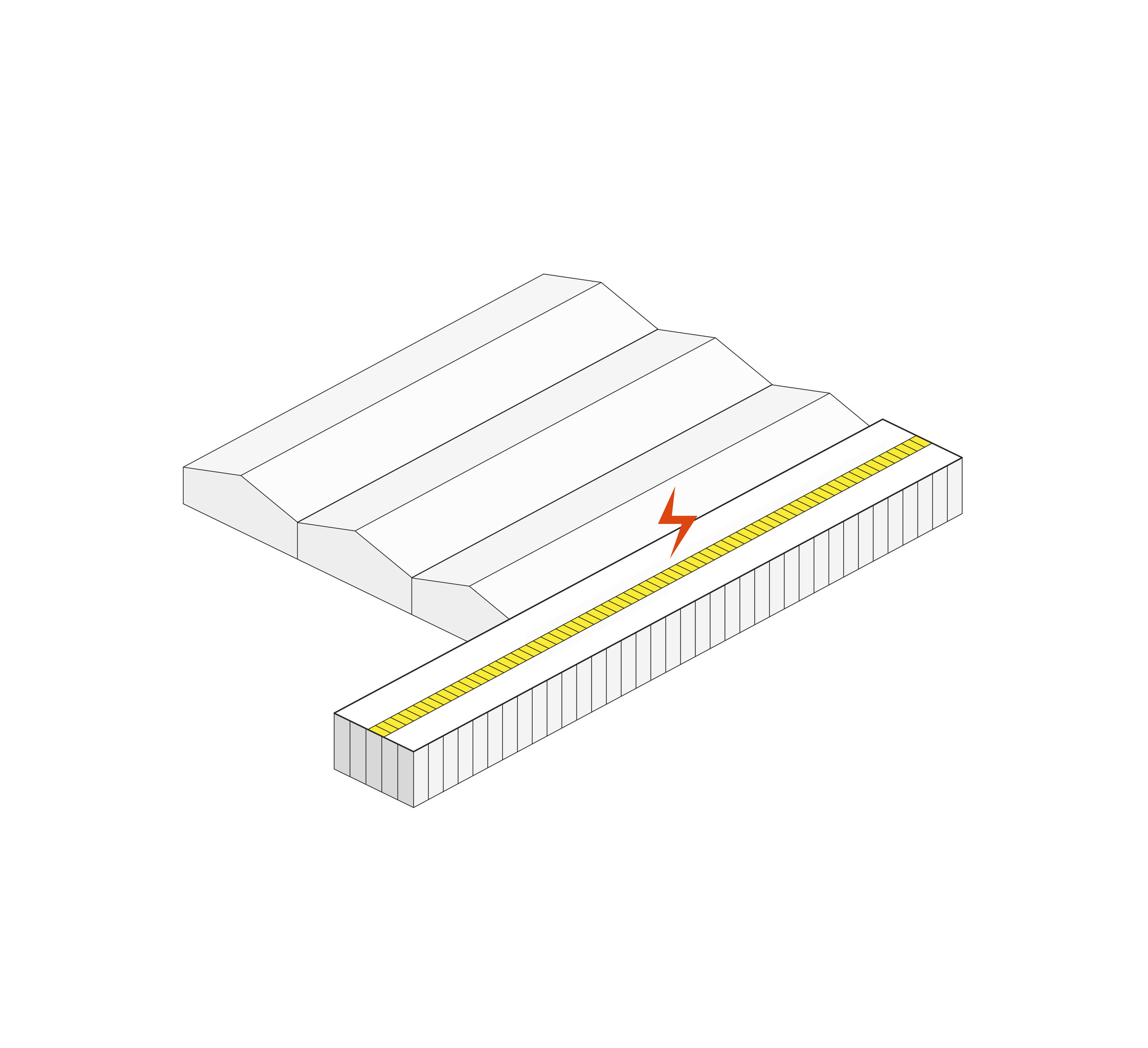Either straight or curved base modules made with precise geometric proportions allow for the combination of elements to build countless light structures, both essential and complex. It is an elementary principle generating an open system.