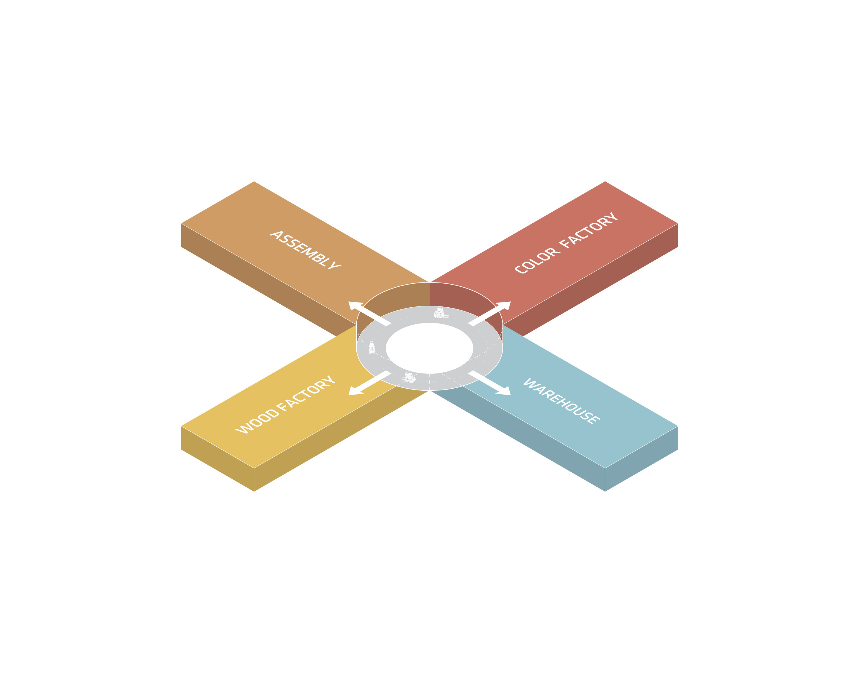 A generous model workshop includes two large fabrication and assembly spaces flanked by wood working & digital fabrication labs.