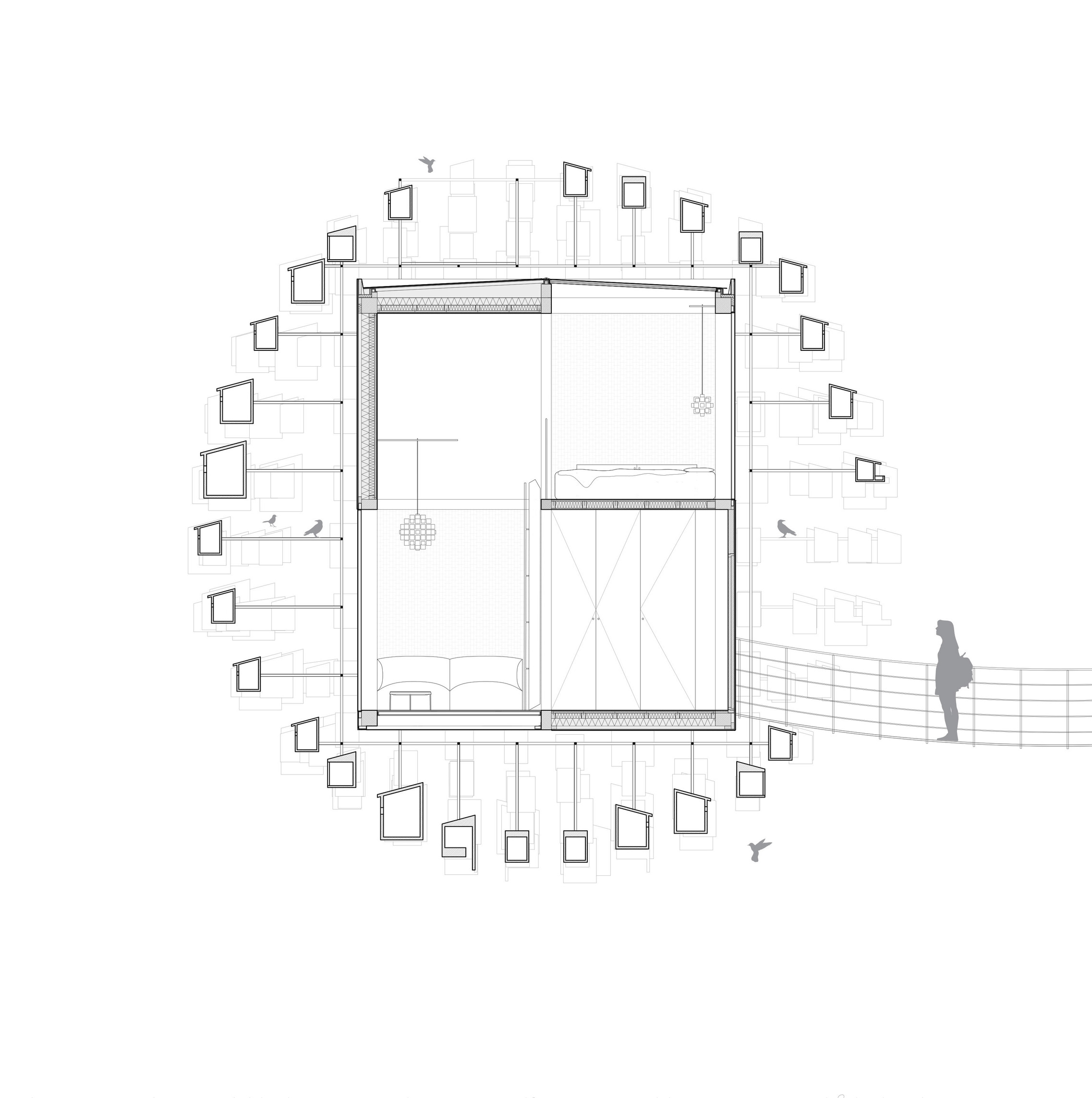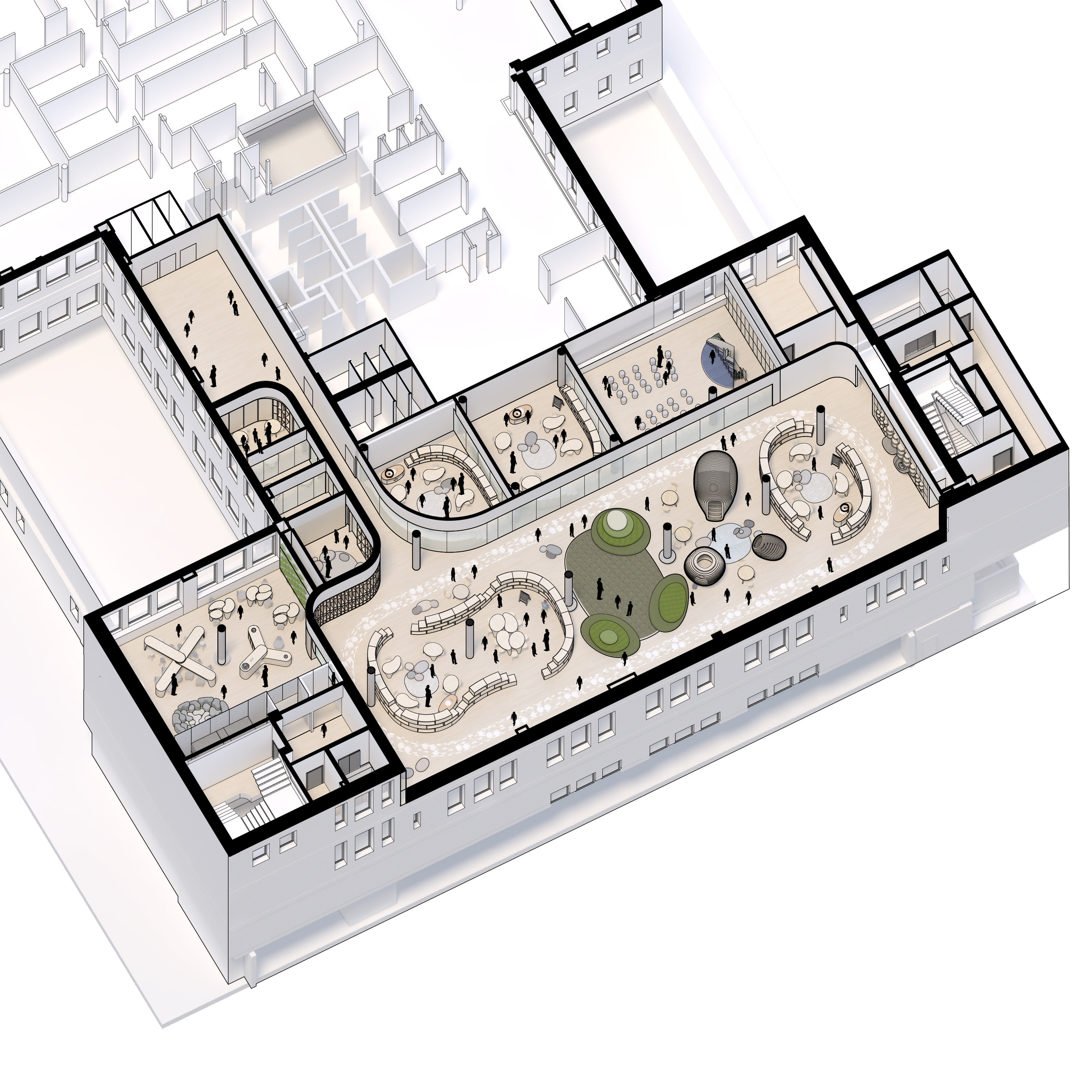 “By deploying one of architecture's oldest structural principles - the timber post and beam - into a collective swarm, the Bloomberg Student Center becomes an embodiment of activity, diversity, and togetherness. The central 'living room' tying the spaces together is sure to become a new arena for both expressing and witnessing the student experience at Johns Hopkins.”