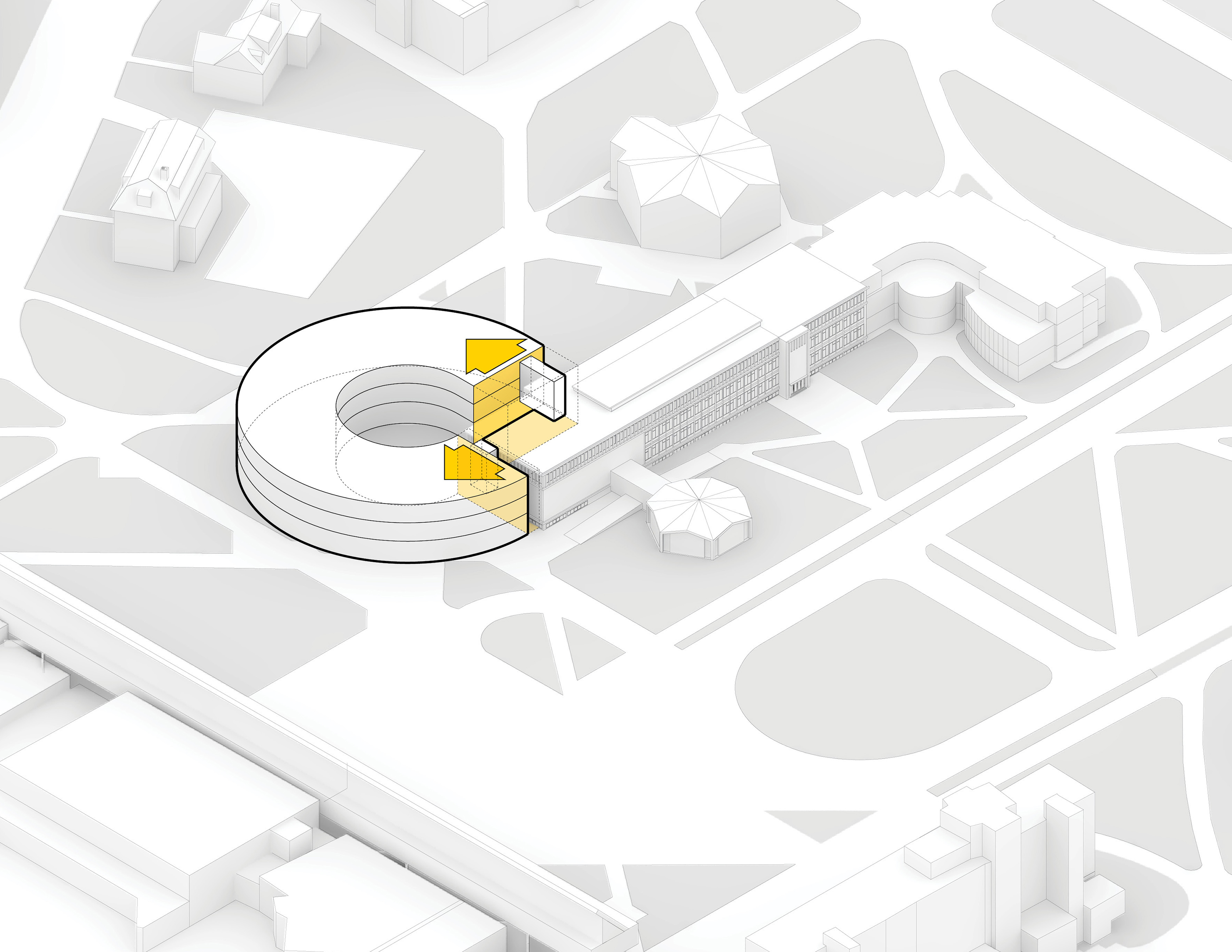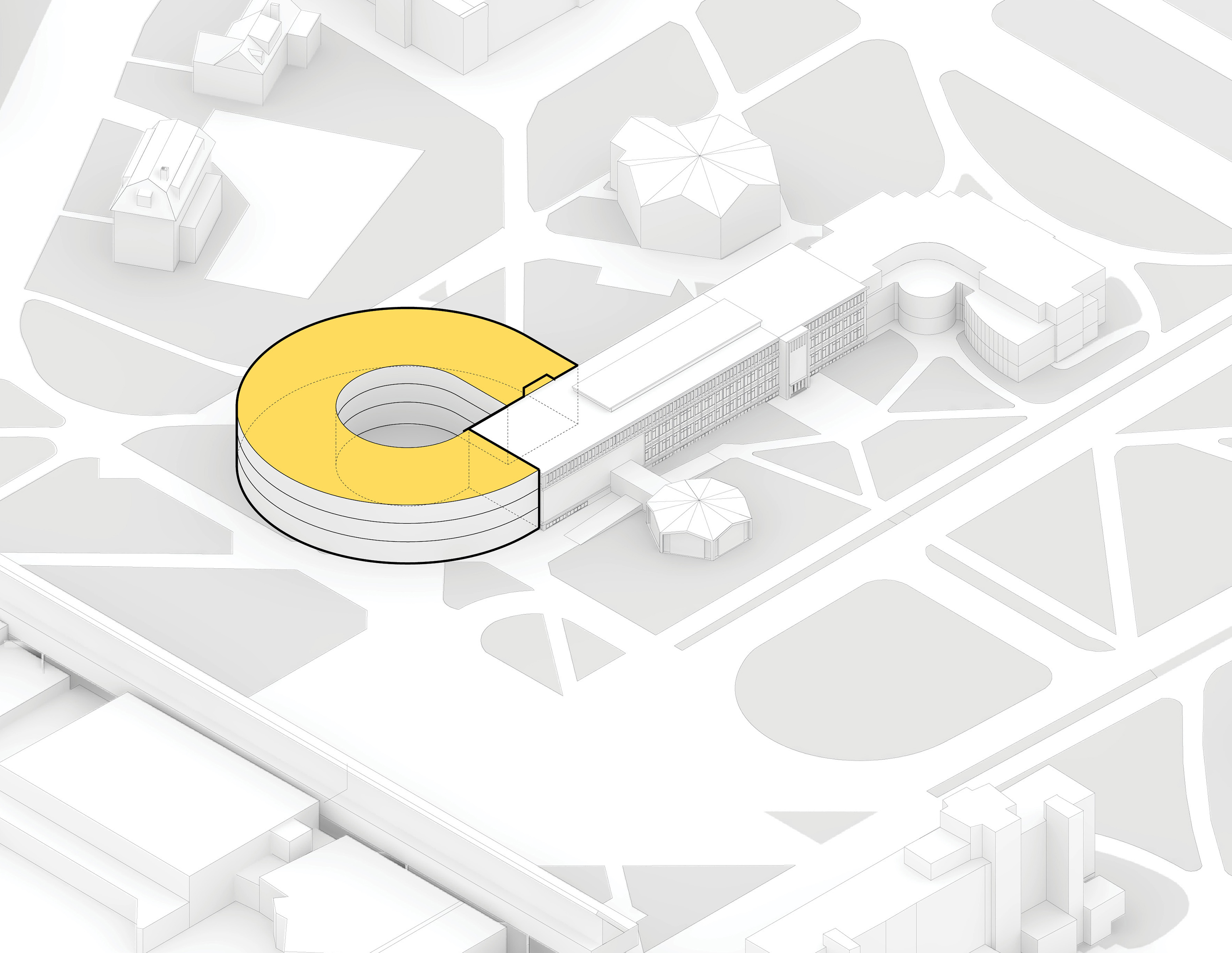 Replacing the 1950s State Opera building on Dammtorstraße, the new 45,000-m2 Hamborg State Opera responds to the city’s need for a modern house that meets contemporary acoustic, spatial, and technical standards. The new opera sits within Hamburg’s evolving waterfront – a city that has long intertwined culture and harbor life, from the Speicherstadt warehouses to the Elbphilharmonie – continuing the dialogue between civic architecture and the water’s edge.