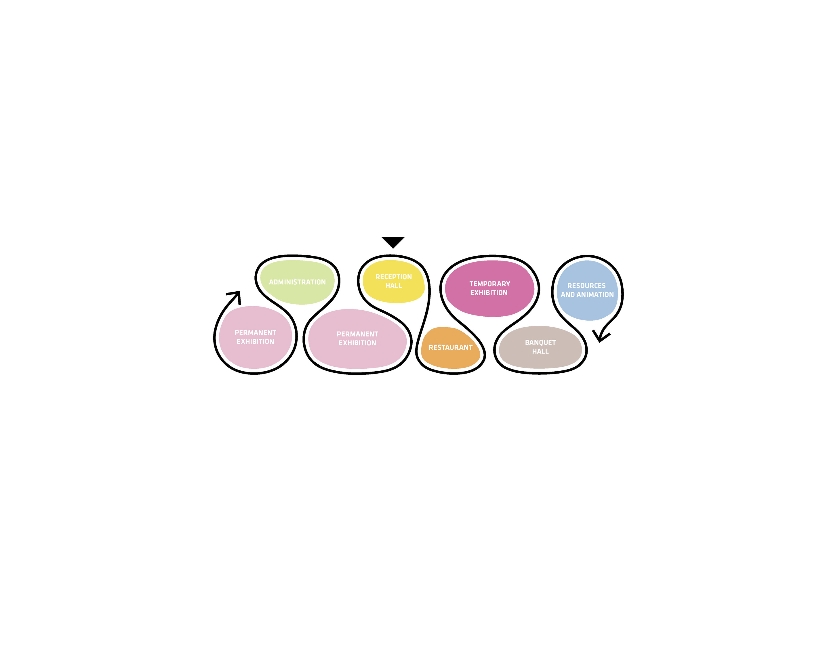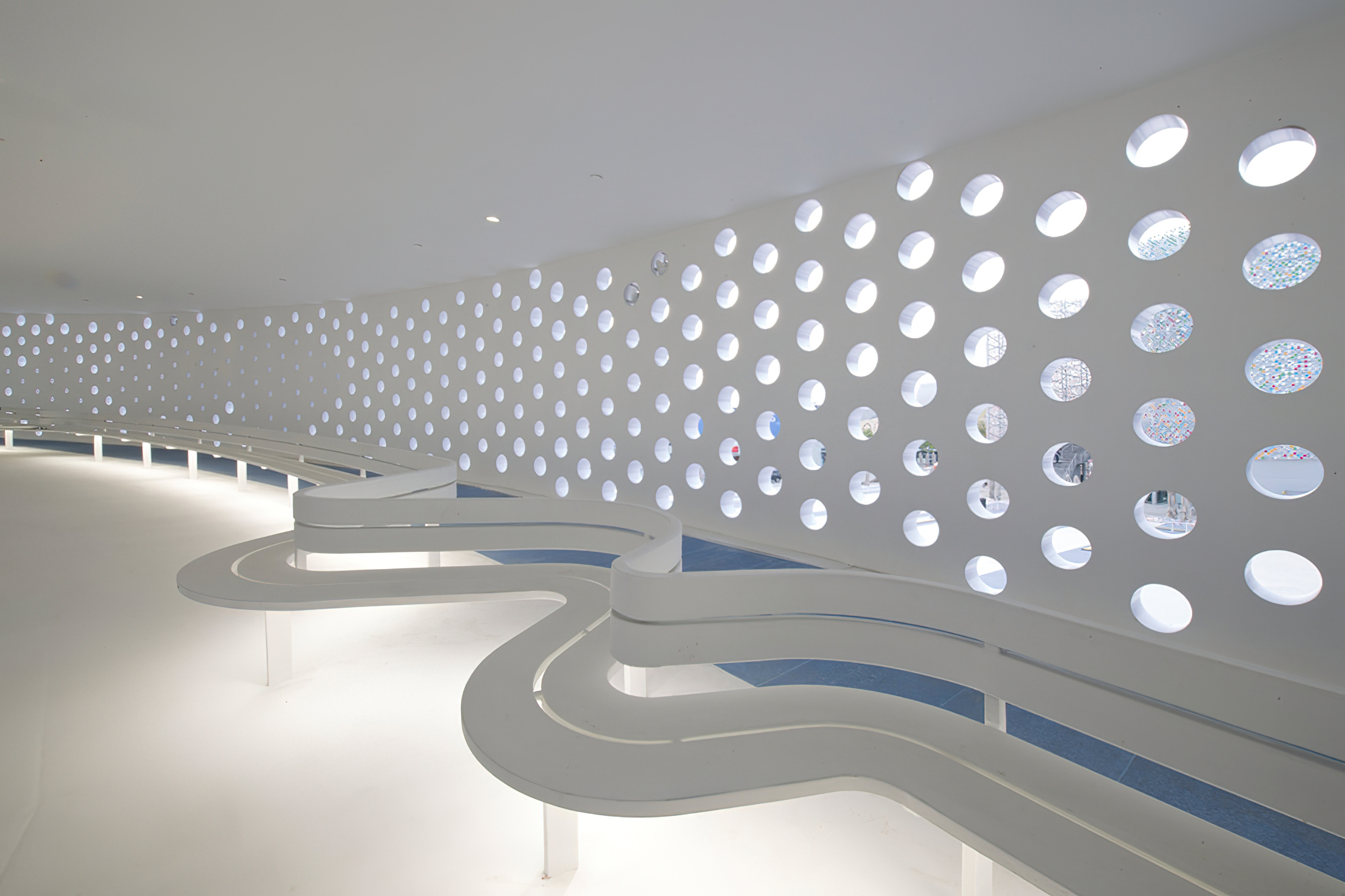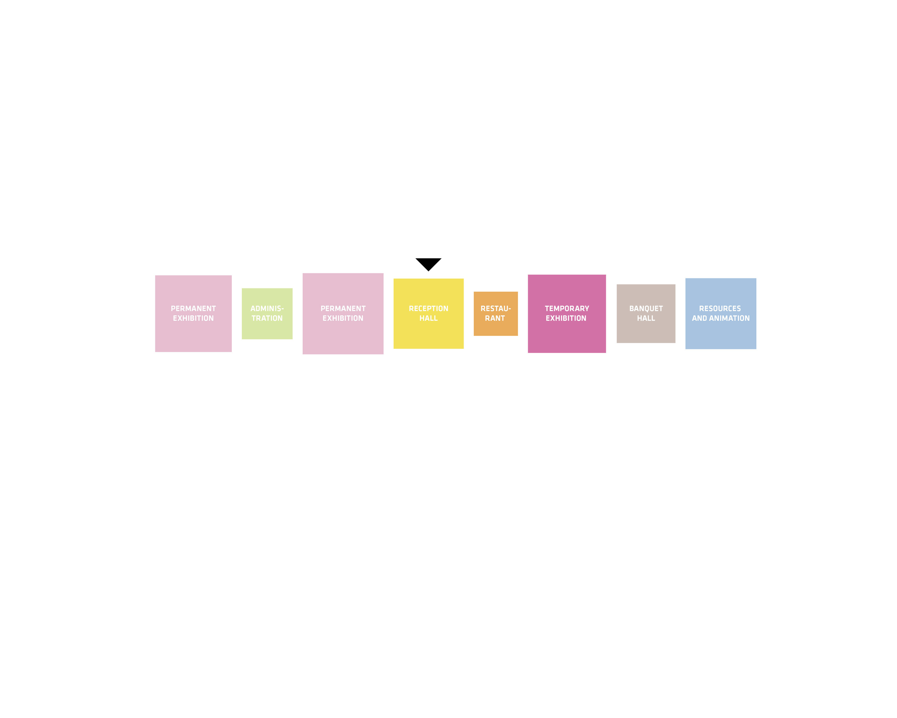 Four of the museum’s pavilions comprise the main gallery experience, while the remaining pavilions include a grand entrance space, multifunction hall, theater, and restaurant. A continuous path guides visitors through the museum, branching off into smaller routes between the galleries.