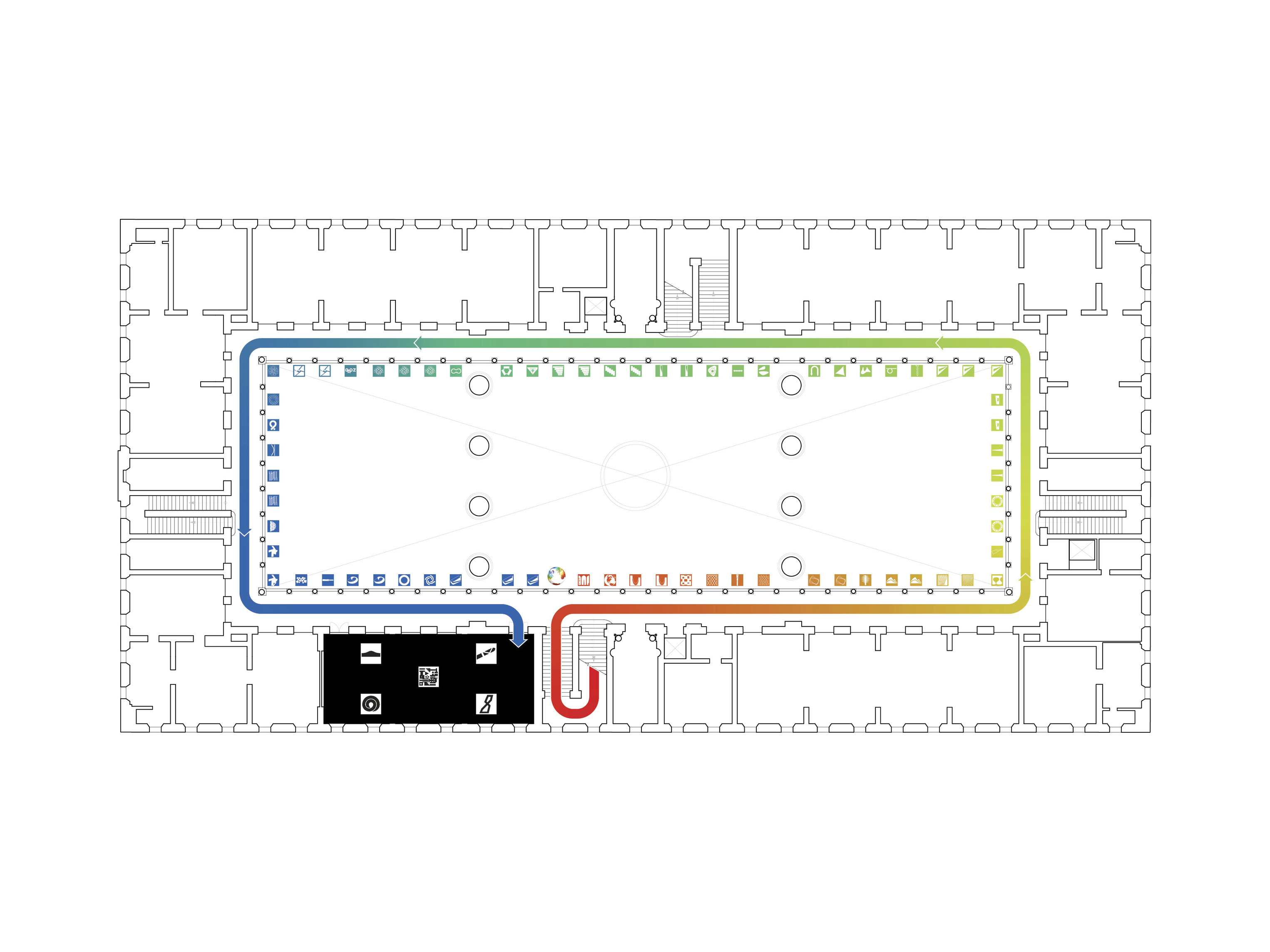 The new center repositions the campus entry from the main quad, known as The Beach, to Charles Street. This shift not only opens the university to the adjacent Charles Village, but it also sets the stage for future development along this corridor. The design negotiates the sloping grade of the site to allow direct entry on all four levels, enhancing accessibility while maintaining a human scale.