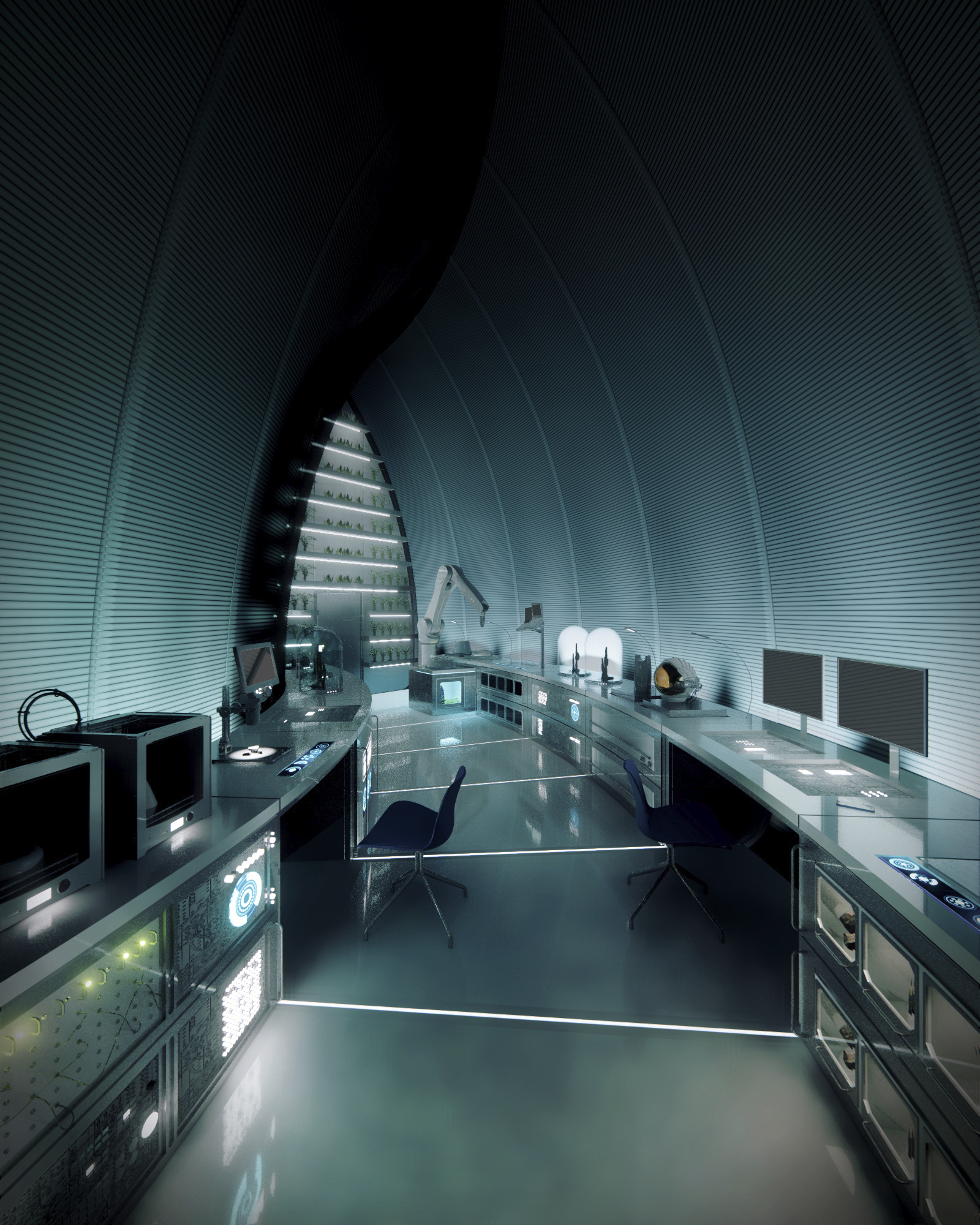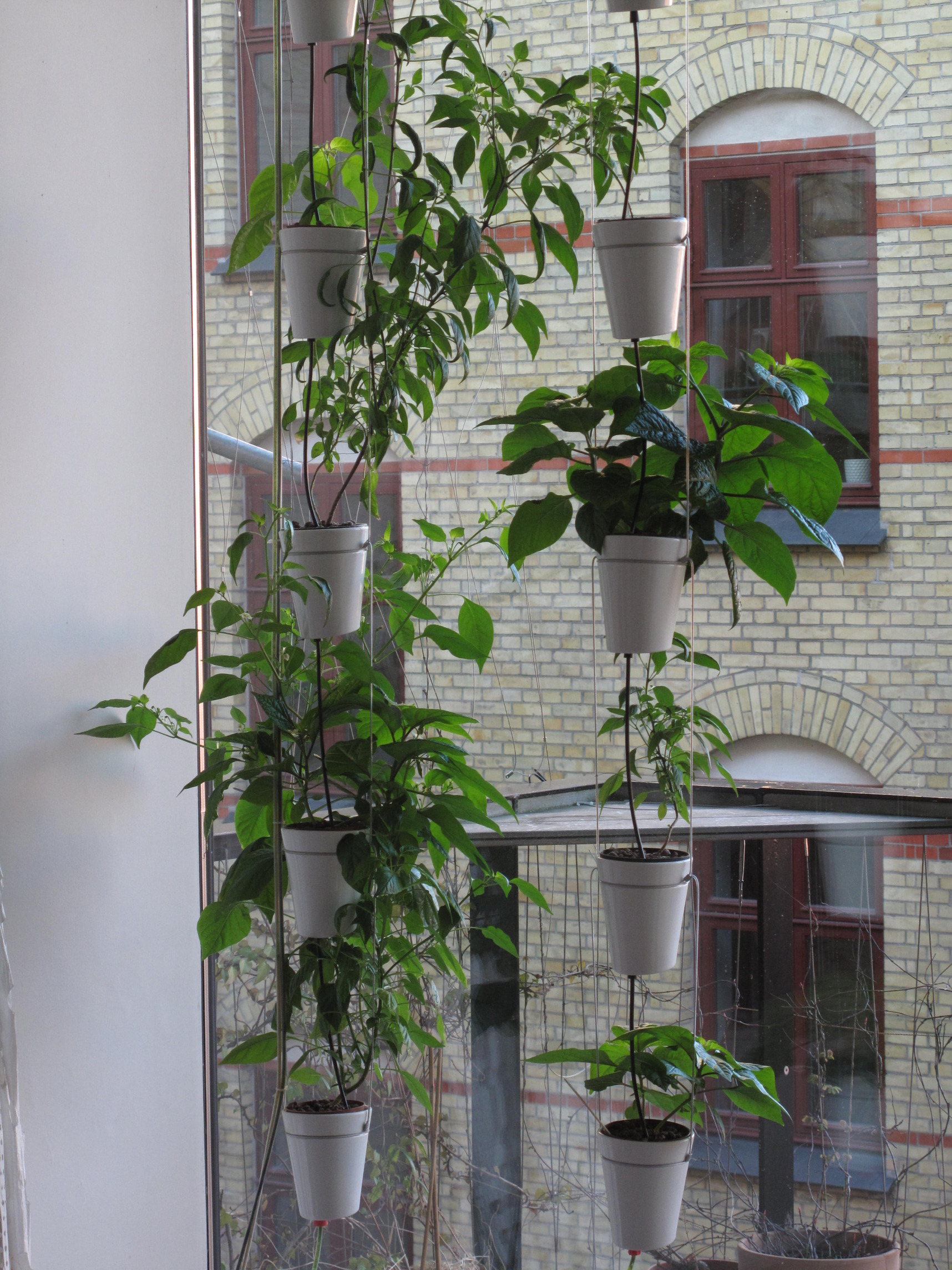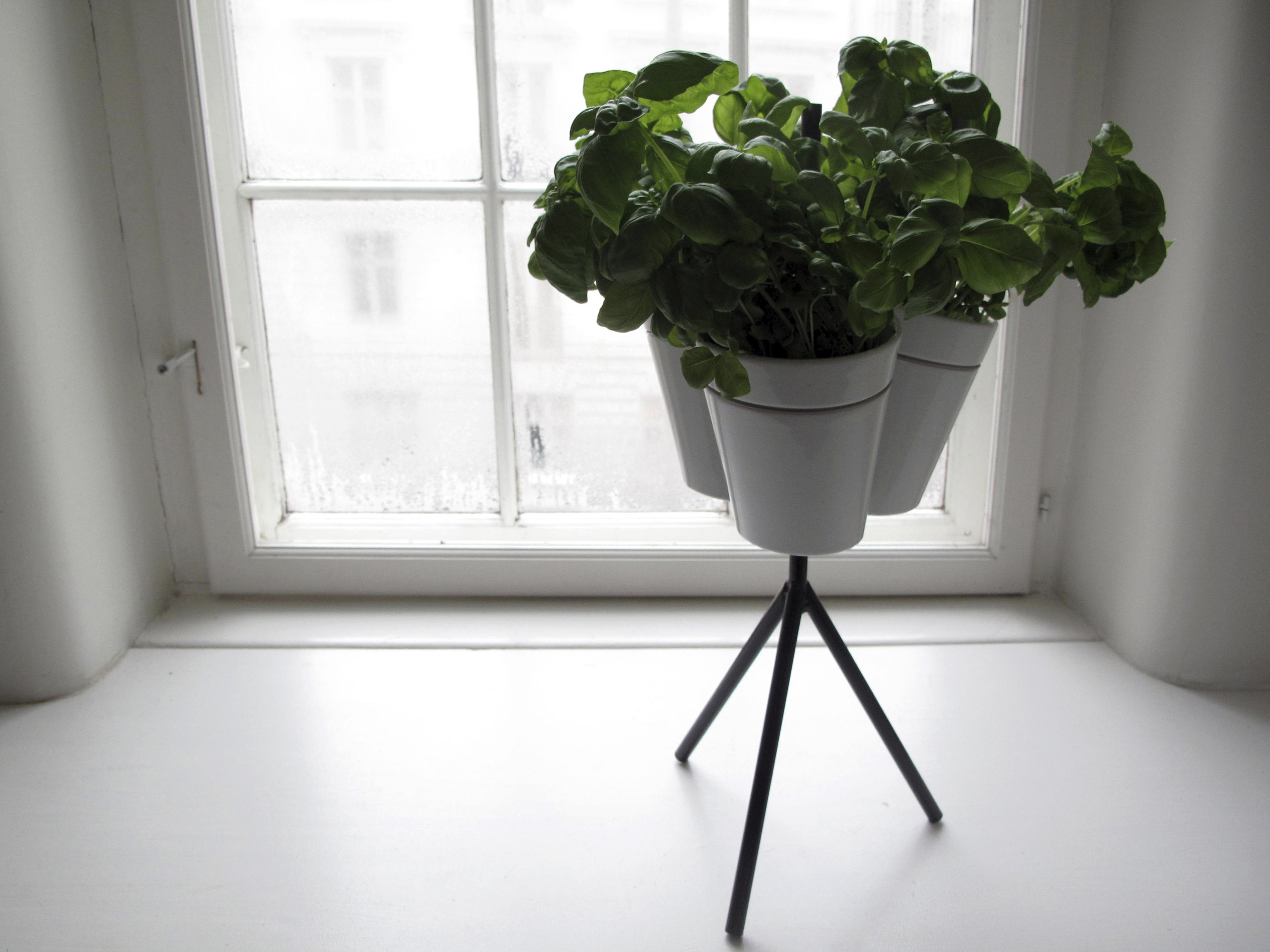 For the urban farmer, a hydroponic garden system that brings sustainable growing indoors. The ceramic pots can be mounted in many different ways to suit the needs of the individual and the space. Either hanging as a grid, on a line or floor standing.