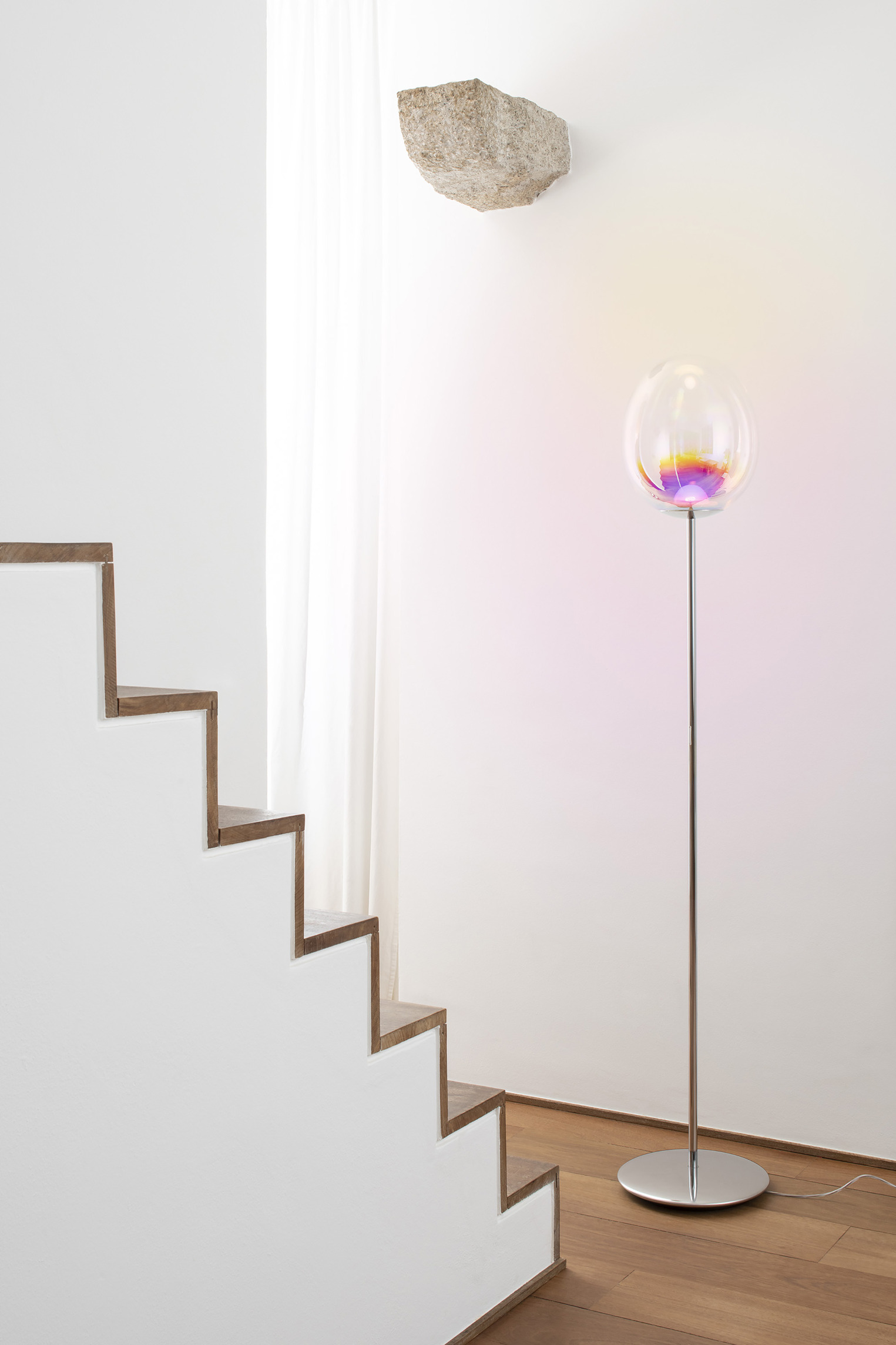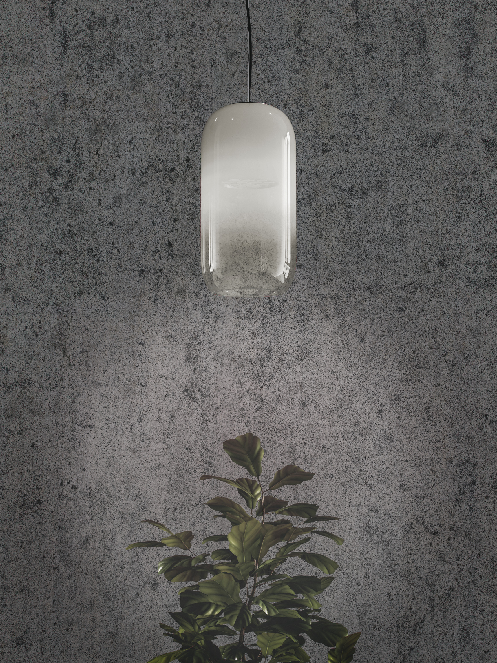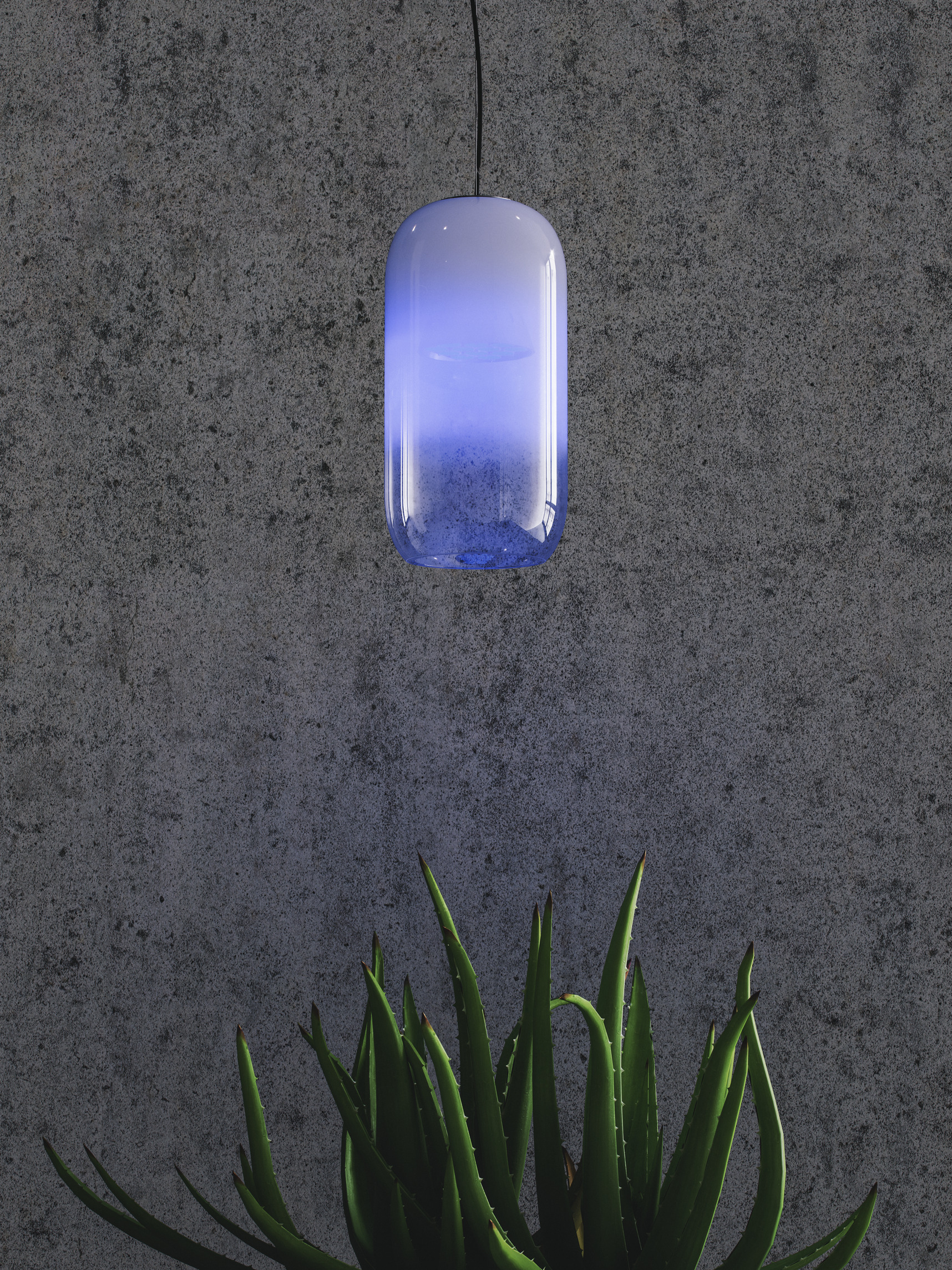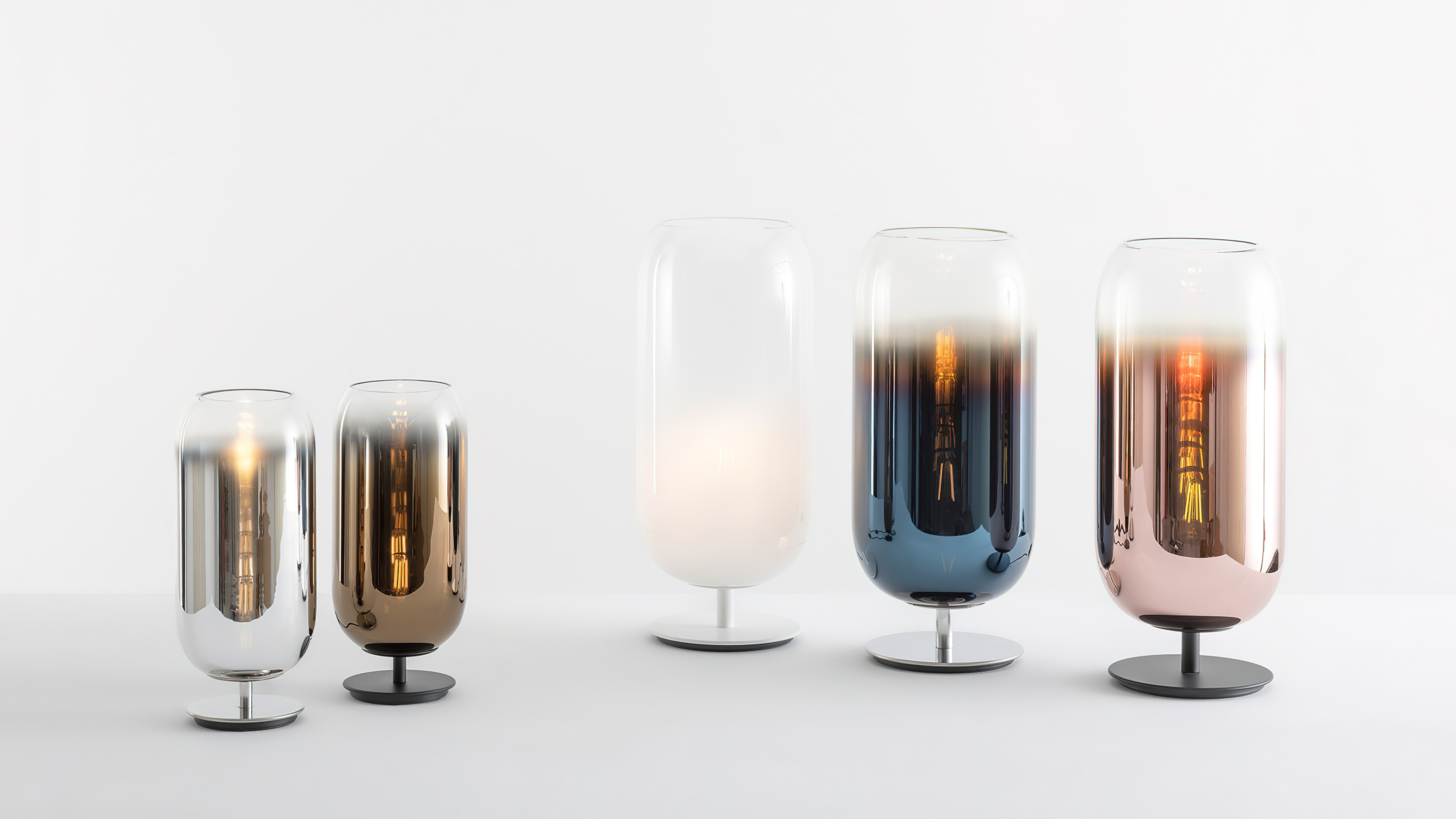 The Gople Lamp enhances the beauty of glass, hand-processed according to an ancient Venetian technique that gradually turns white glass into crystal glass by combining both upon blowing, thus making each piece unique.