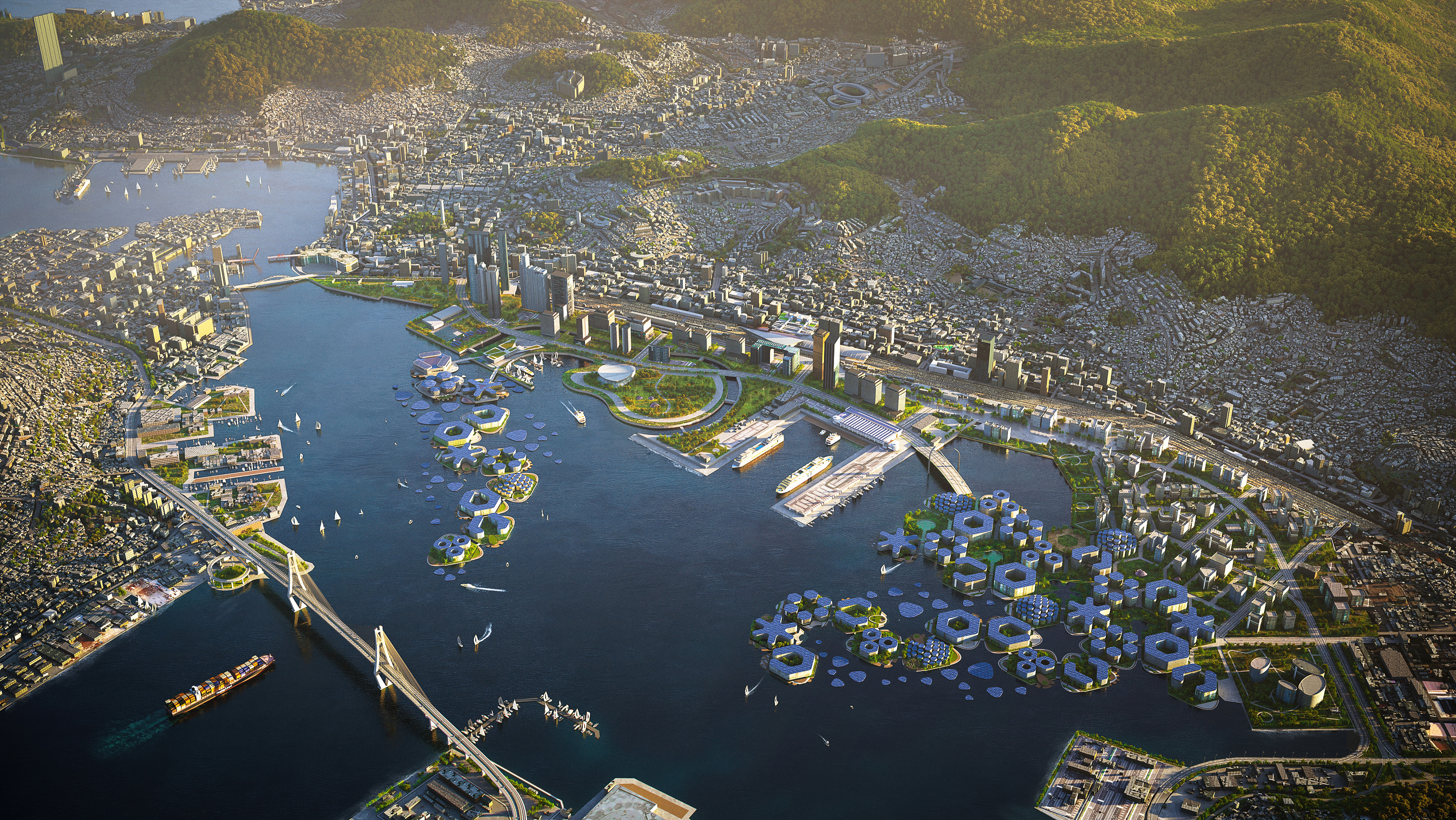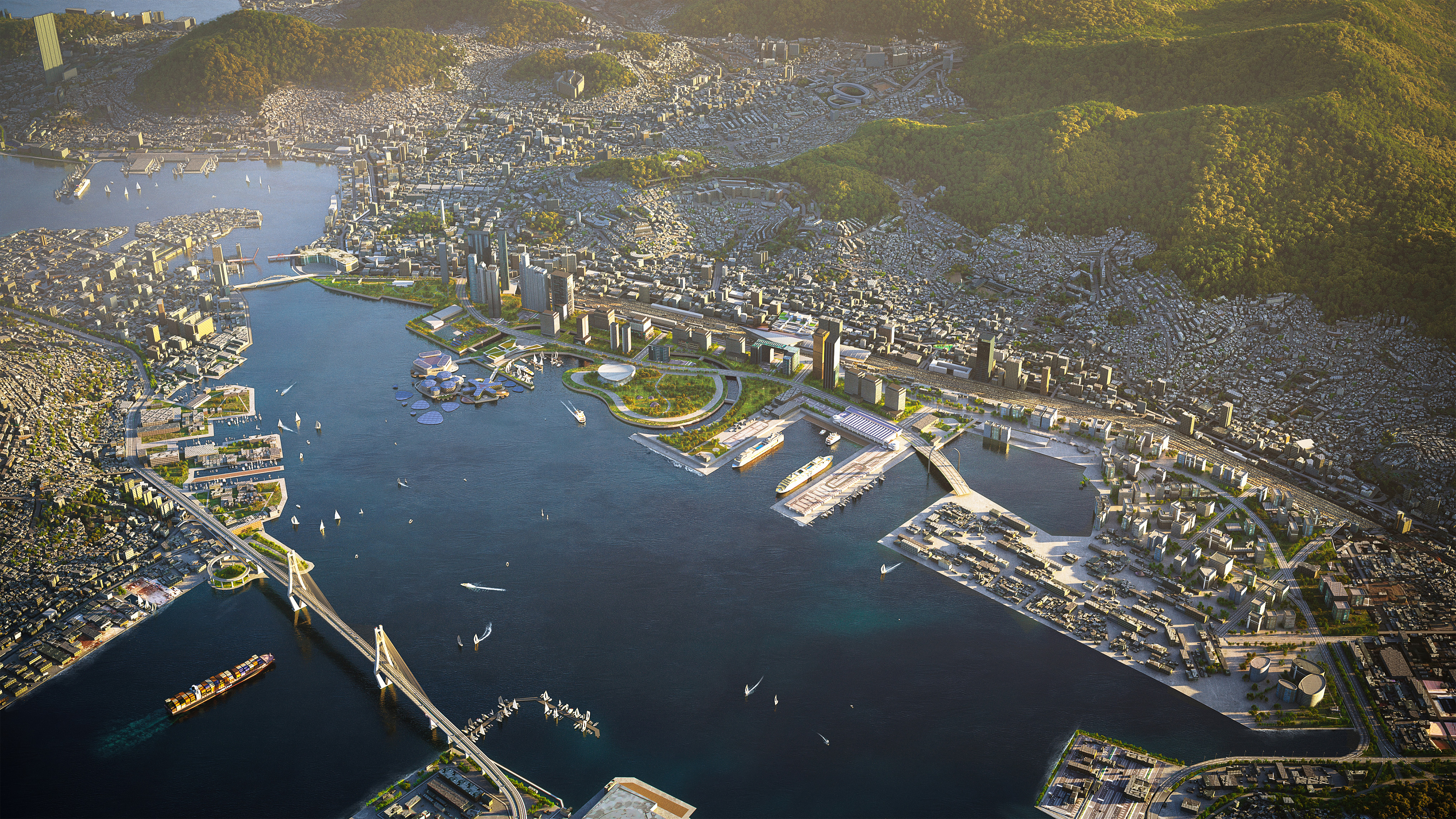 “For its future, Port Kembla will bring industrial growth and ecological restoration. Influenced by dramatic topographies and architectural heritage, the masterplan harmoniously blends with the surroundings, respecting the context, and preserving the essence of the place. Shaped to shelter from industrial noise and heavy winds, the architectural volumes dissolve into the landscape, blurring the boundaries between built structures and open space, solar panels and green roofs, technology and ecology. Inspired by Country, Bluescope’s Port Kembla masterplan will bring new opportunities to Illawarra and New South Wales. It will position Australia as a global leader in sustainable, industrial regeneration, setting an example for the country and for the rest of the world.”