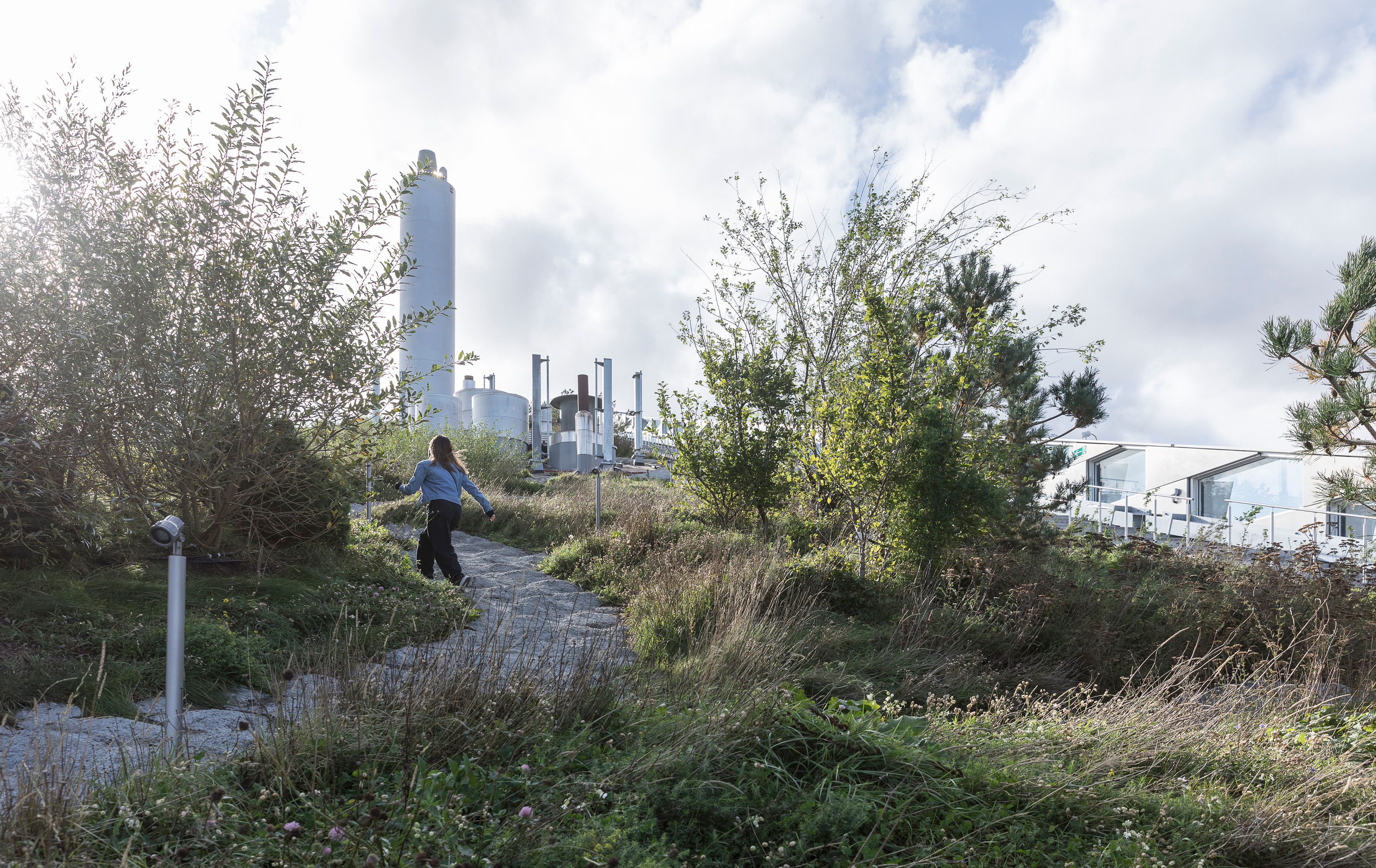Shaped by the movement of the water, the surrounding park is designed by BIG Landscape and manages storm surges through sloping terraces, vegetated dunes, and wetland gardens that slow and absorb the flow. Basins collect and retain rainwater, creating habitats for amphibians, aquatic plants, and local species. The combination of tidal zones, resilient vegetation, and permeable surfaces supports biodiversity and forms a living landscape that adapts to the changing rhythms of the Elbe.