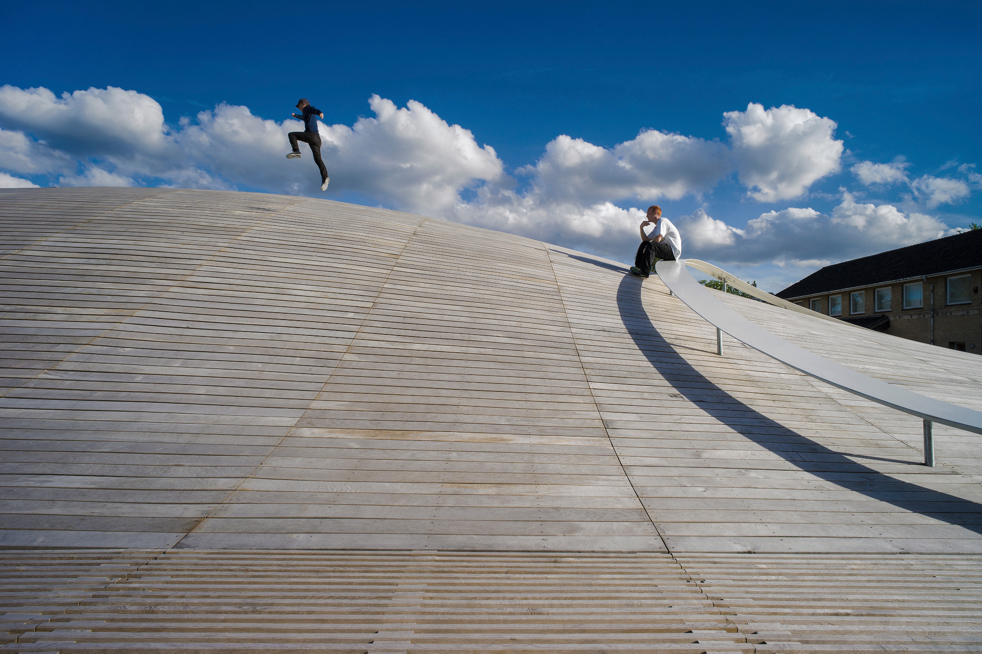 Inside, a central staircase leads to a sun-drenched ‘living room’ that anchors the heart of the building, surrounded by spaces tailored to the needs of the Hopkins community. The timber structure creates a warm and acoustically comfortable environment, while the clerestory windows set between the roof planes bring natural light deep into the interior.