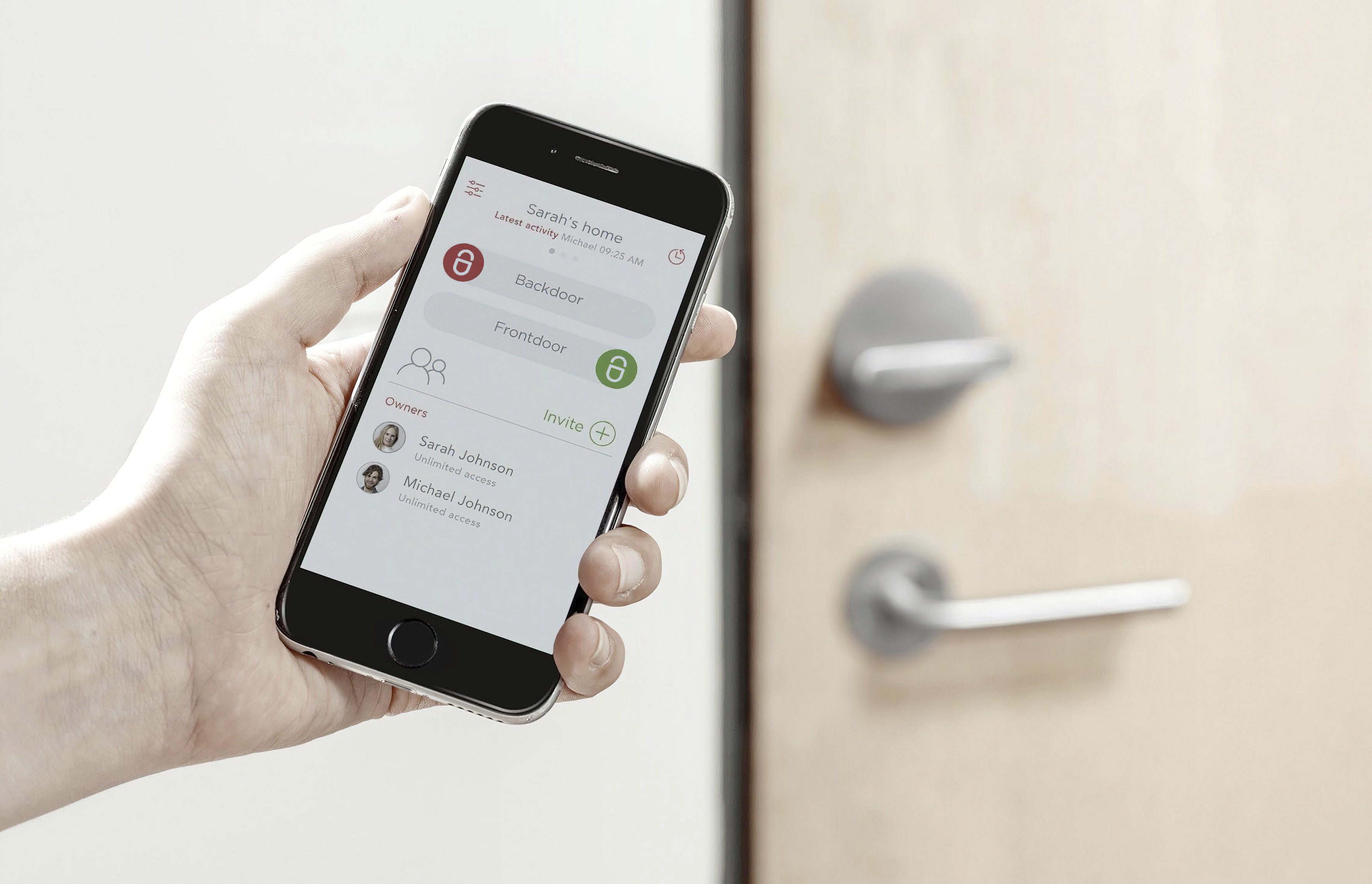 Controlled via smartphone, the smart lock can automatically unlock a door when it senses the resident approaching, lock it as they leave, or allow them to remotely control who has access to the property. It is designed to fit on the inside of almost any door in place of the traditional thumb turn.