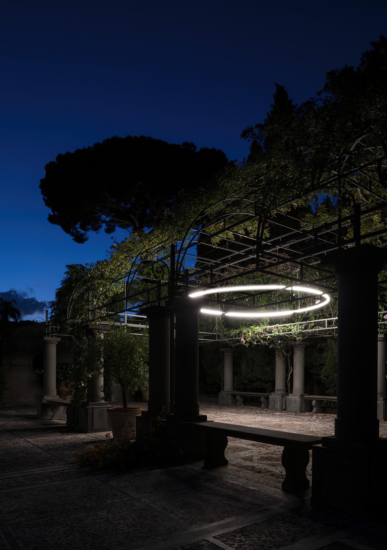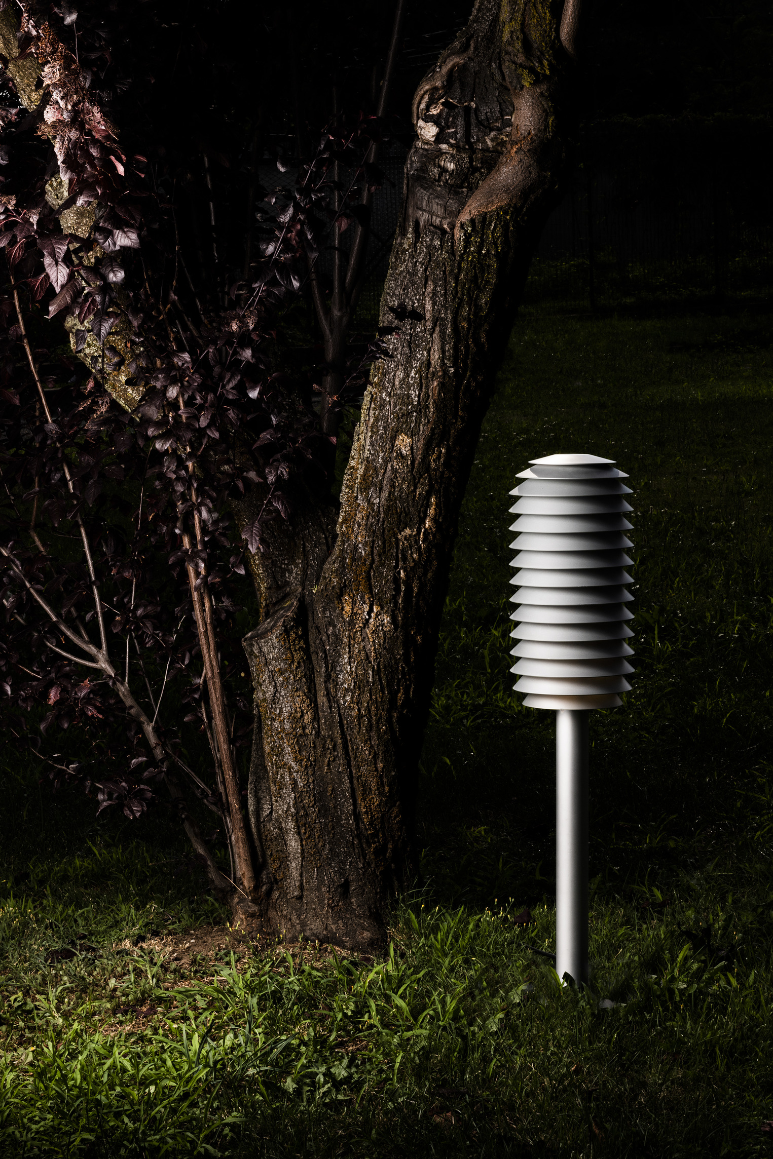 Expanding on the Alphabet of Light family by contributing a strong presence for the outdoor realm, the AoL outdoor circle light offers subtle yet surprising illumination along paths and roads of parks and forests. The Alphabet of Light outdoor circle light honors the beauty of the tree by endowing it with a generous halo.