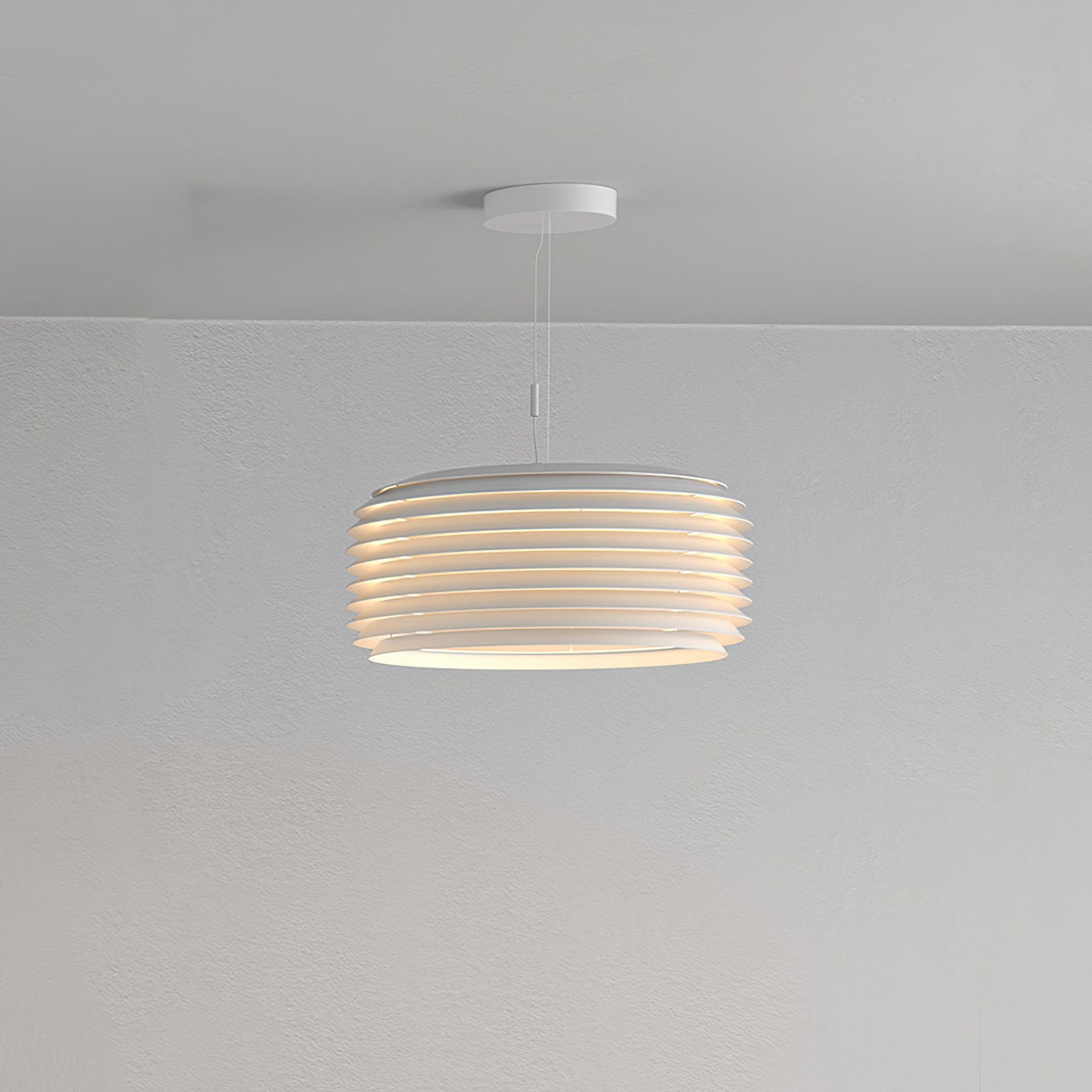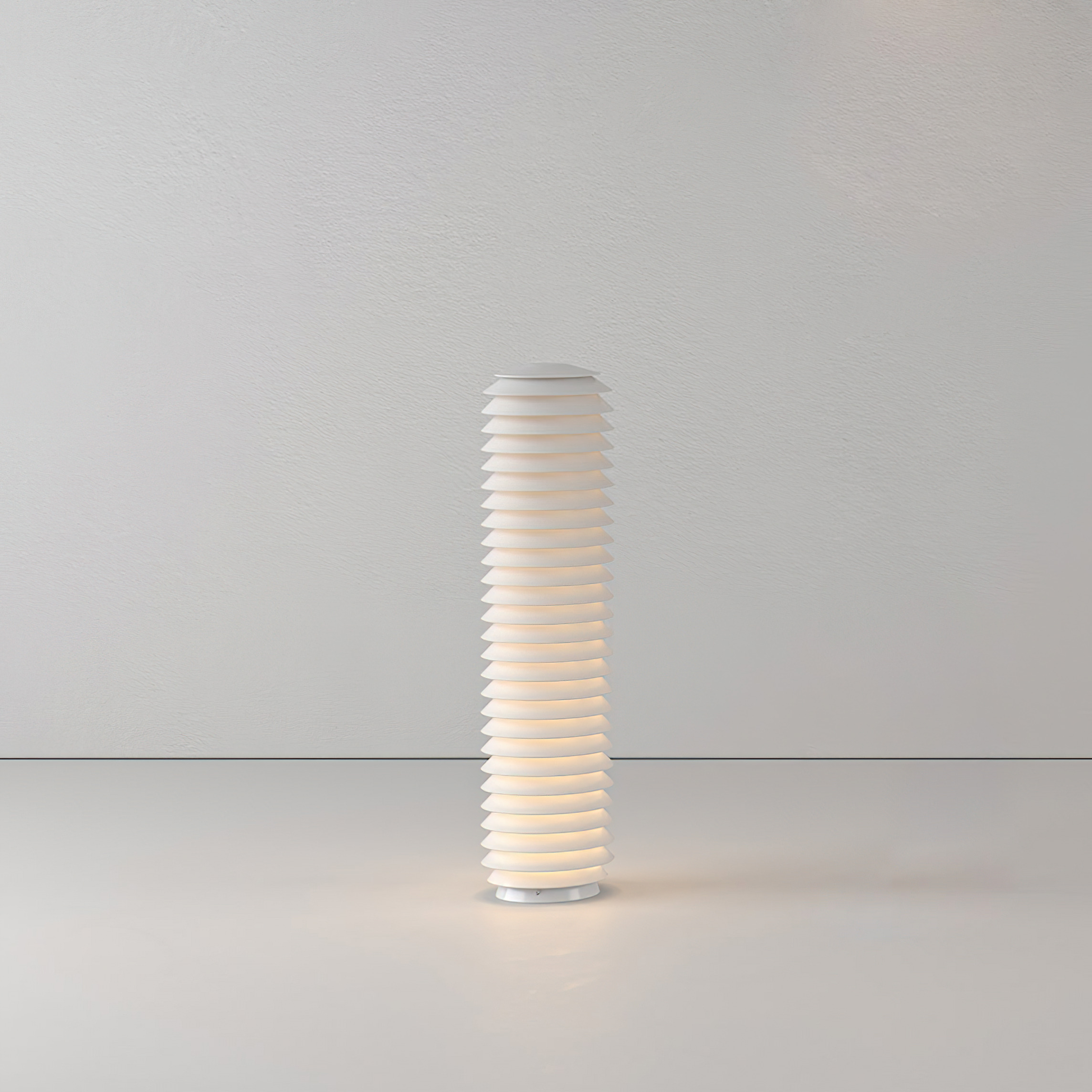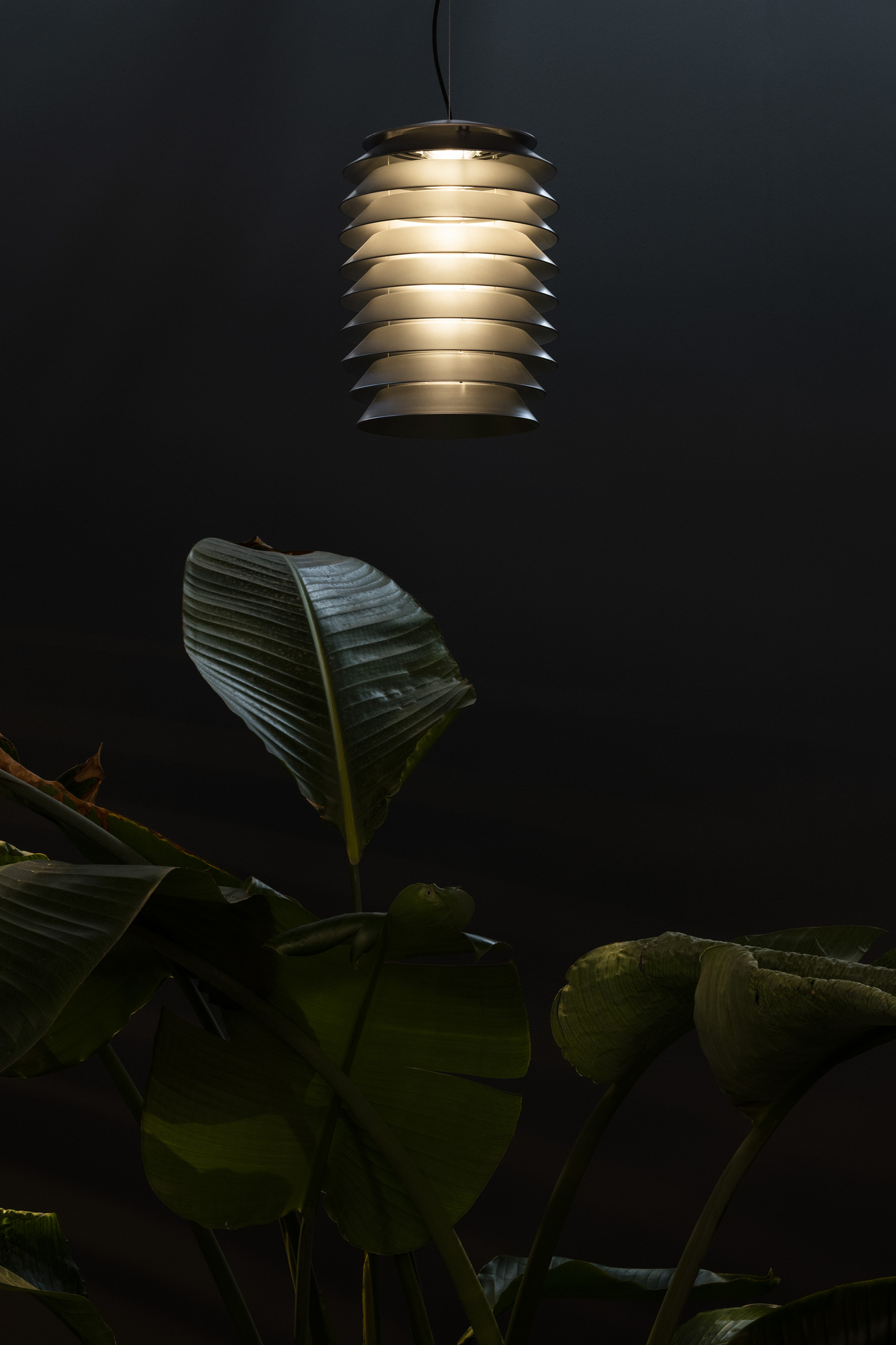Slicing breaks down the iconic Gople silhouette and scale into different dimensions and proportions to bring light indoor and outdoor, by interpreting the relationship between spaces and nature. Starting from the principles of production, energy sustainability and respect for the natural environment in which they are inserted, a series of overlapping slats interact with the light and define the body of three suspension lights two floor and one wall/ceiling elements. Slicing can accompany us as we walk about, it helps us to read the surrounding landscape in the movement, it stages the space and creates moments of rest, sharing and meeting, resulting in an experience on a human scale.