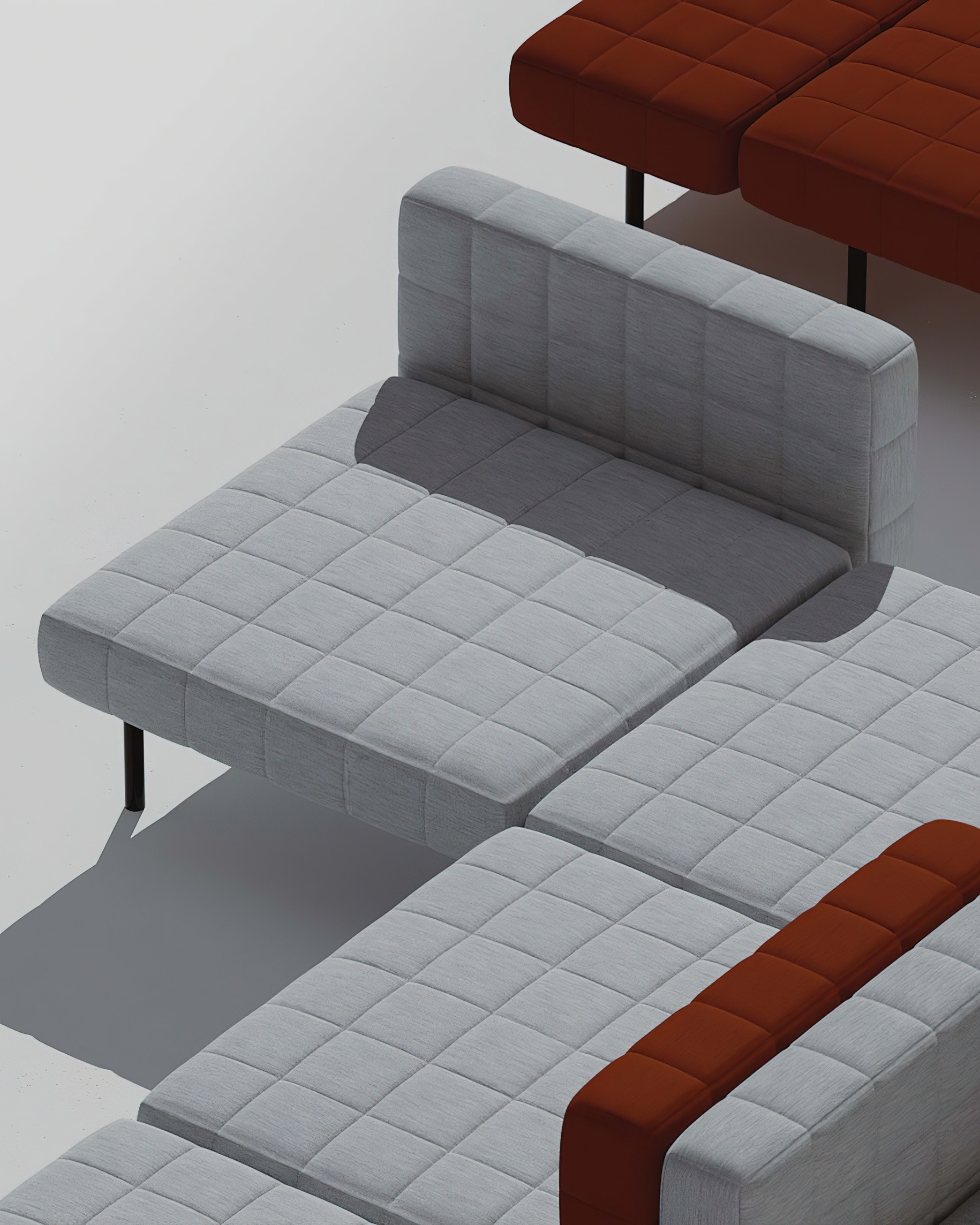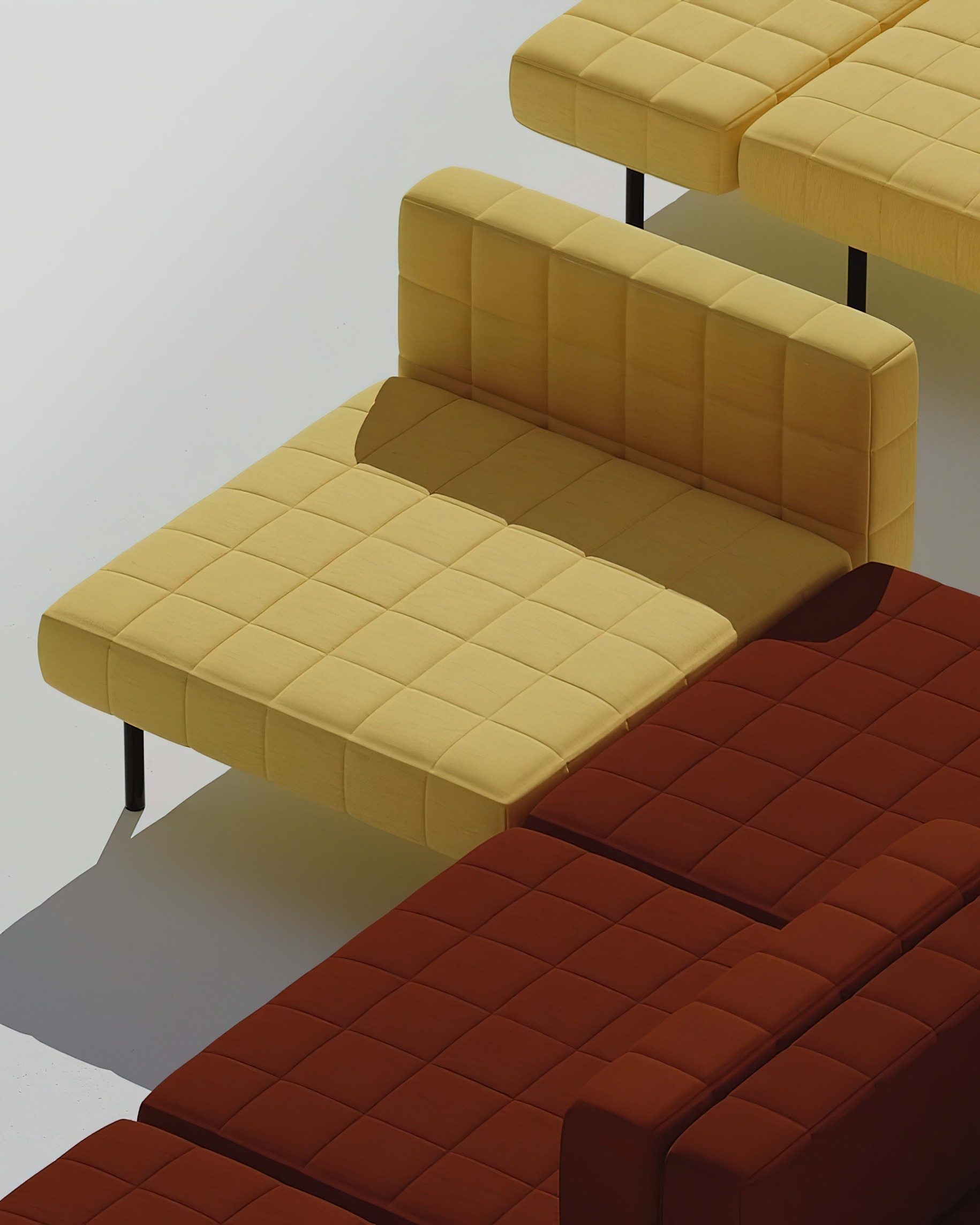 A modular sofa expressed through the concept of a building block, a three-dimensional pixel – a voxel. The grid-like system creates a family of units that can be configured into multiple scenarios, from a single unit to large configurations. The Voxel System is a way of addressing our ever-changing need to change things up during our lifetime.