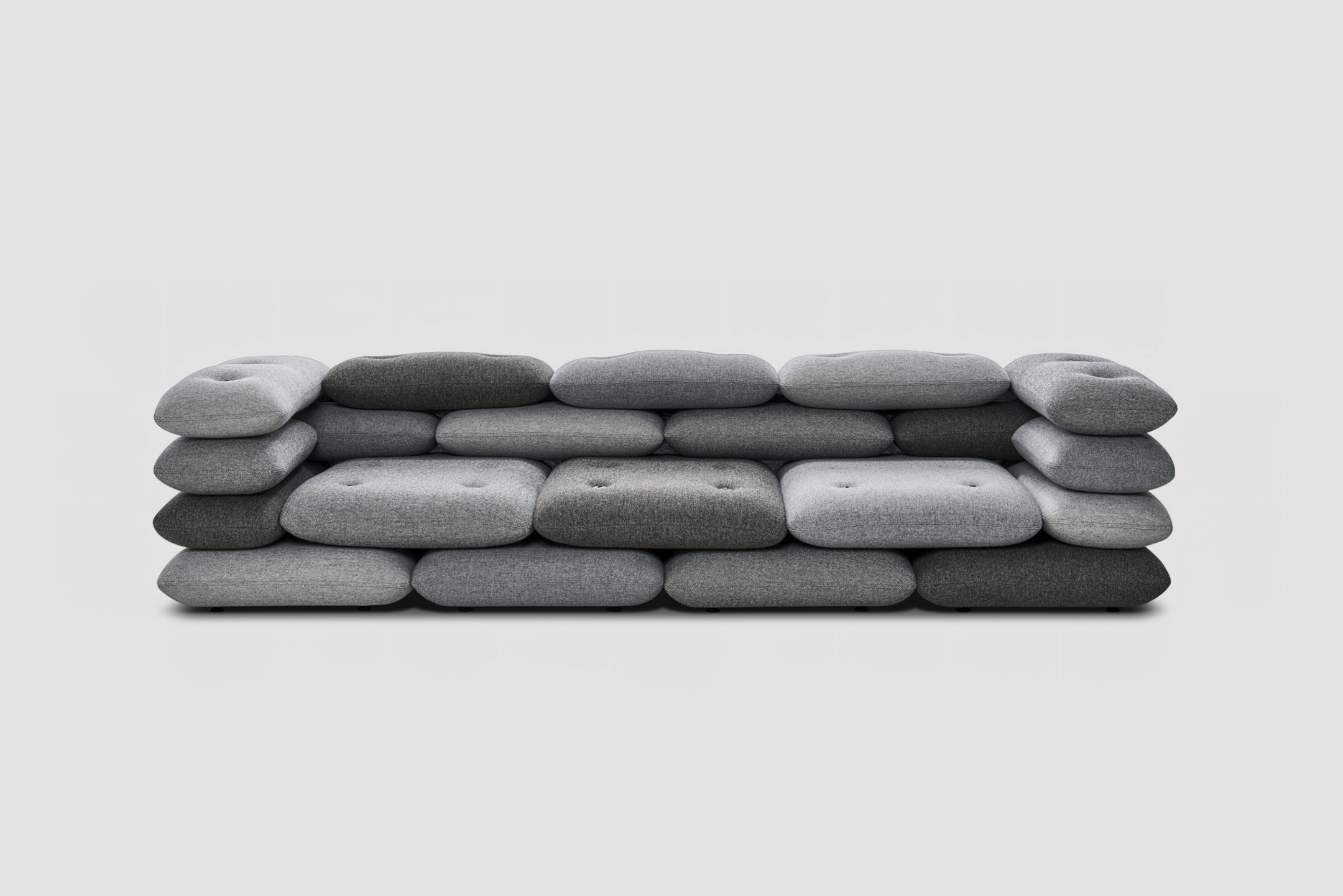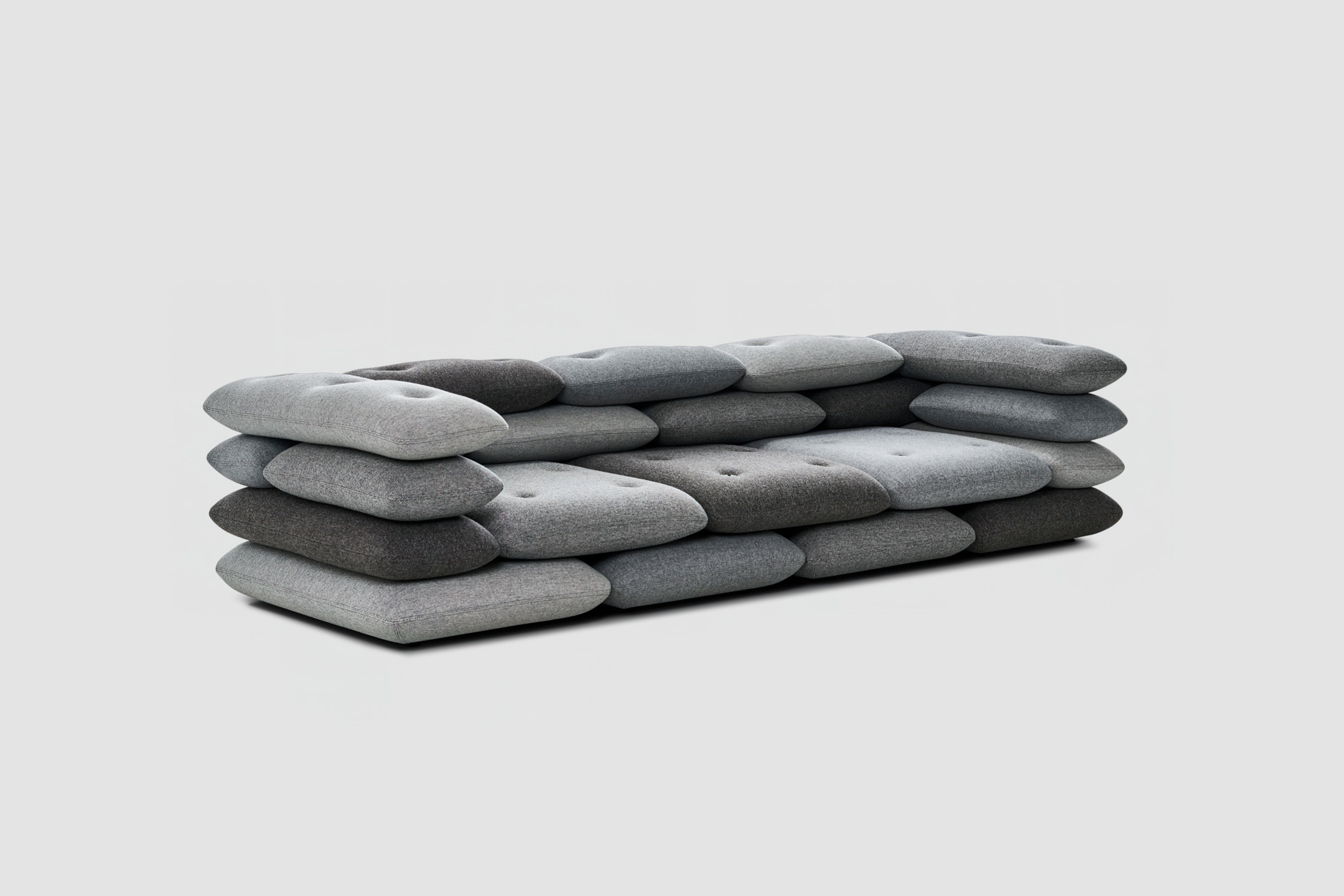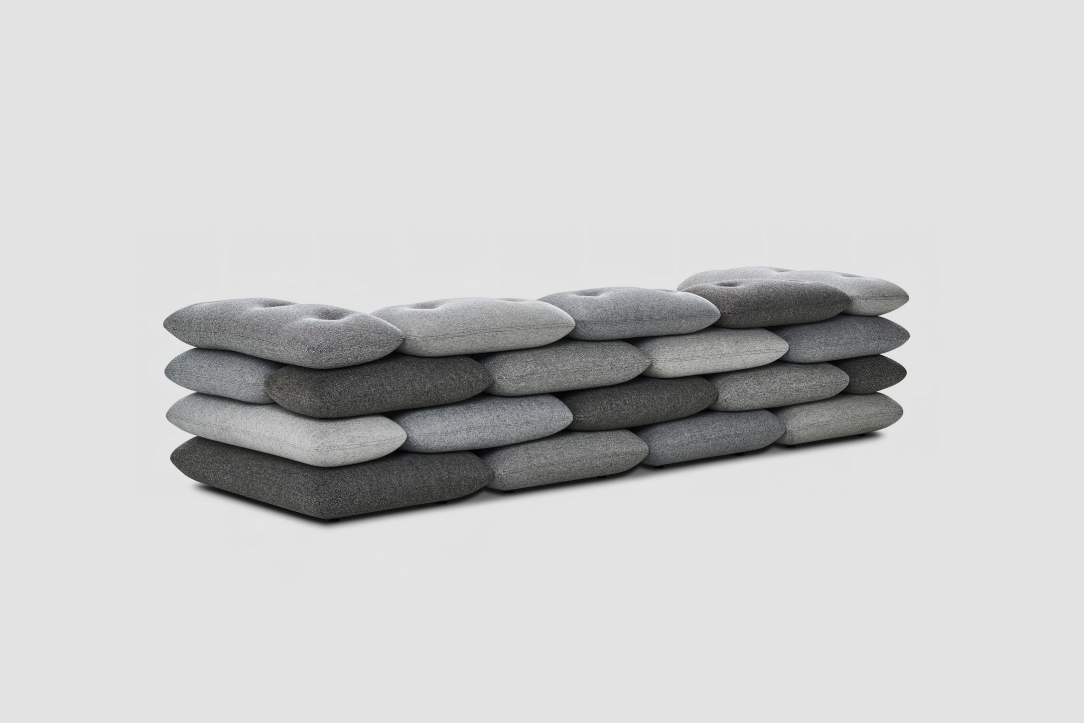Roulade is made from High Density foam cut into a fixed shape reminiscent of a rolled-up mattress. It is upholstered with top class materials such as Kvadrat fabrics.