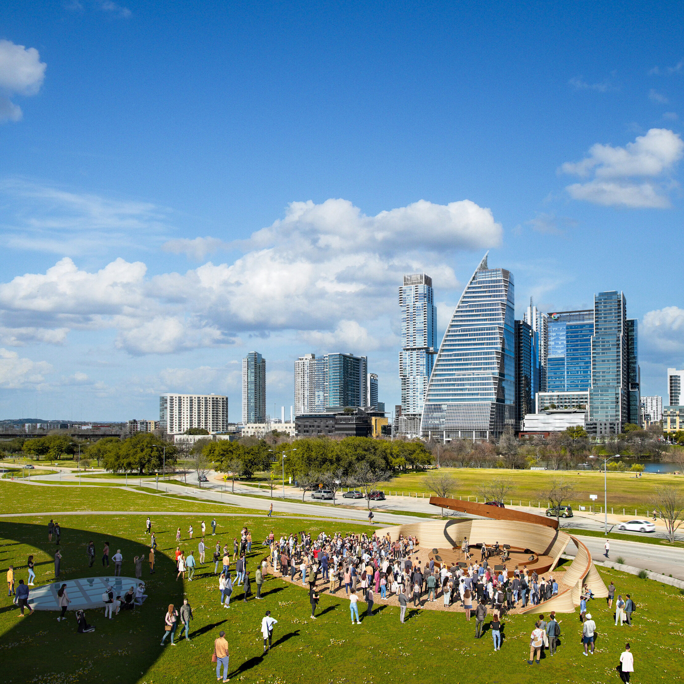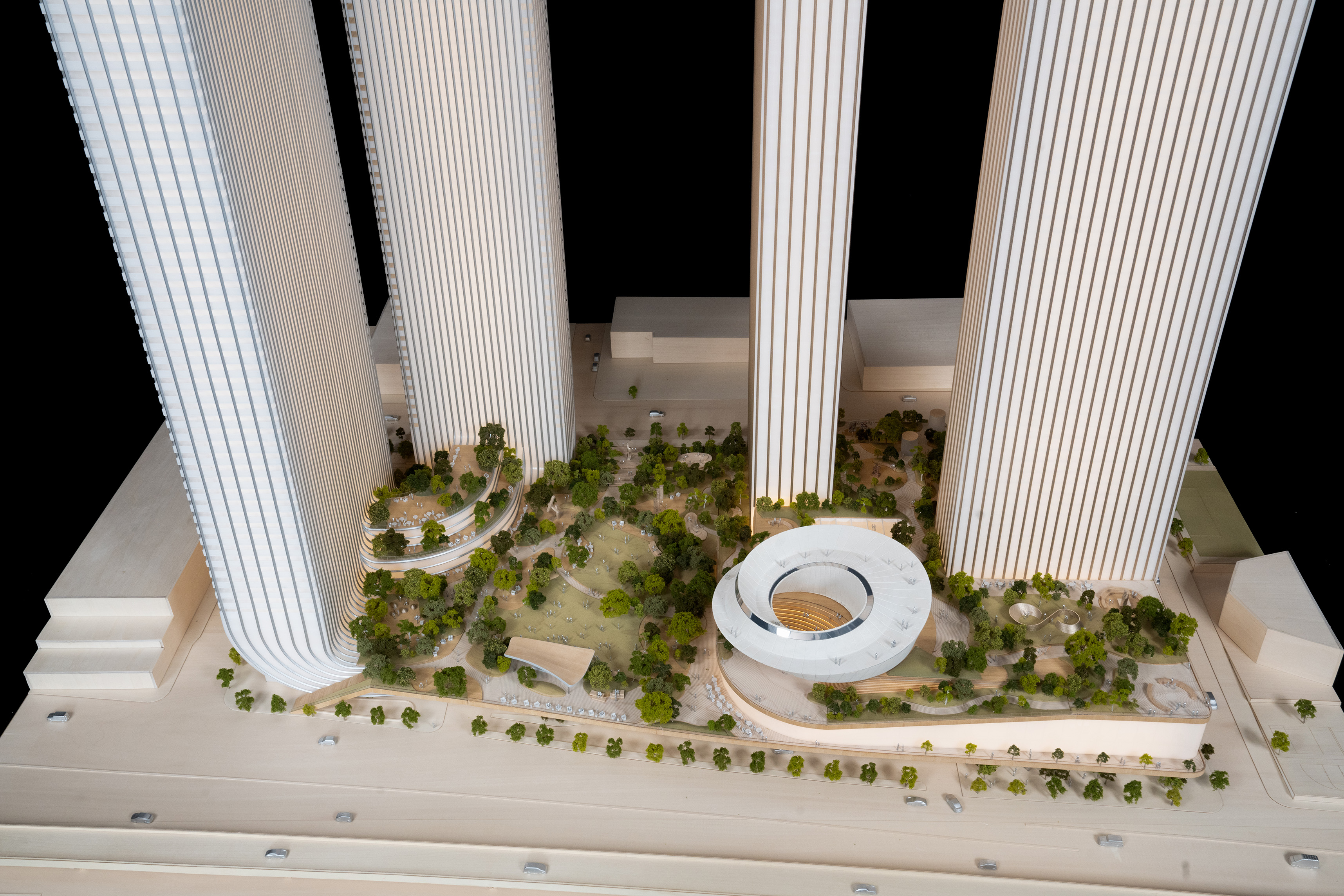 “The new Hamburg State Opera inhabits an island at the heart of HafenCity bookended by the vertical landmarks of Elbturm and Elbphilharmonie. The opera will appear like a landscape of concentric terraces – emanating like soundwaves from a central beating heart of music, expanding outward into the harbor like ripples on the surface of the sea. The result is a three-dimensional public park open and accessible from all sides, with expansive views in all directions – to the old city and the new, to Lohse Park and the industrial port. We are honored to have been chosen to imagine this key puzzle piece of the transformation of Hamburg’s HafenCity, and we are deeply grateful to Herr und Frau Kühne to be entrusted to turn their generosity into the city’s new epicenter for the performing arts.”